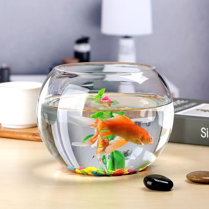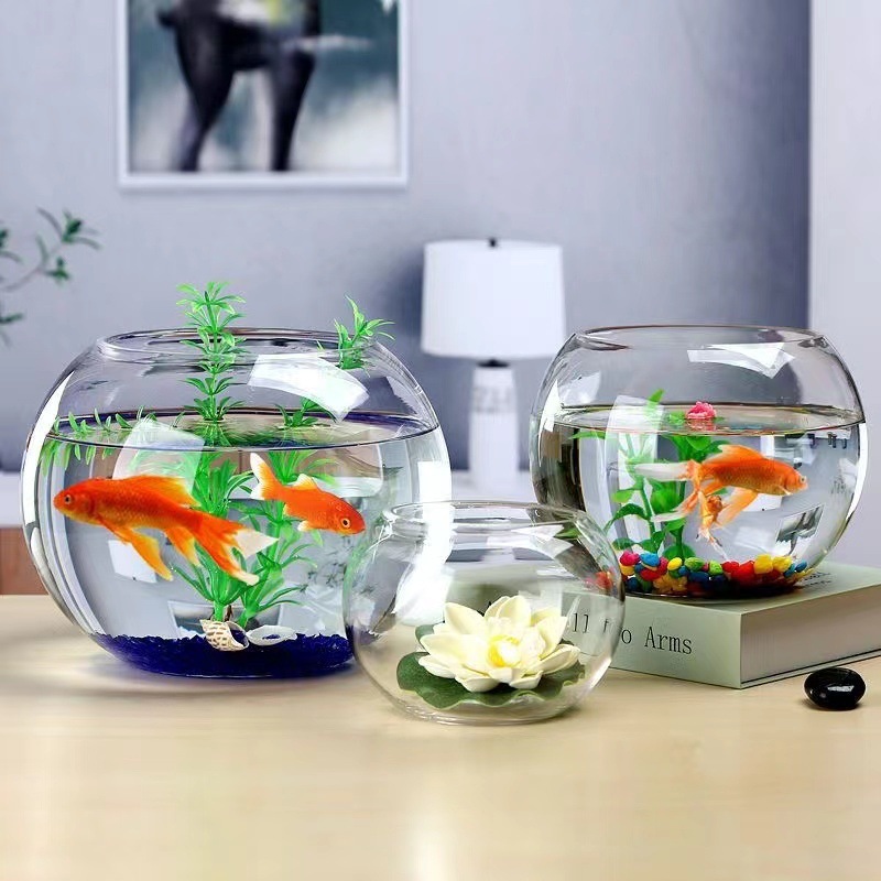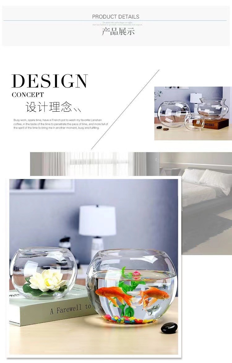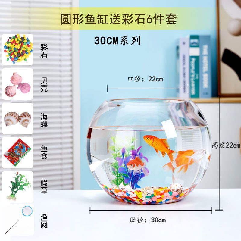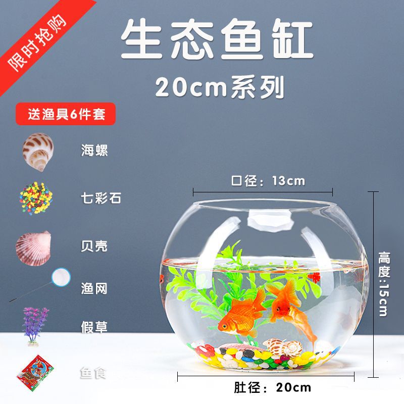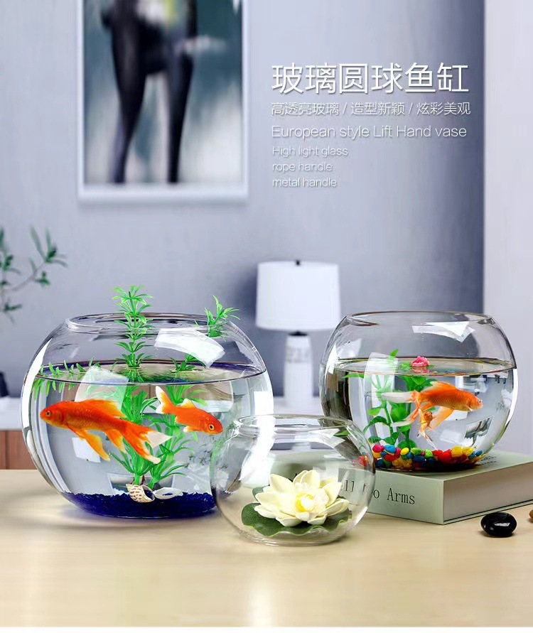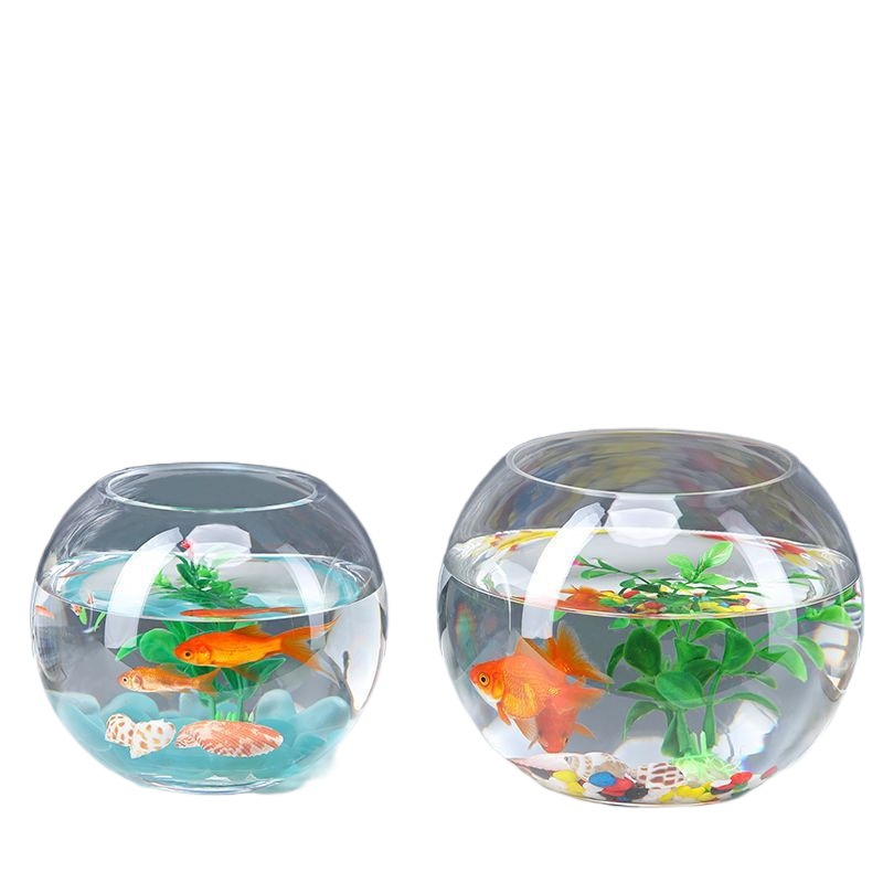超厚圆形鱼缸玻璃水培鱼缸小型家用办公室桌面小型金鱼迷你小鱼缸