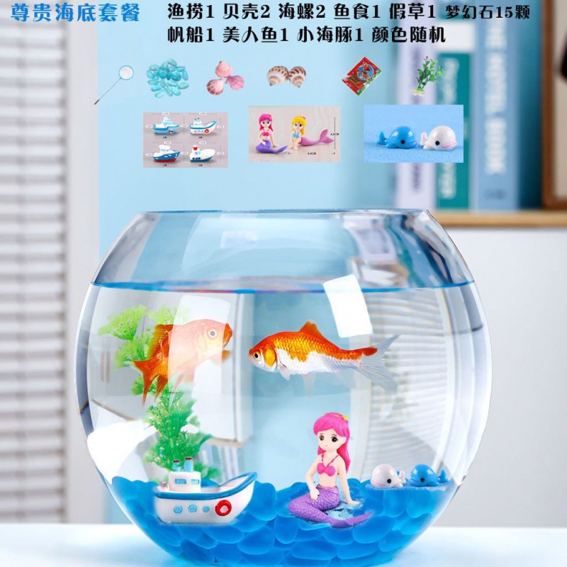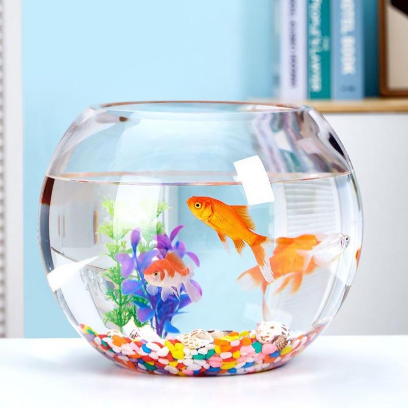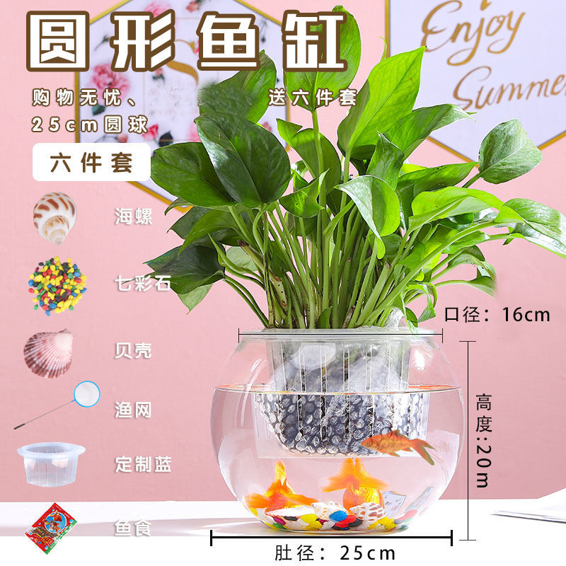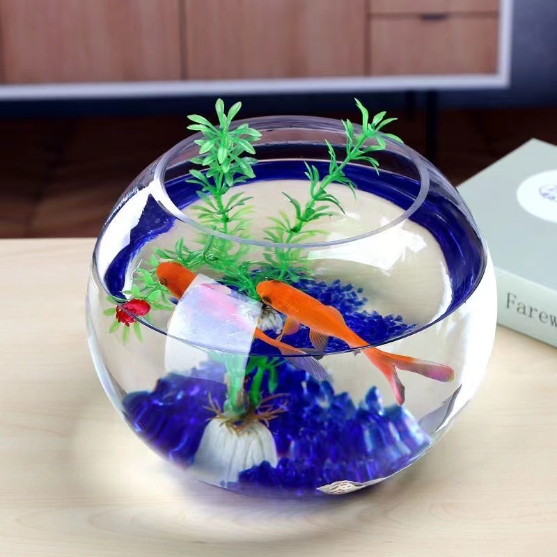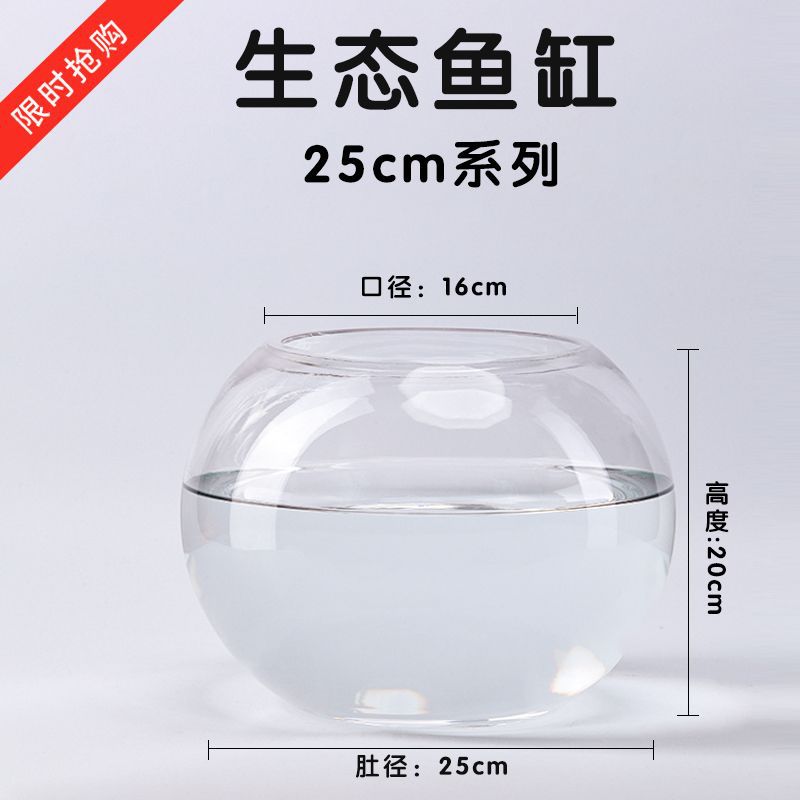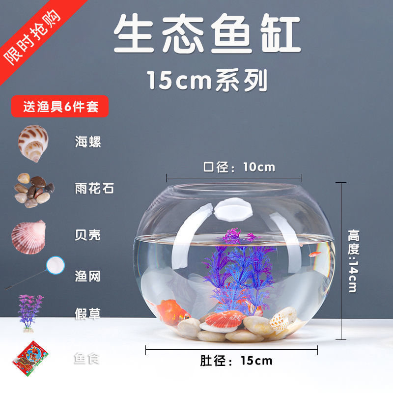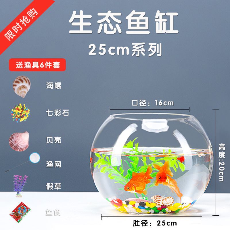 超厚圆形鱼缸玻璃水培鱼缸小型家用办公室桌面小型金鱼迷你小鱼缸