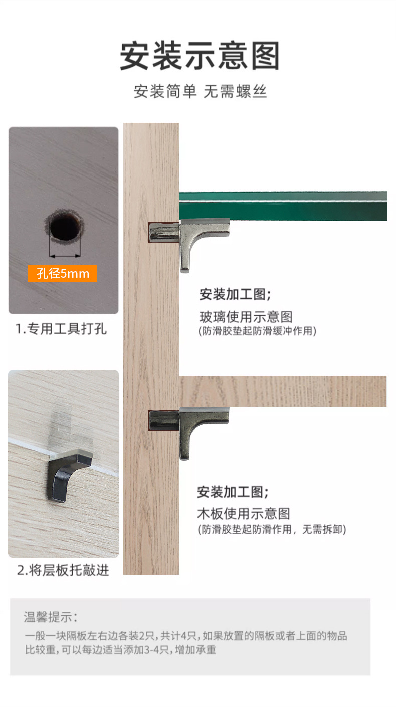 玻璃层板托橱柜子配件大全衣柜分层隔板支架承重鞋柜活动托板支架