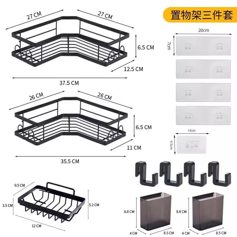 跨境工厂免打孔洗手间收纳浴室厕所墙上三角卫生间高级的置物架