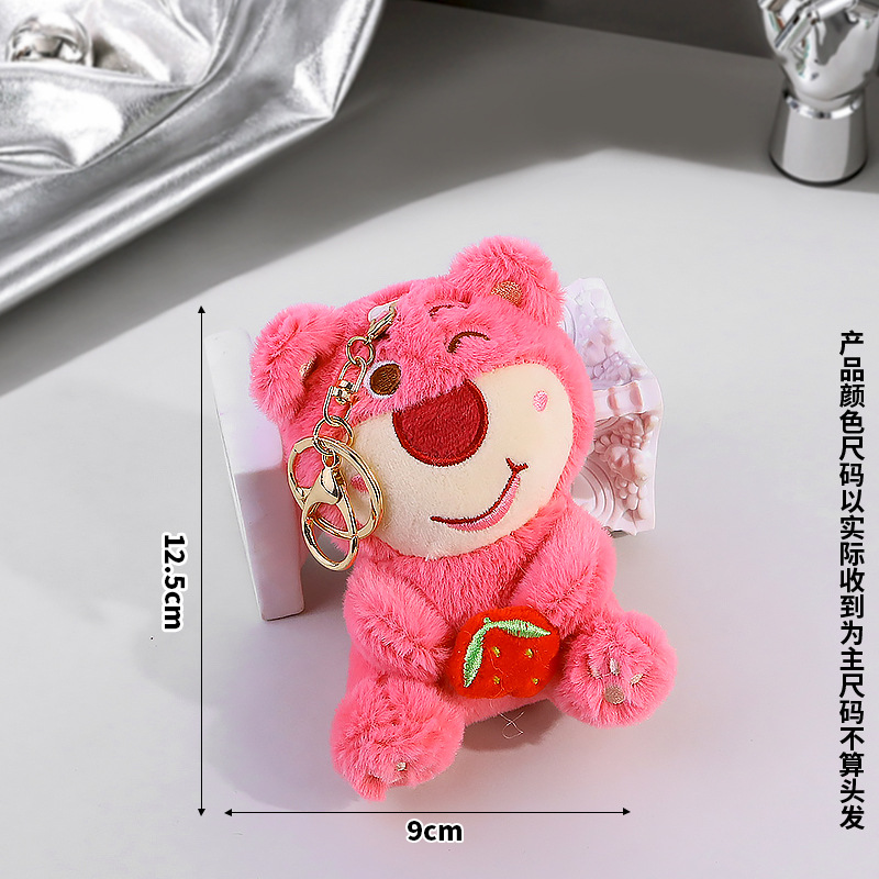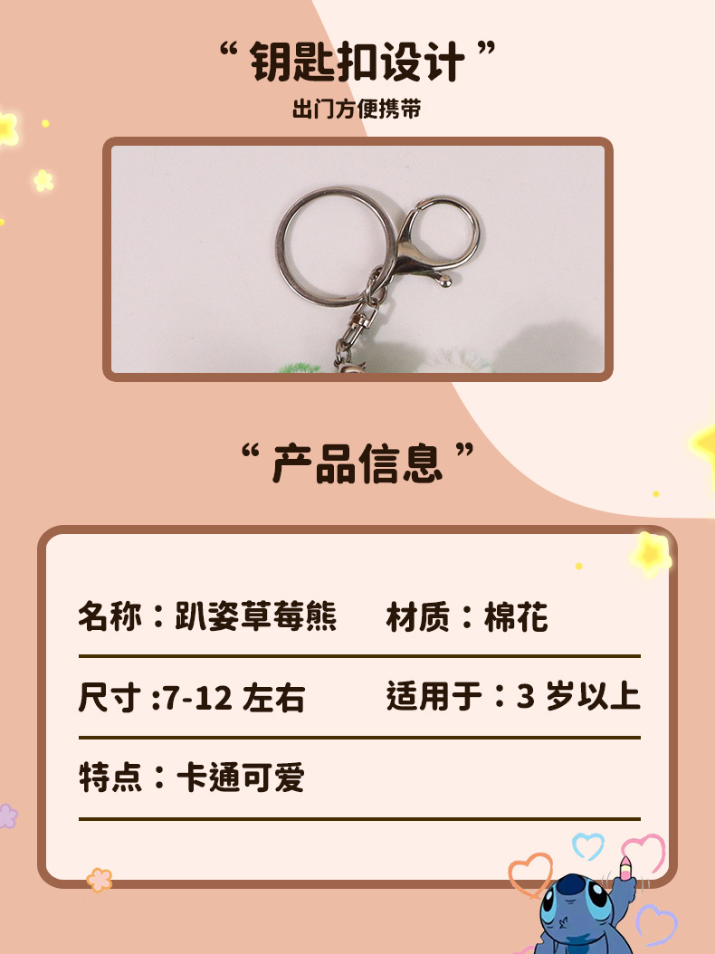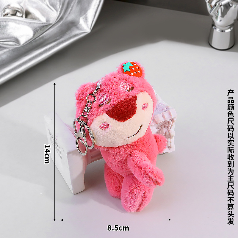 爆款网红趴姿草莓熊毛绒钥匙扣包包挂饰挂件精品抓娃娃机玩偶公仔