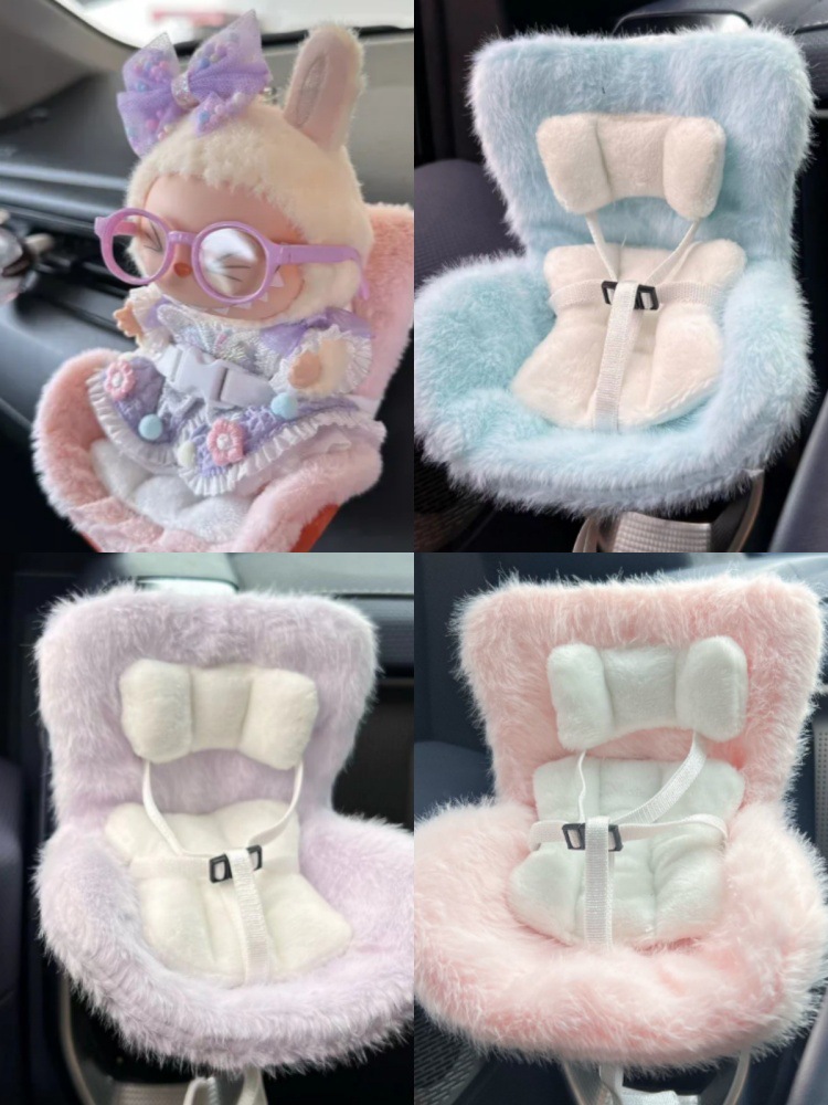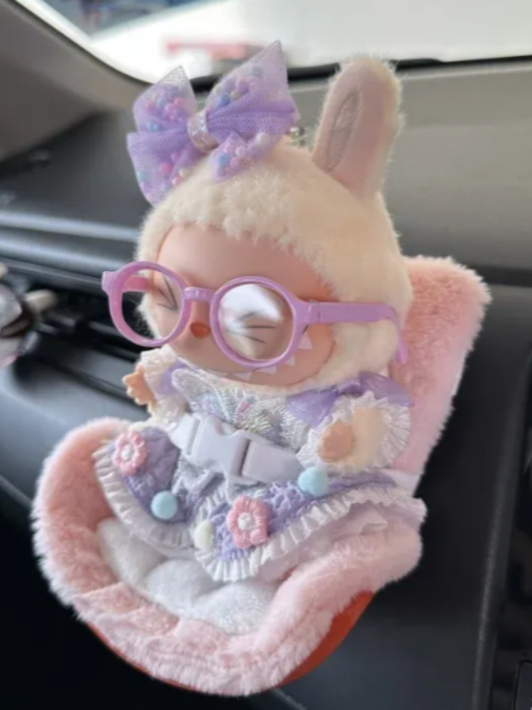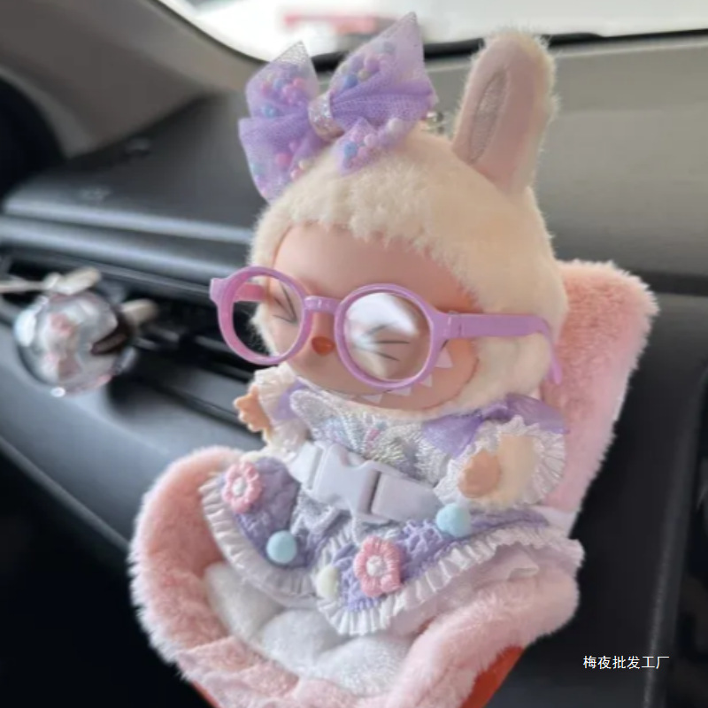 labubu车载座椅二代坐坐派对搪胶拉布布汽车出风口座椅v2娃衣