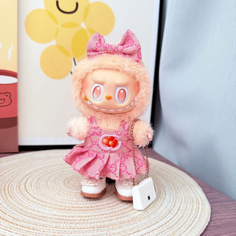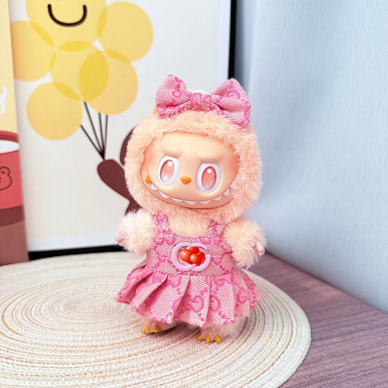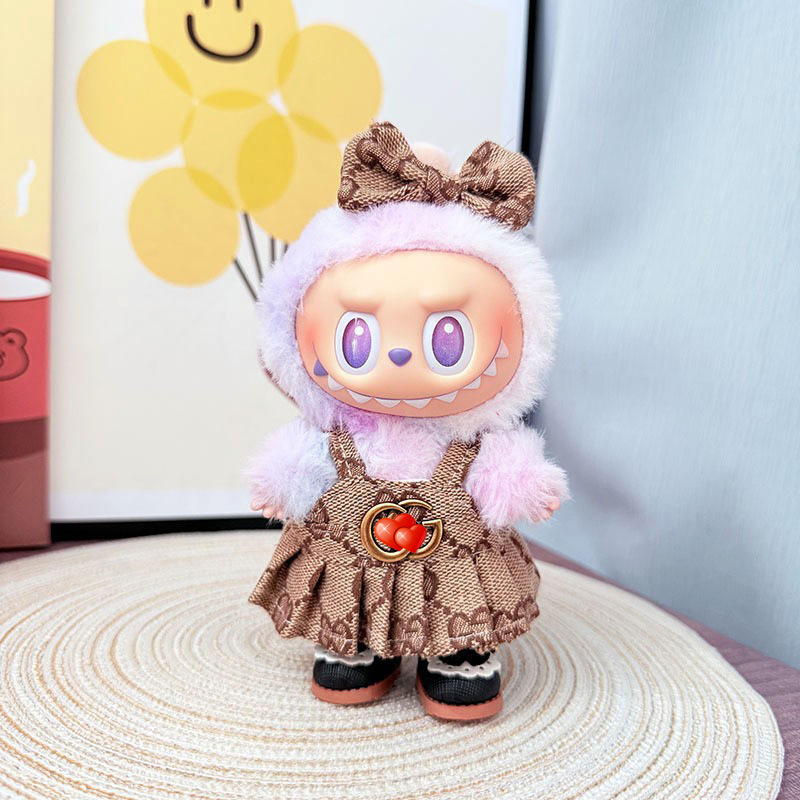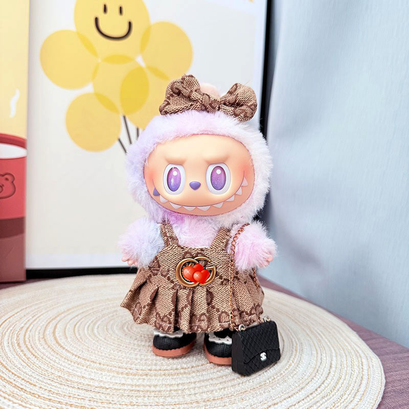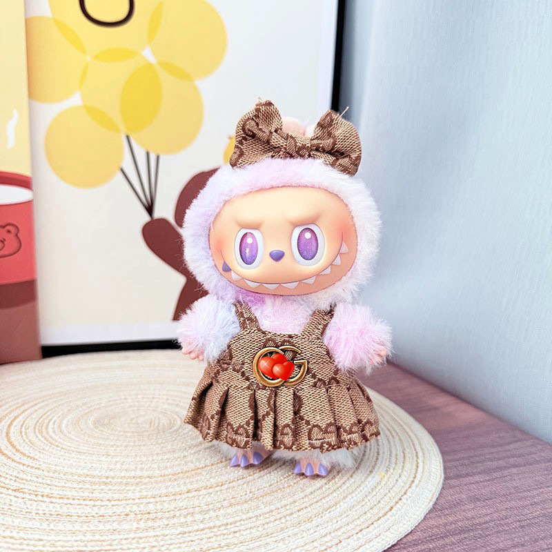 仅娃衣】一二三代labubu拉布布搪胶盲盒挂件娃衣服棕色粉色GG套装