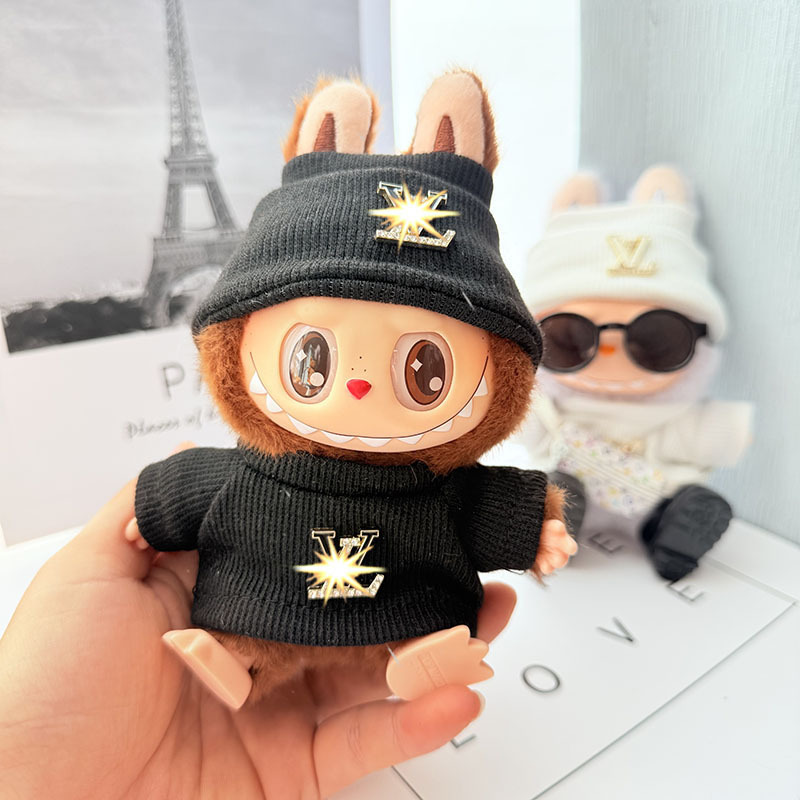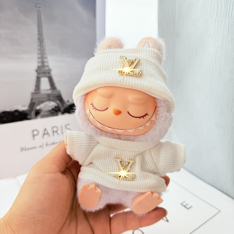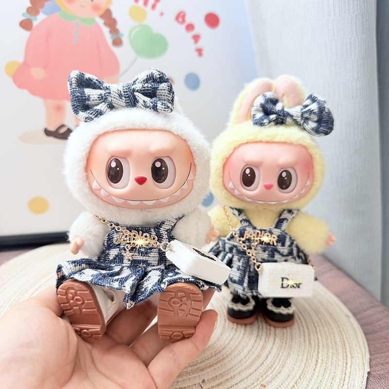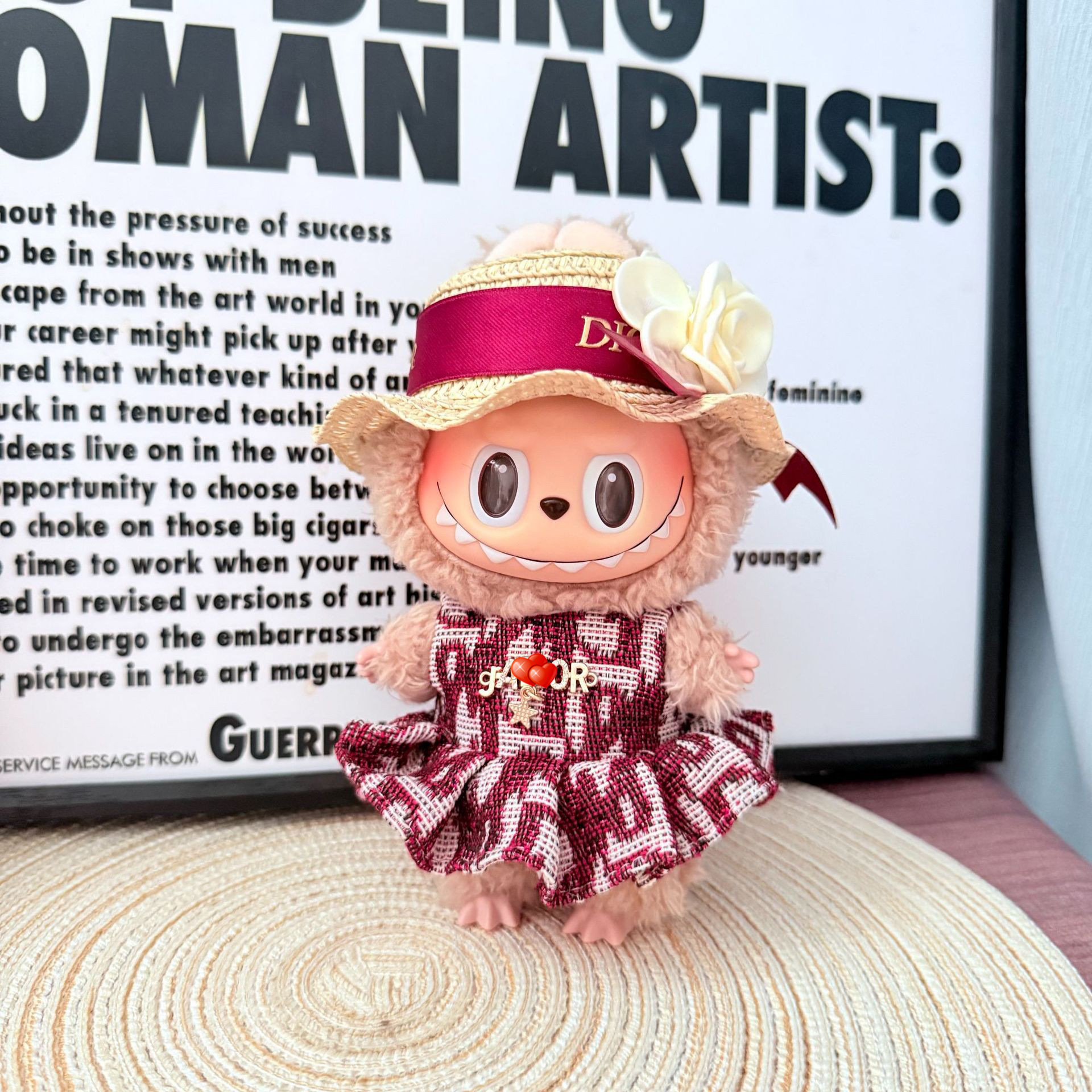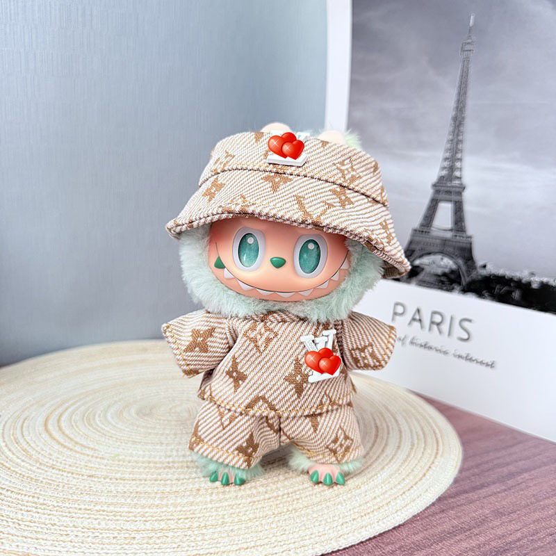 仅娃衣】一二三代labubu拉布布搪胶盲盒挂件娃衣服棕色粉色GG套装