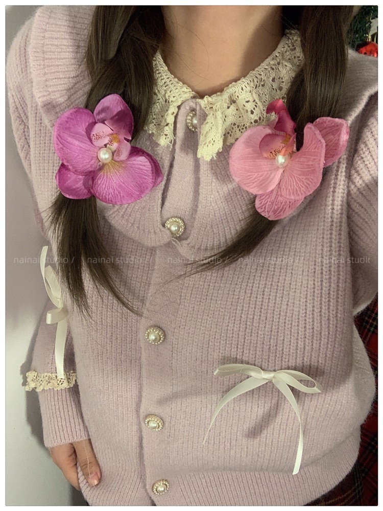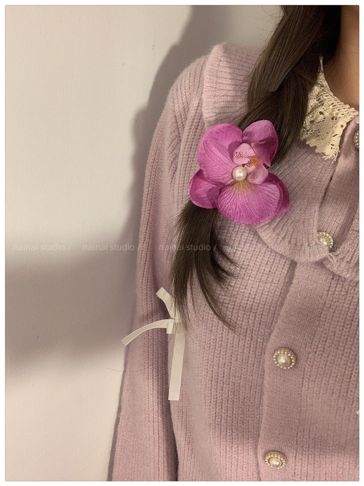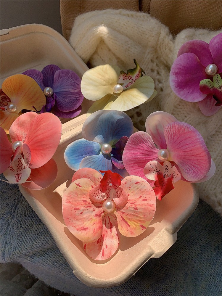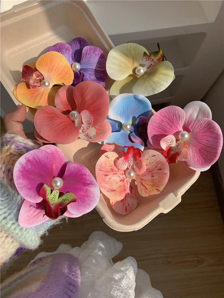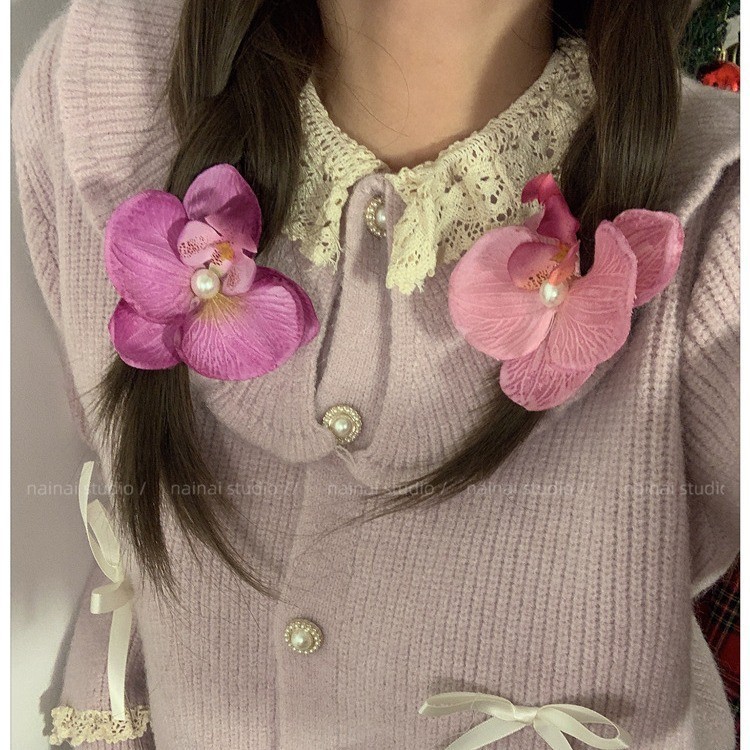 今世戴花 高级氛围感蝴蝶兰边夹抓夹拍照花朵造型发夹新款发饰