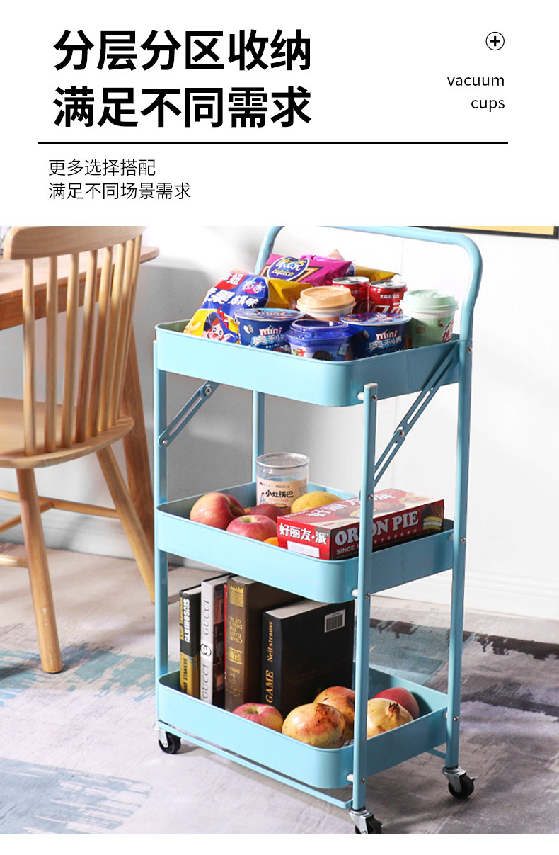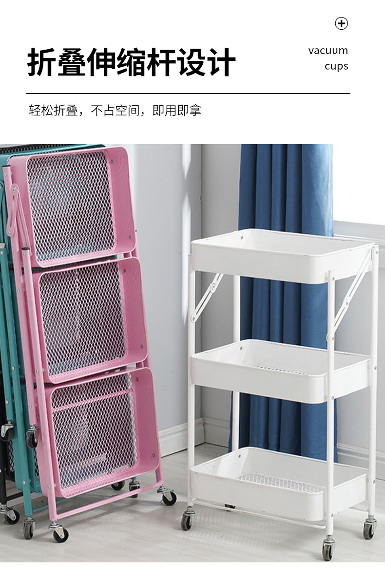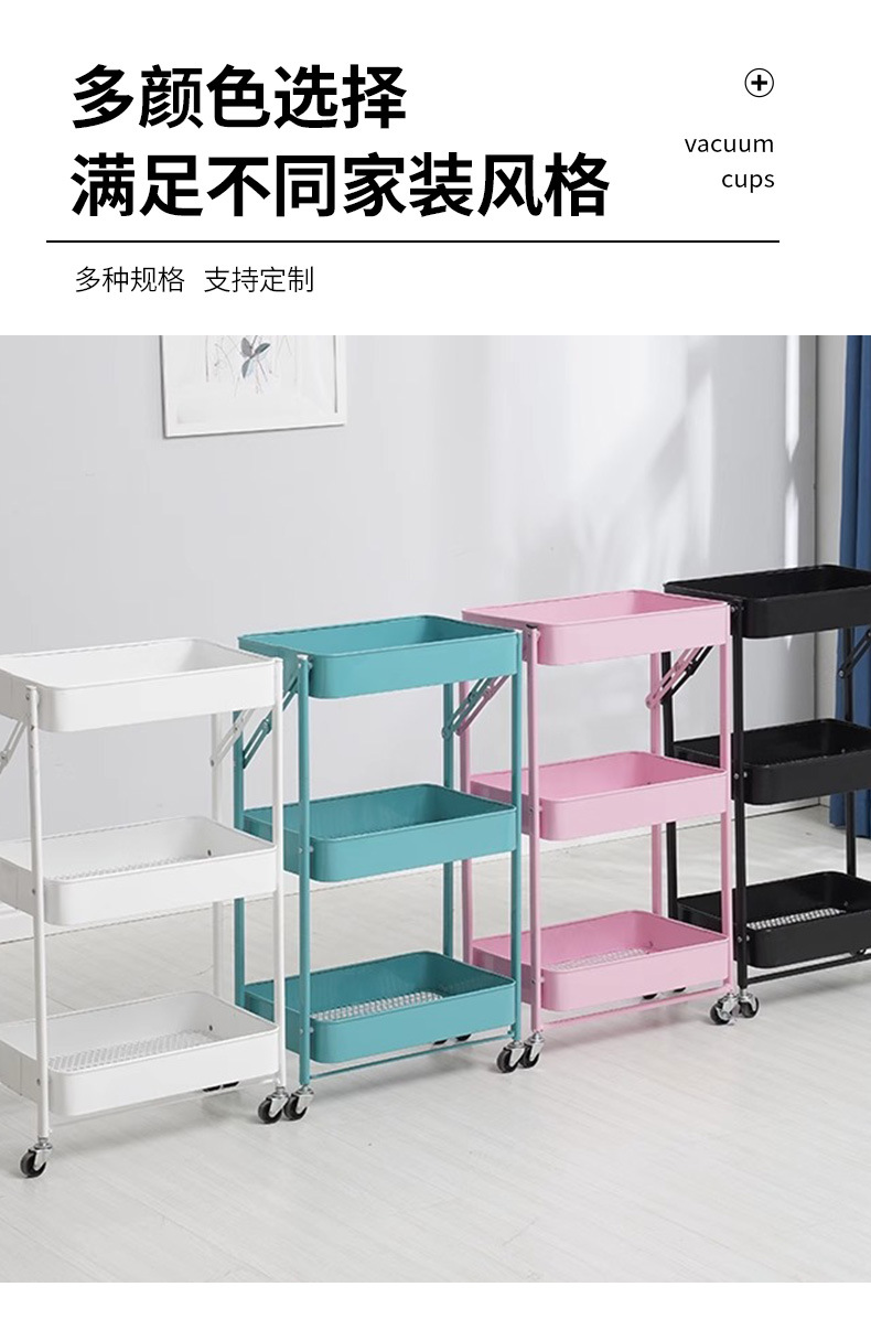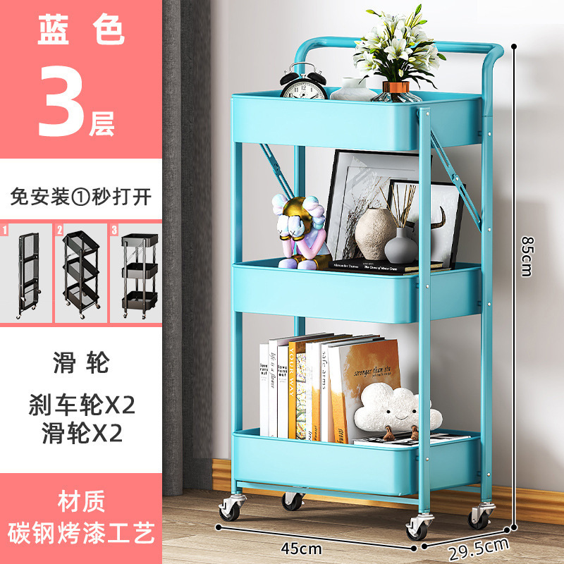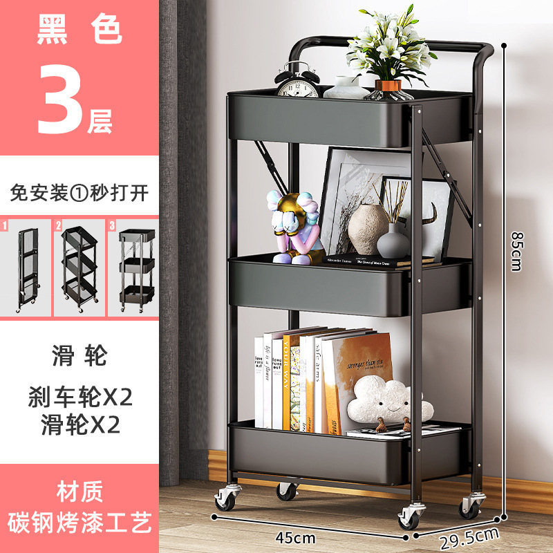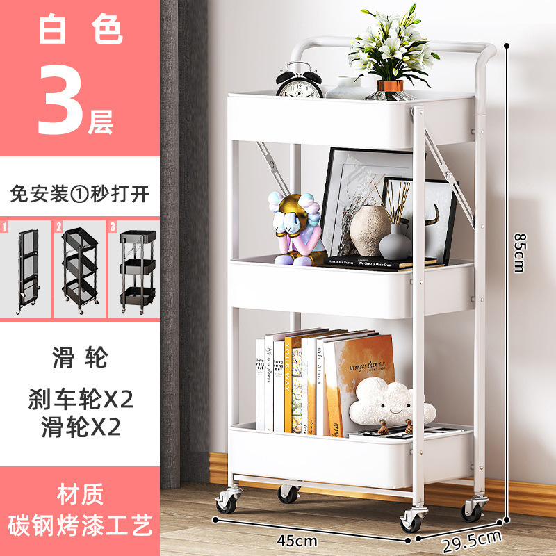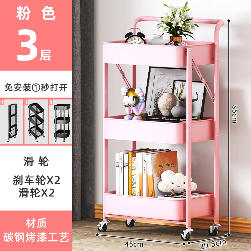 厨房多层落地收纳架卧室移动储物架书架子免安装折叠小推车置物架
