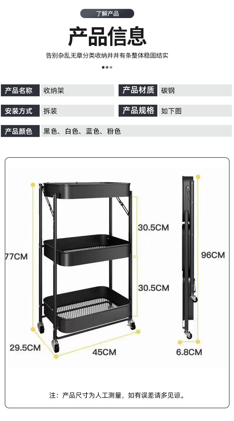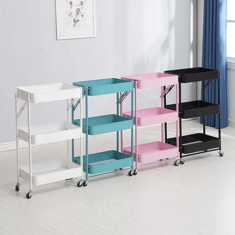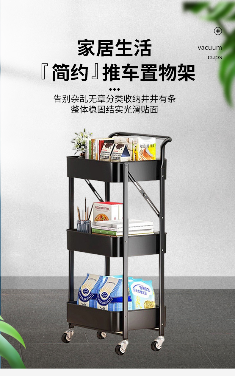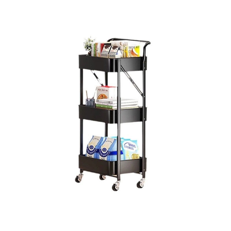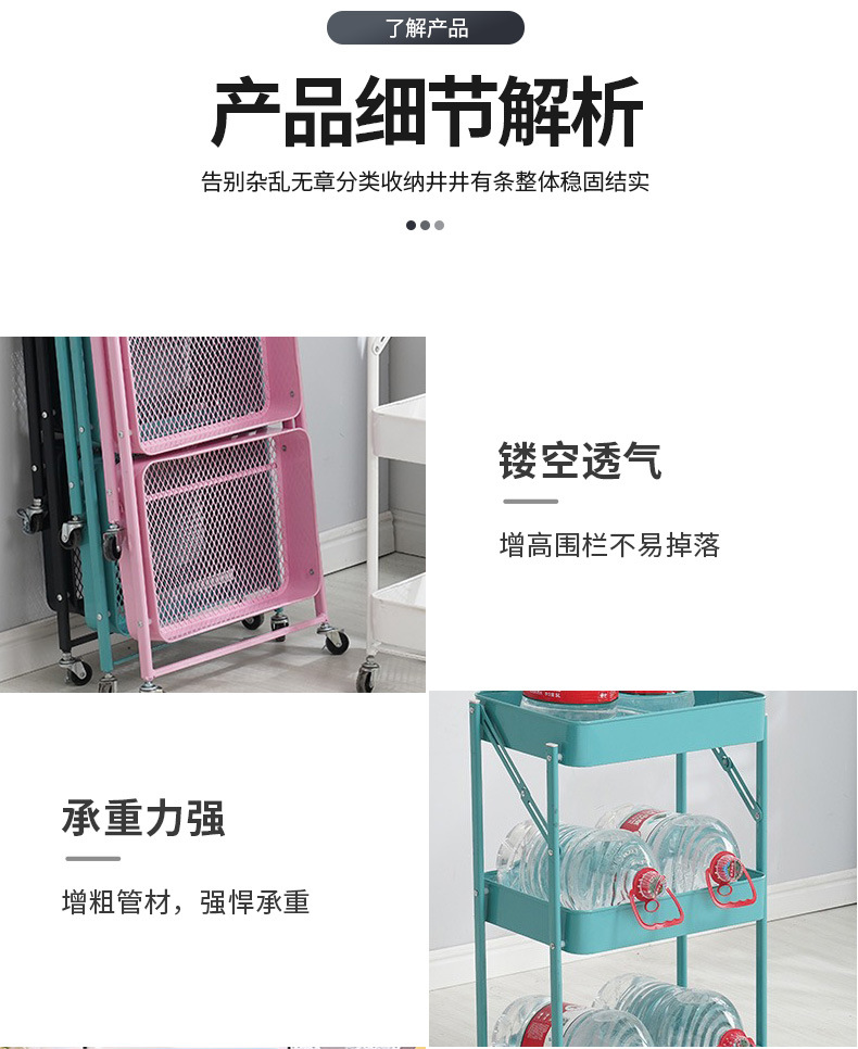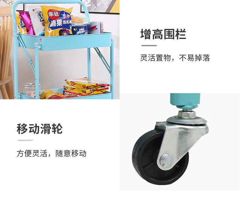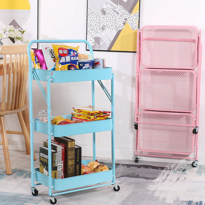 厨房多层落地收纳架卧室移动储物架书架子免安装折叠小推车置物架