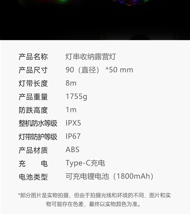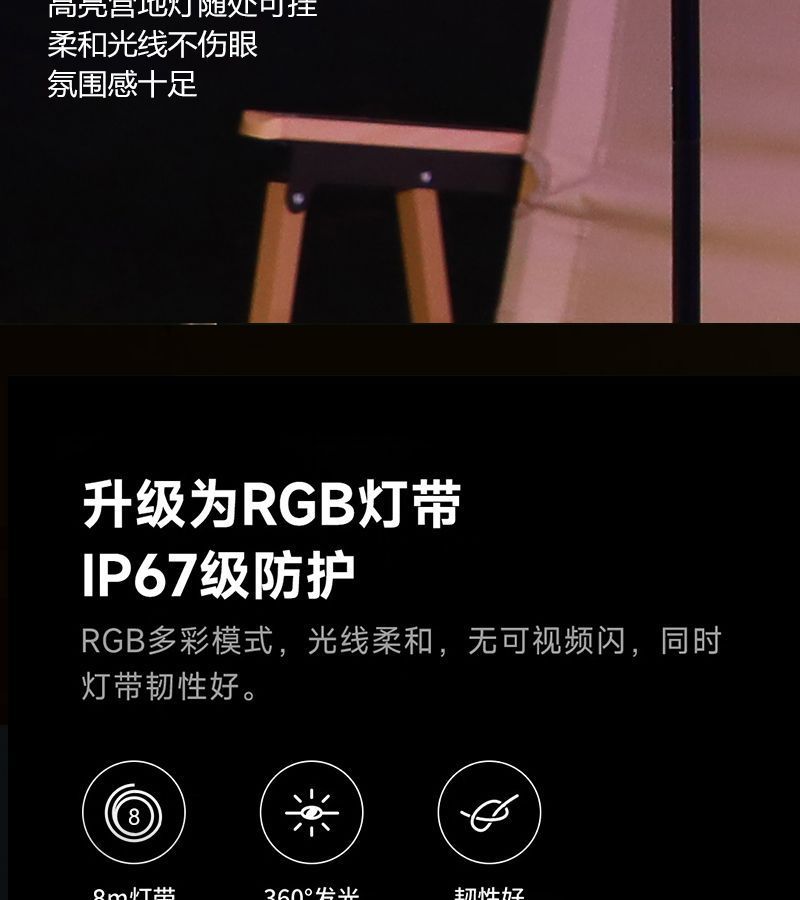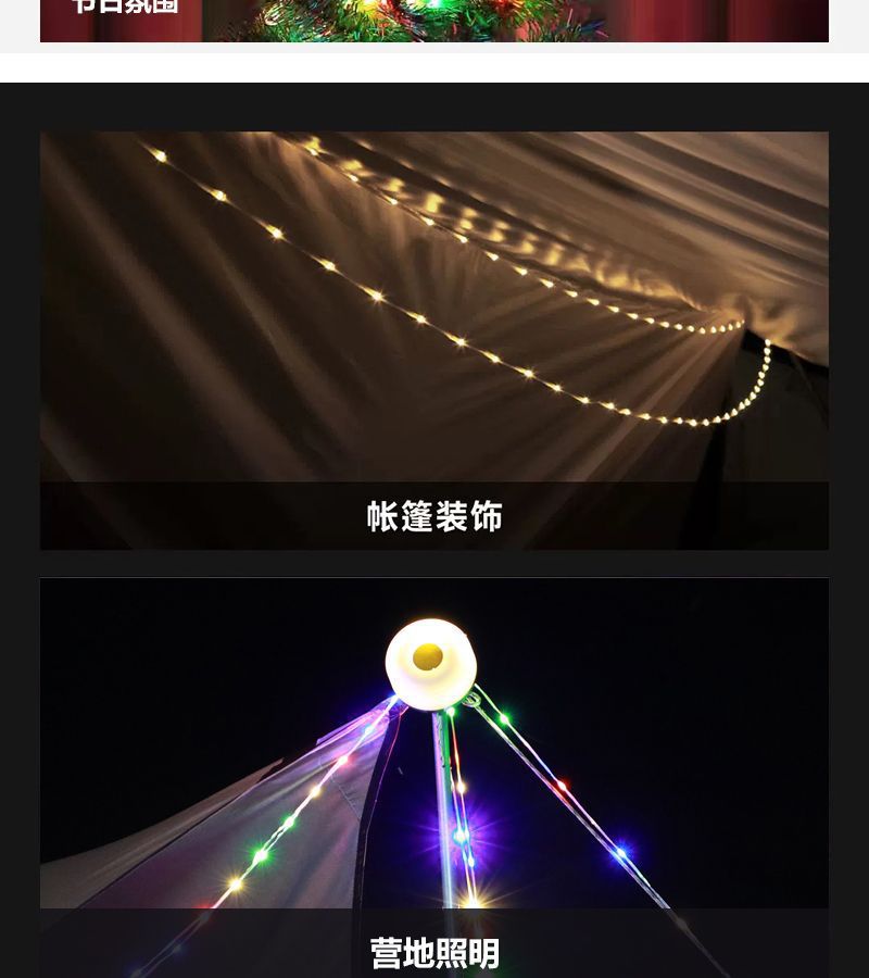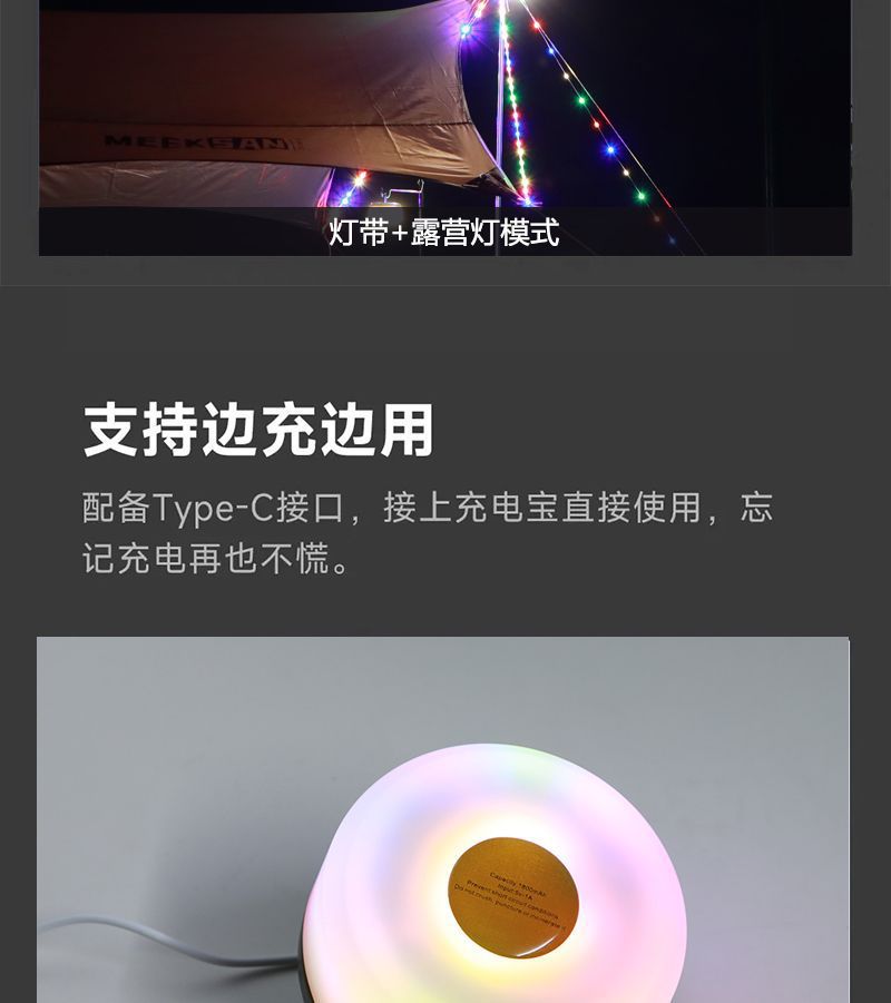 户外露营灯帐篷卷尺LED灯串挂灯照明灯具营地灯氛围灯野营炫彩灯