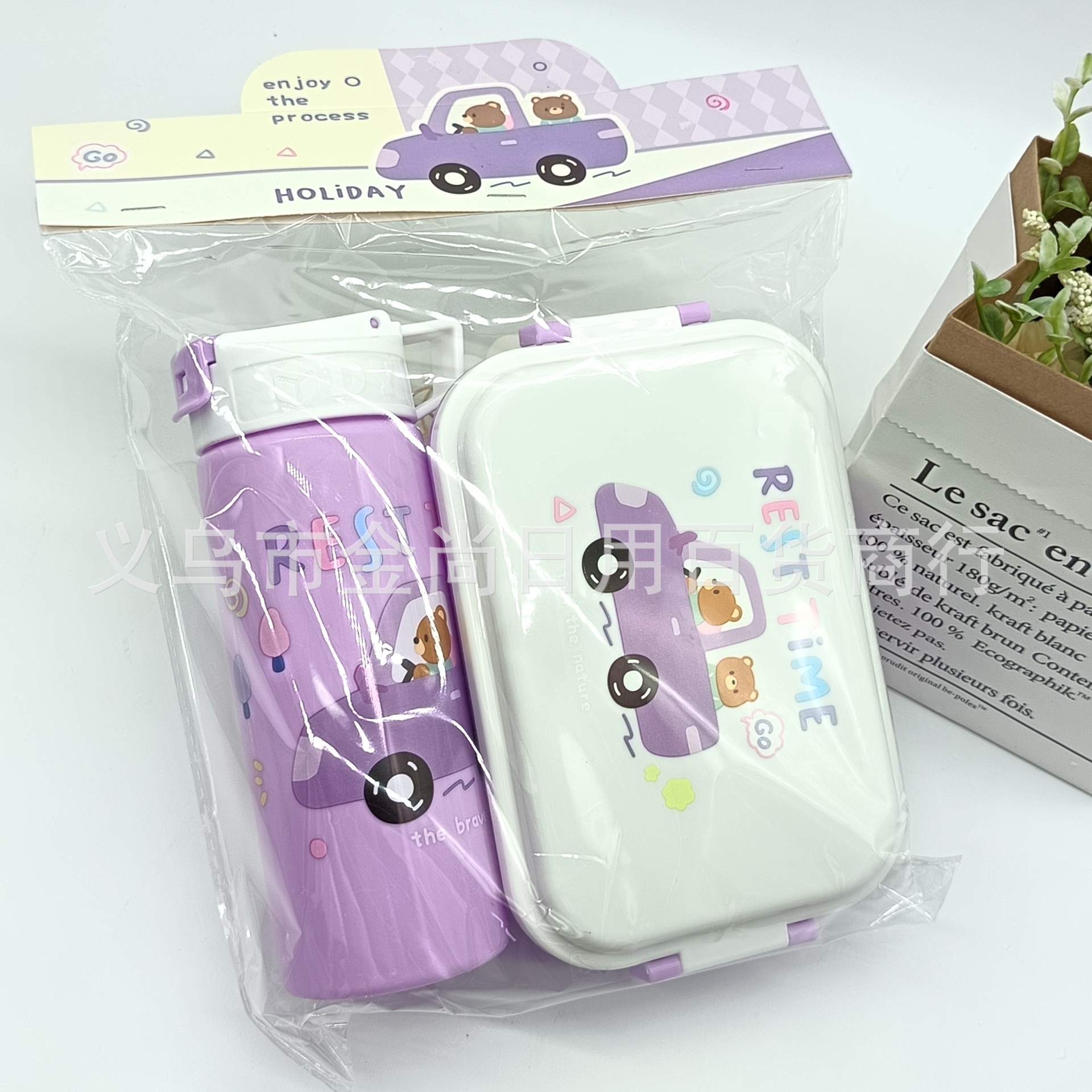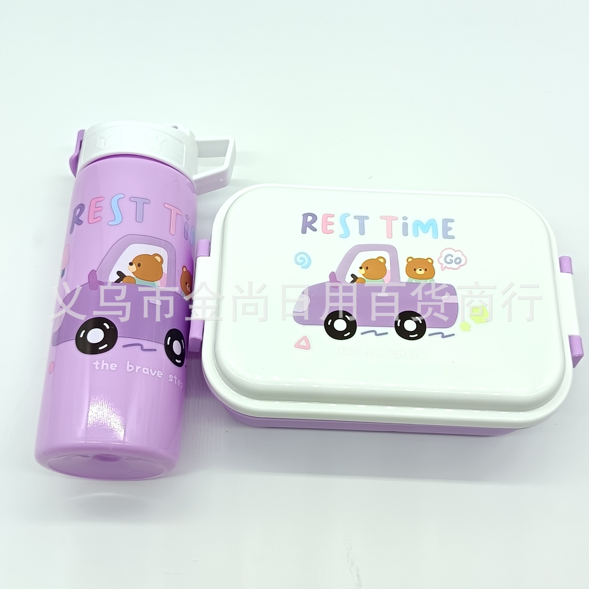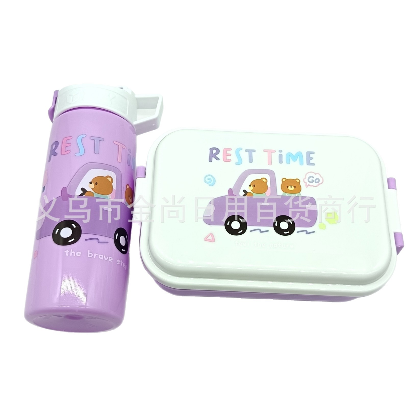 新小汽车小熊上班族饭盒跨境可爱卡通餐盒学生水果保鲜便当盒水壶