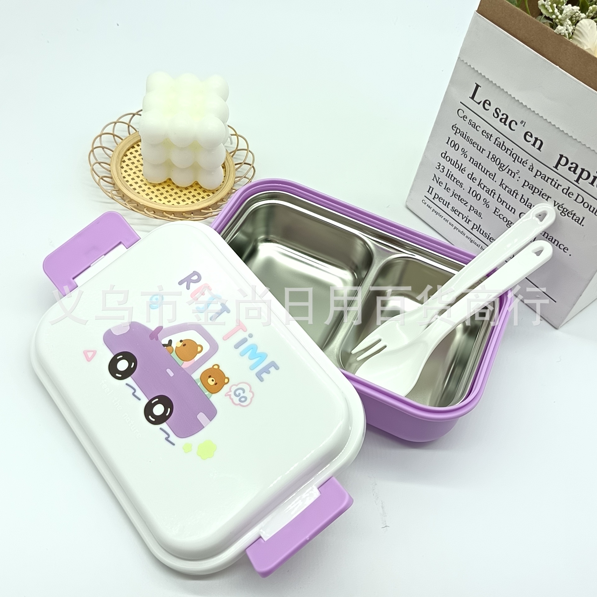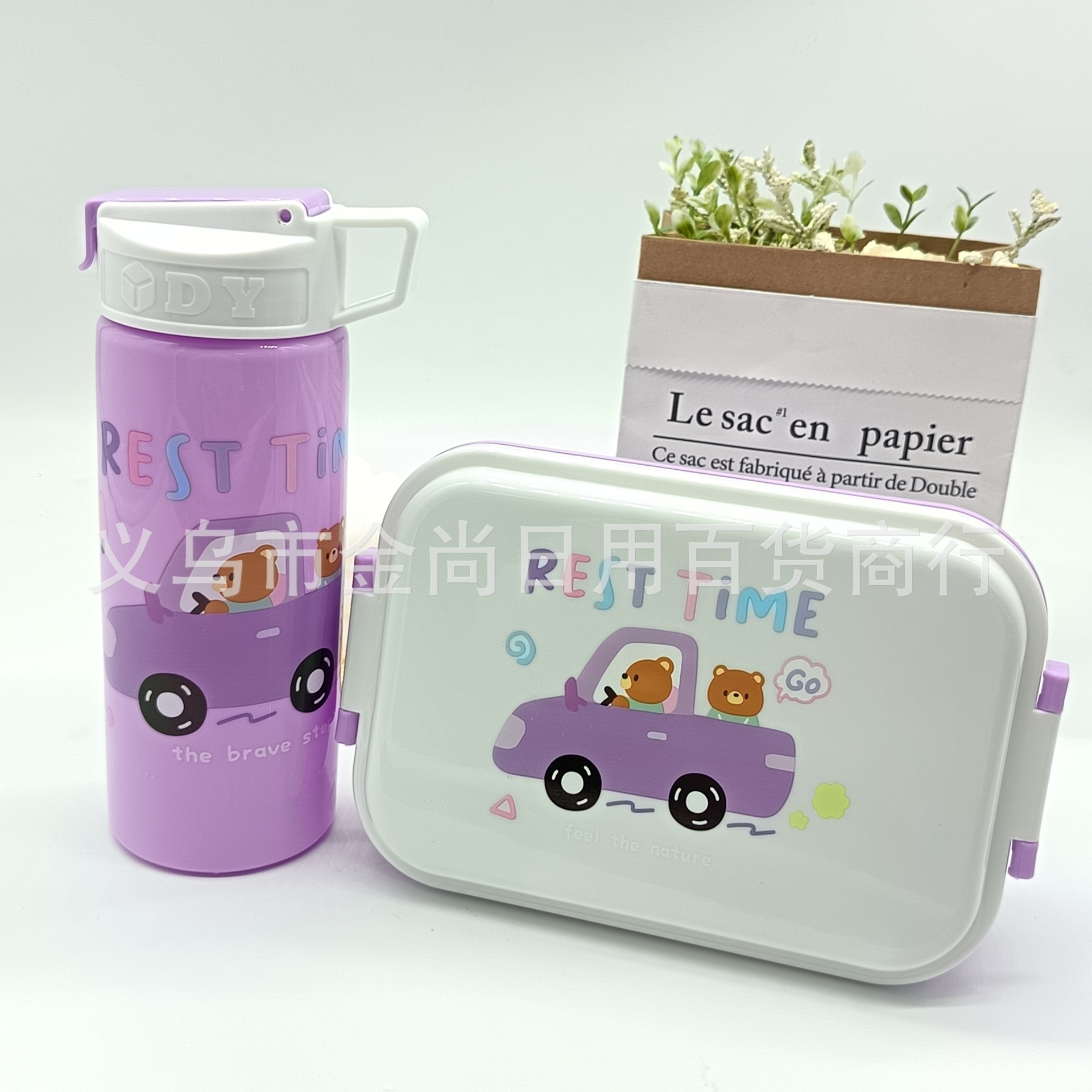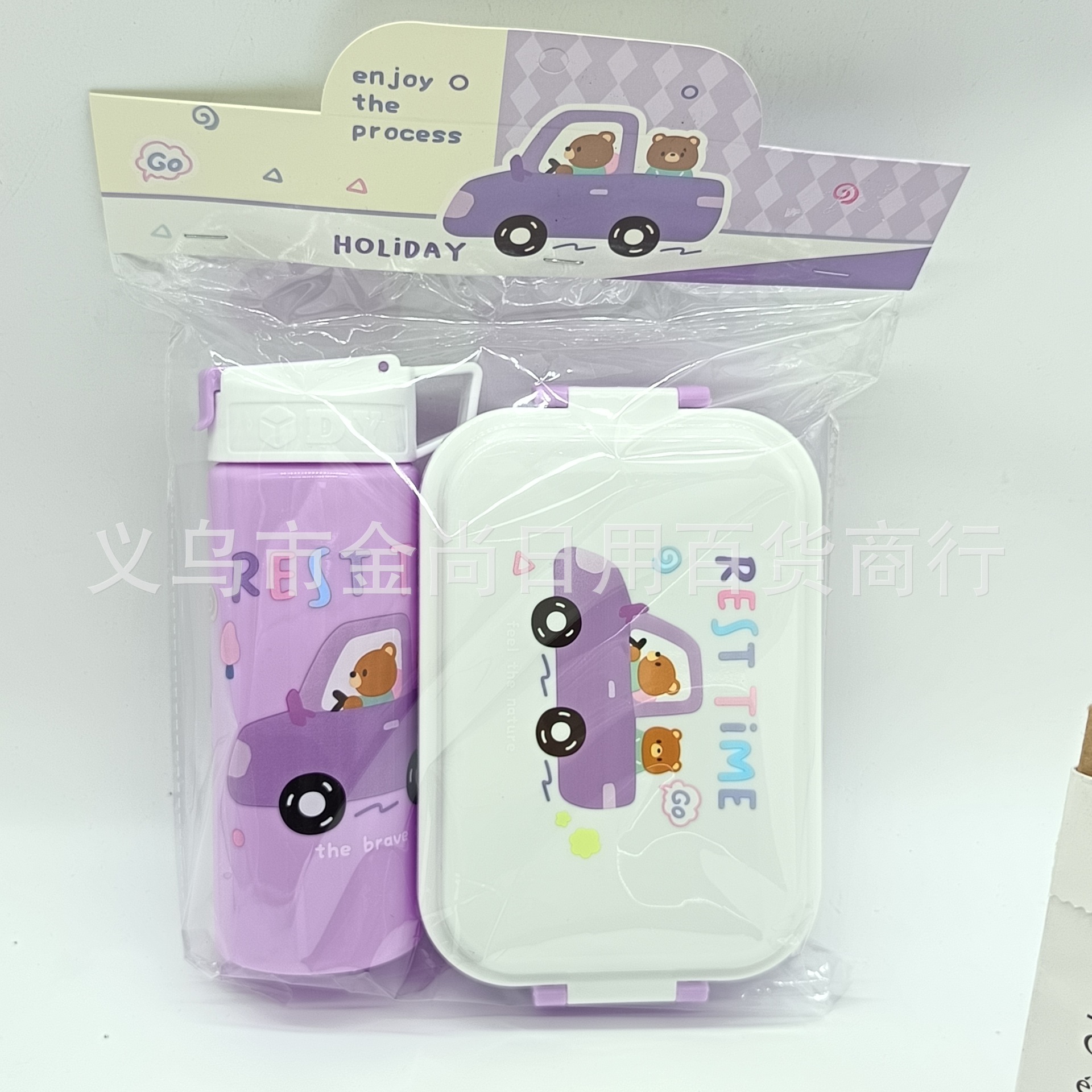 新小汽车小熊上班族饭盒跨境可爱卡通餐盒学生水果保鲜便当盒水壶