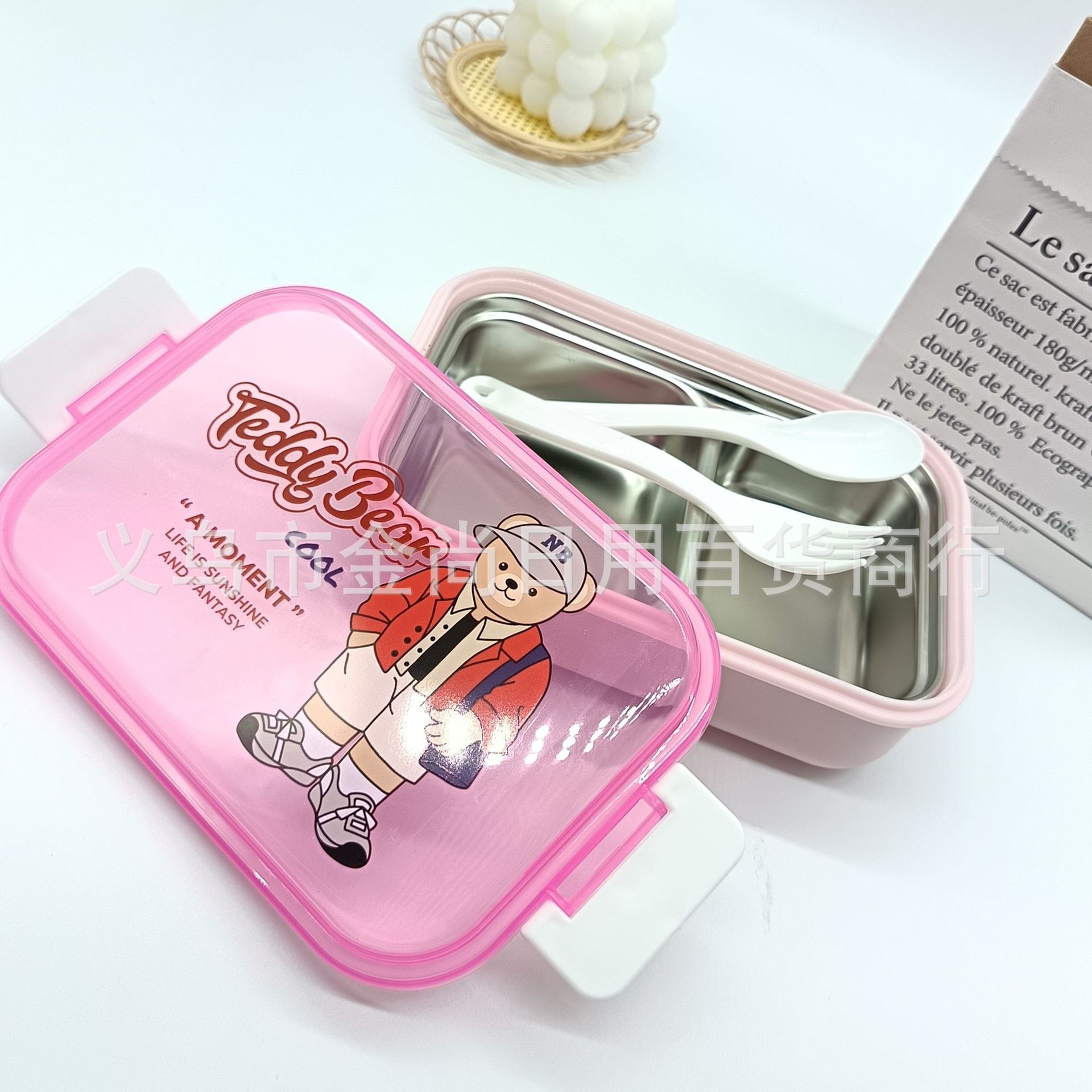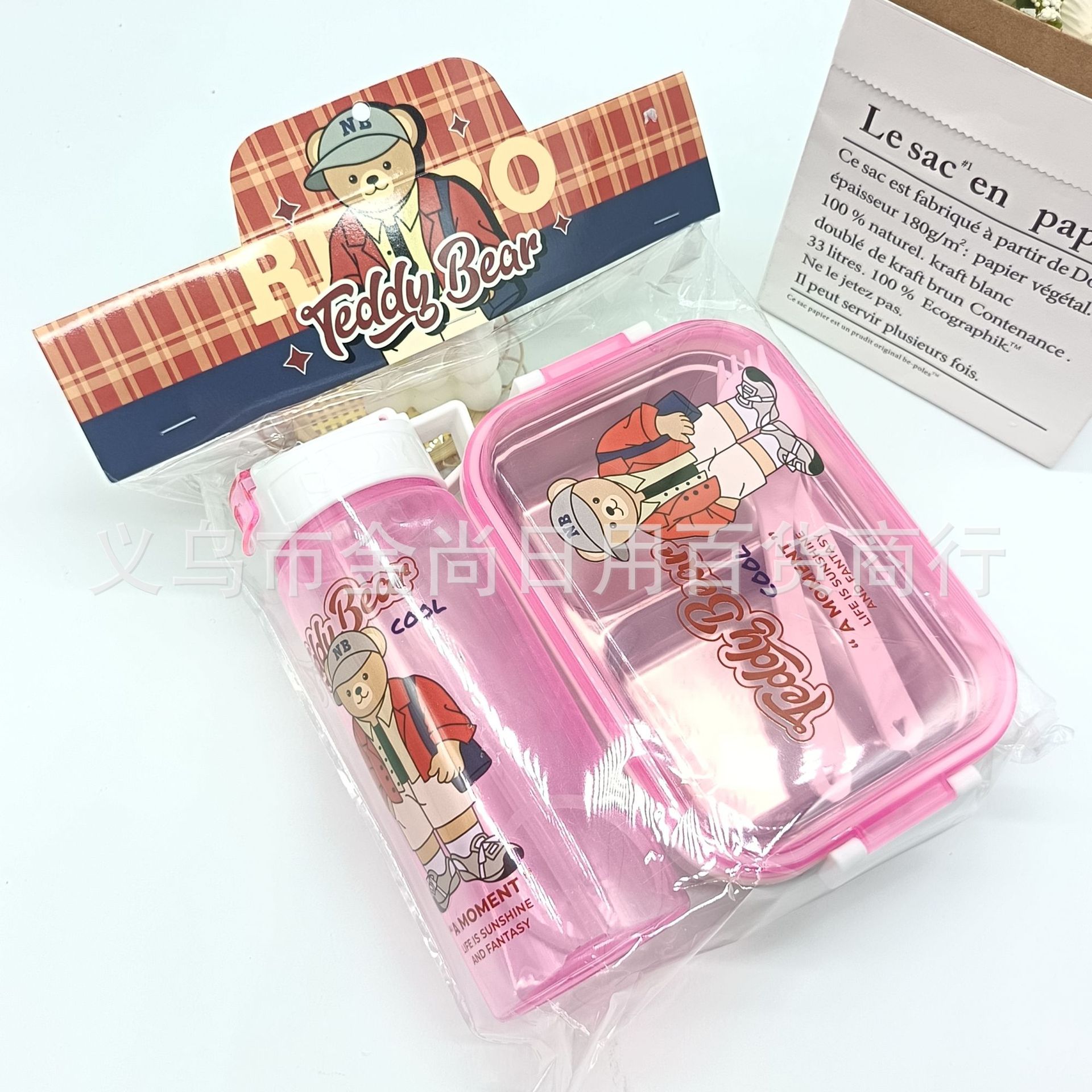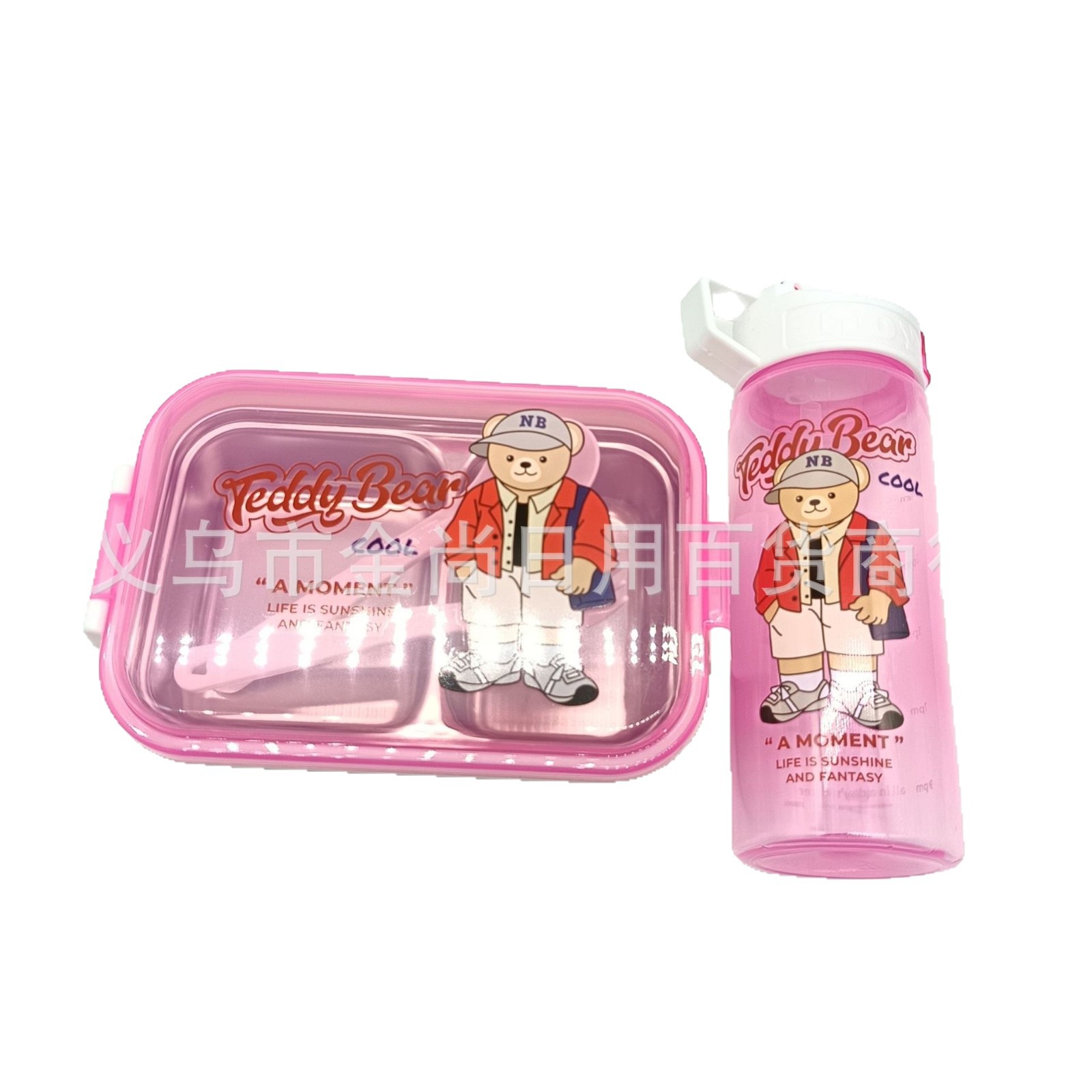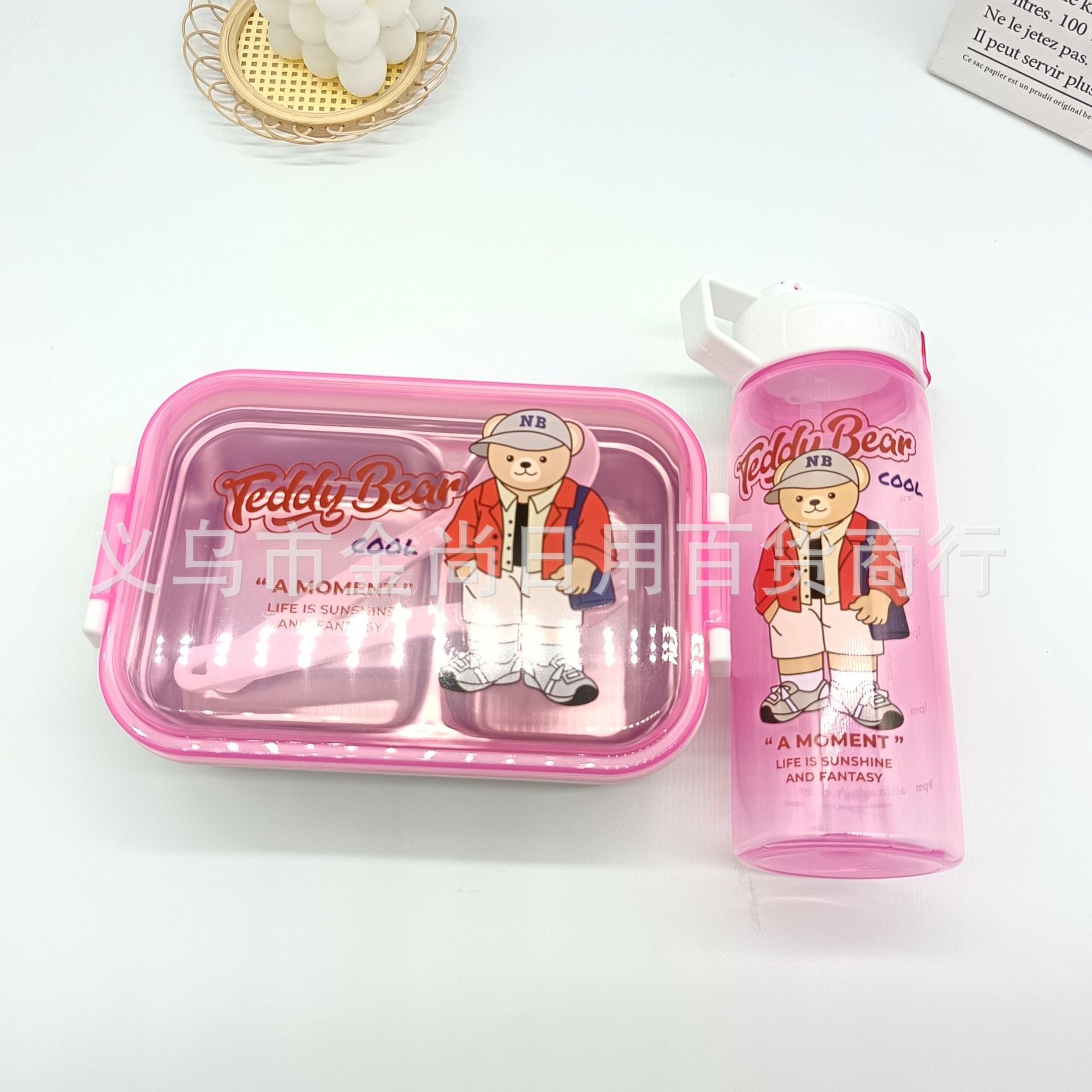 2025卡通可爱分格水杯饭盒套装午餐盒带盖饭盒学生上班便携带餐具