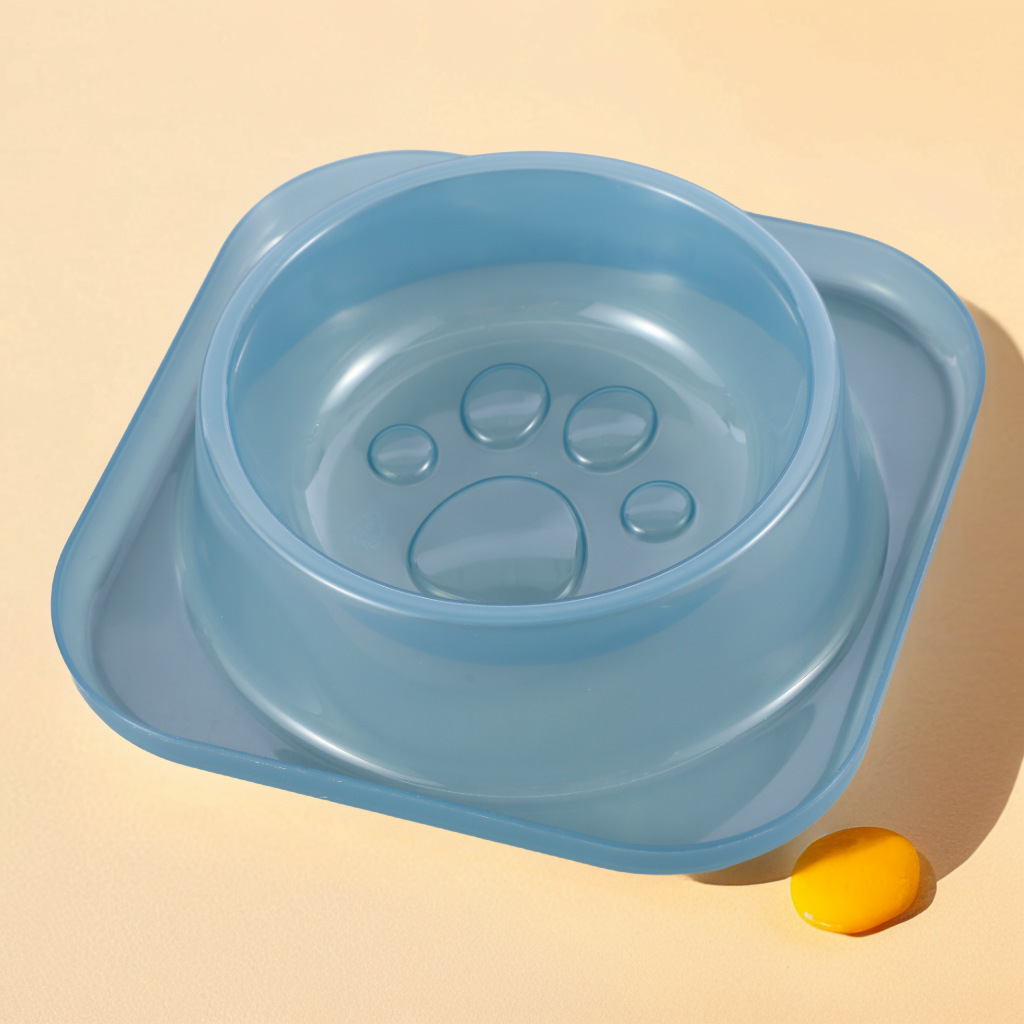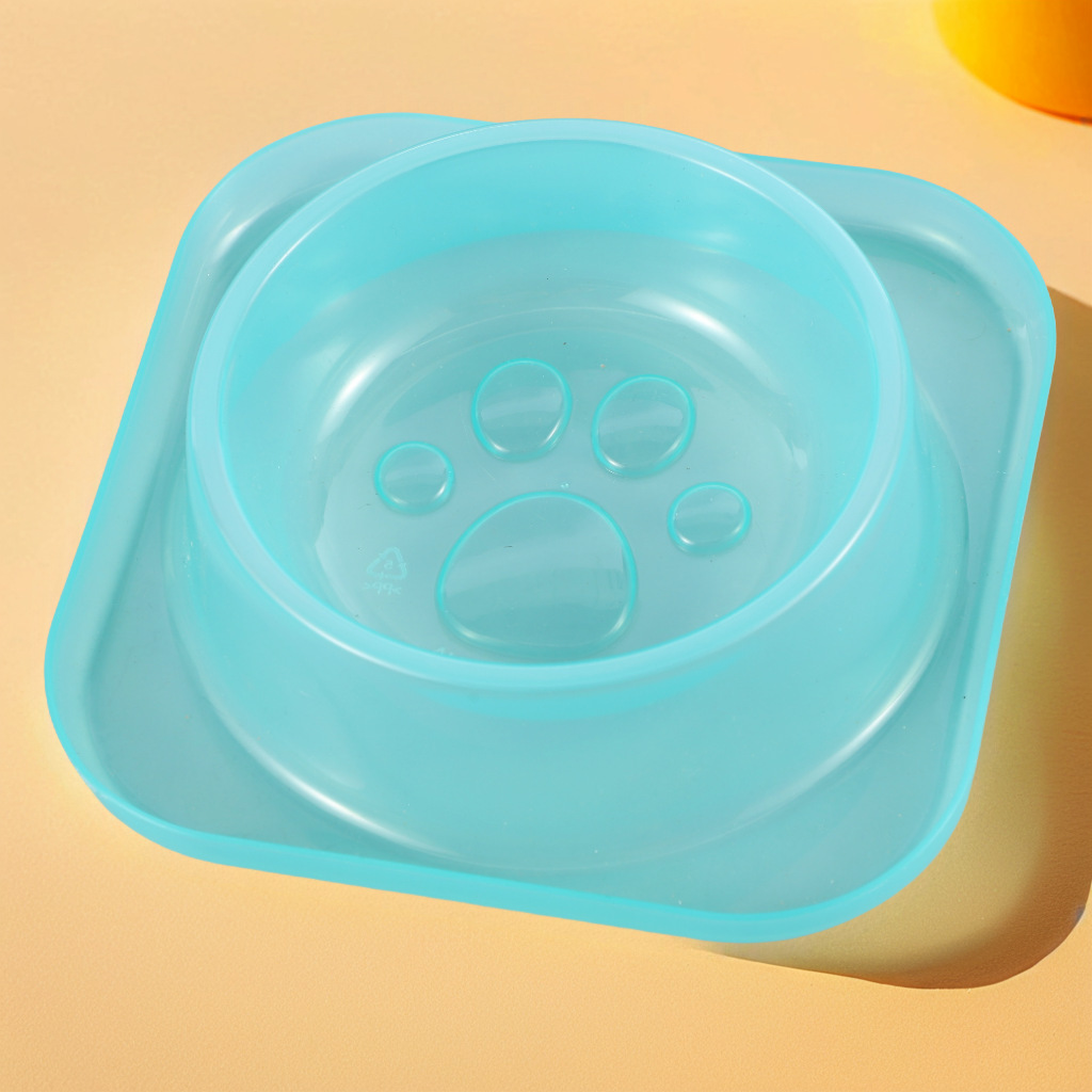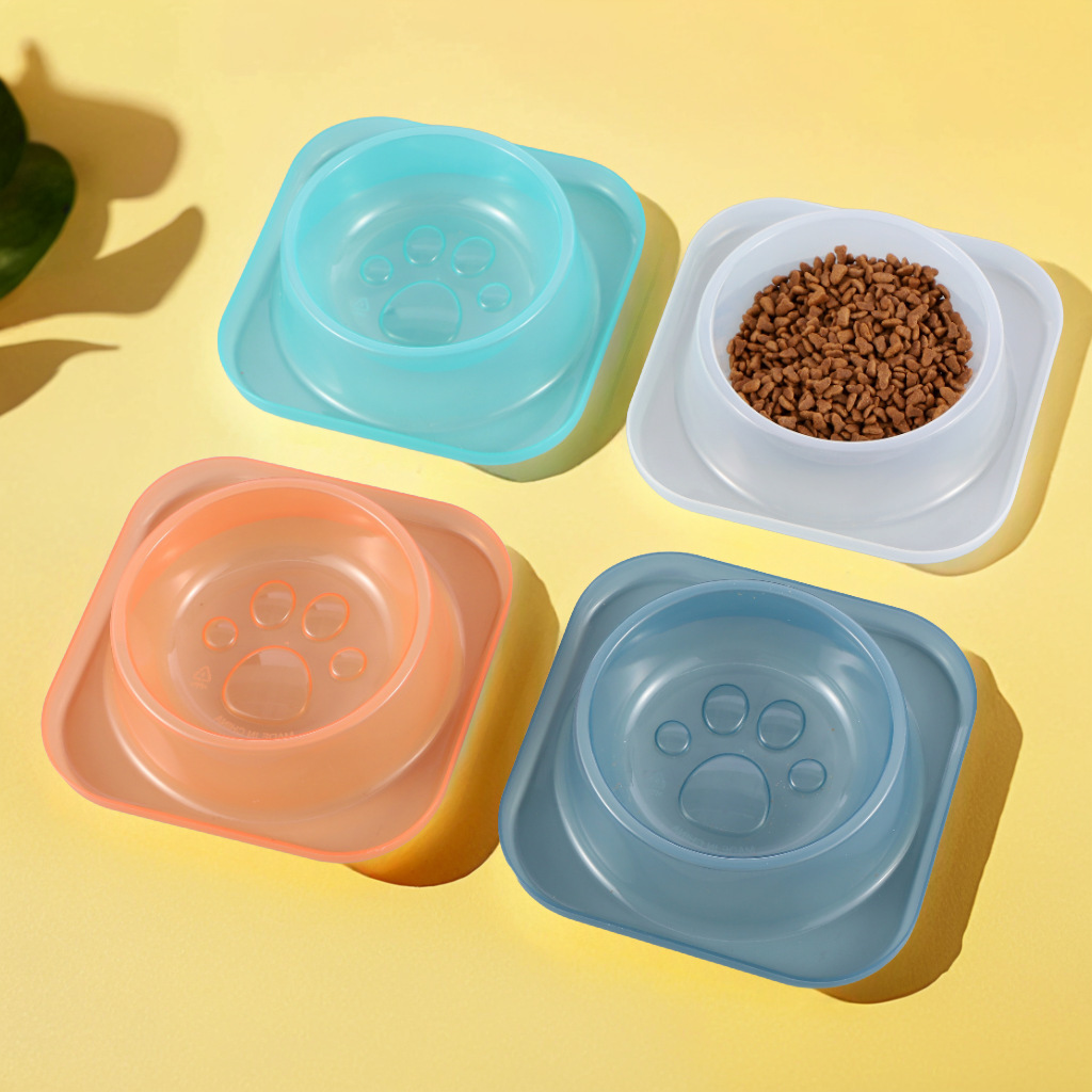 亚马逊跨境透明防漏食单碗宠物食具猫猫狗狗防滑大号食盆批发猫爪