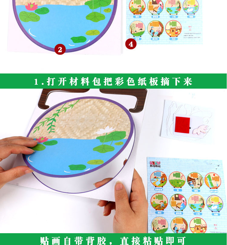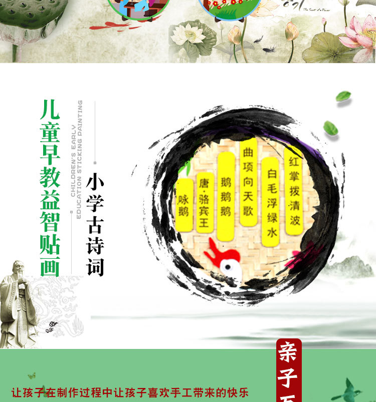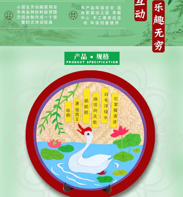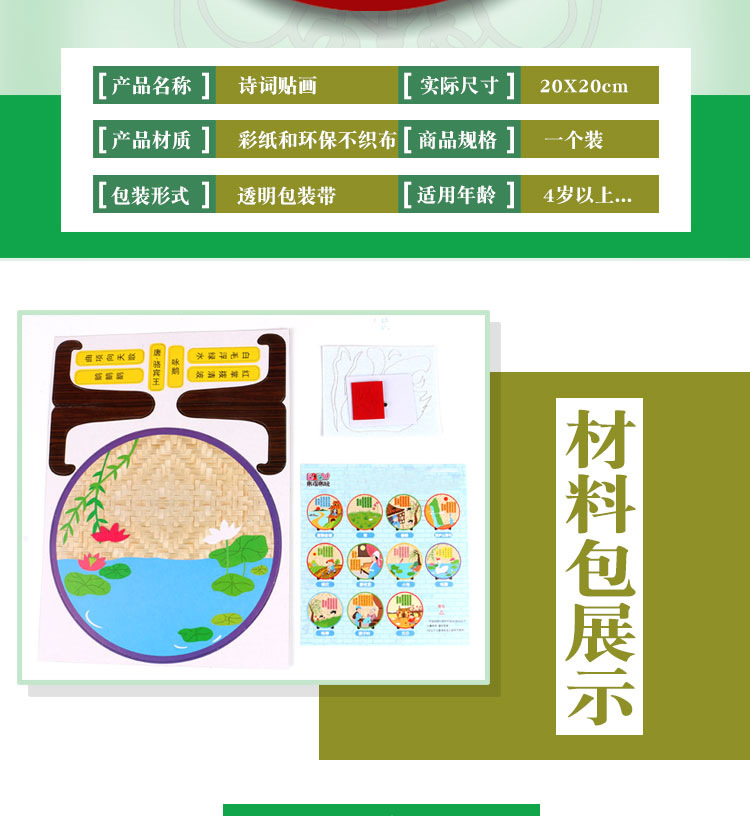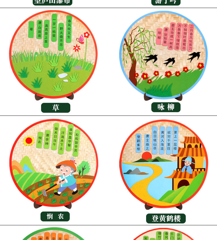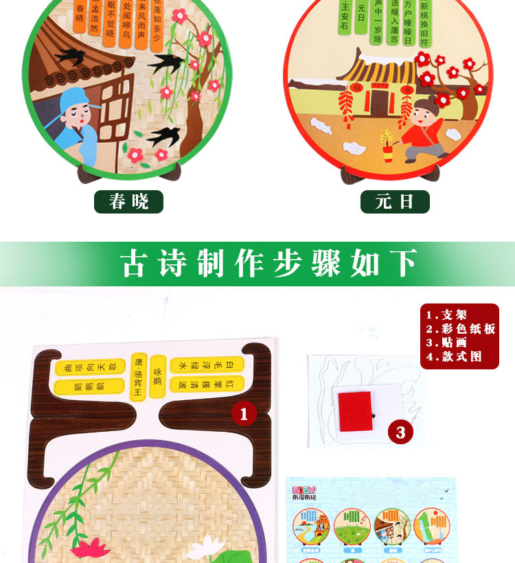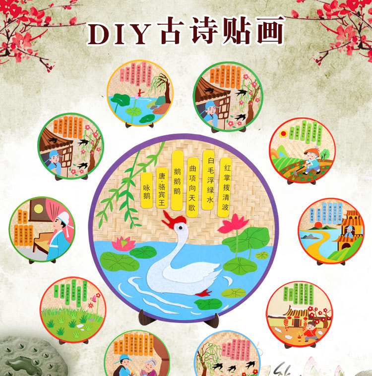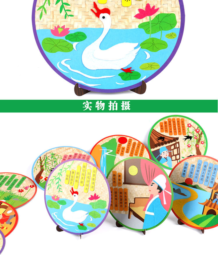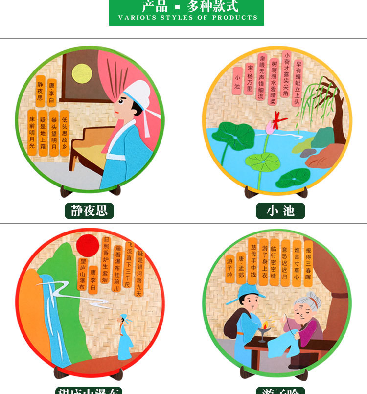 厂家直销古诗词不织布贴画幼儿园创意古诗手工DIY制作粘贴画唐诗