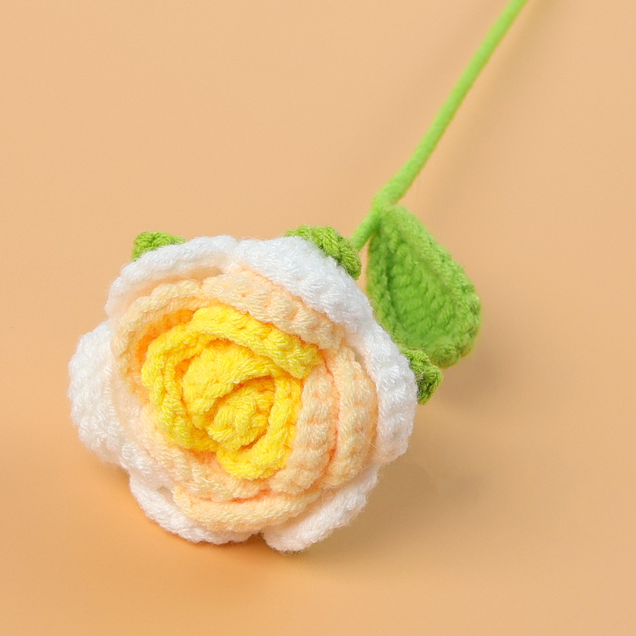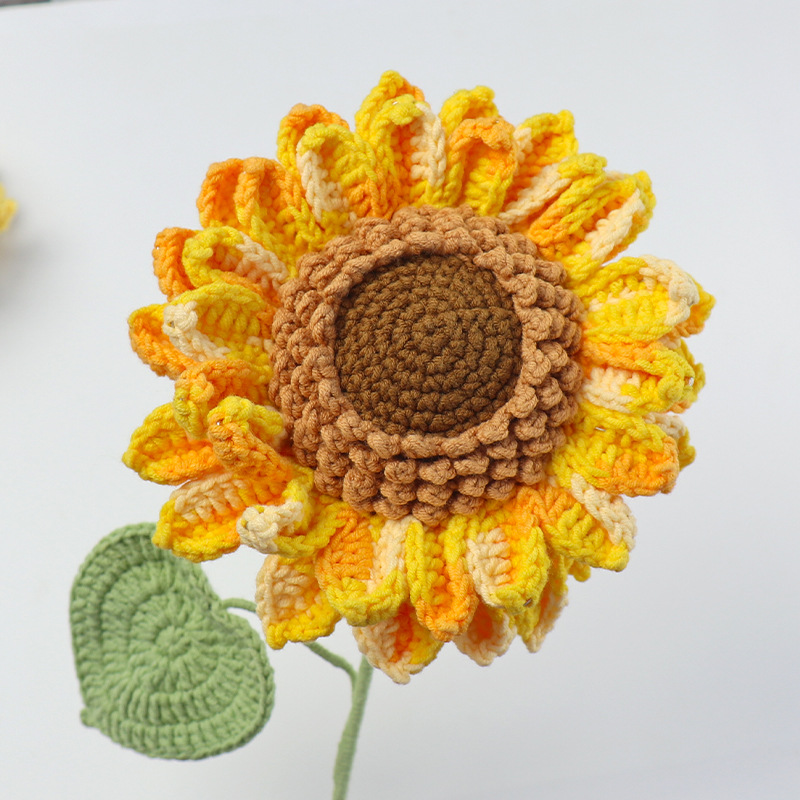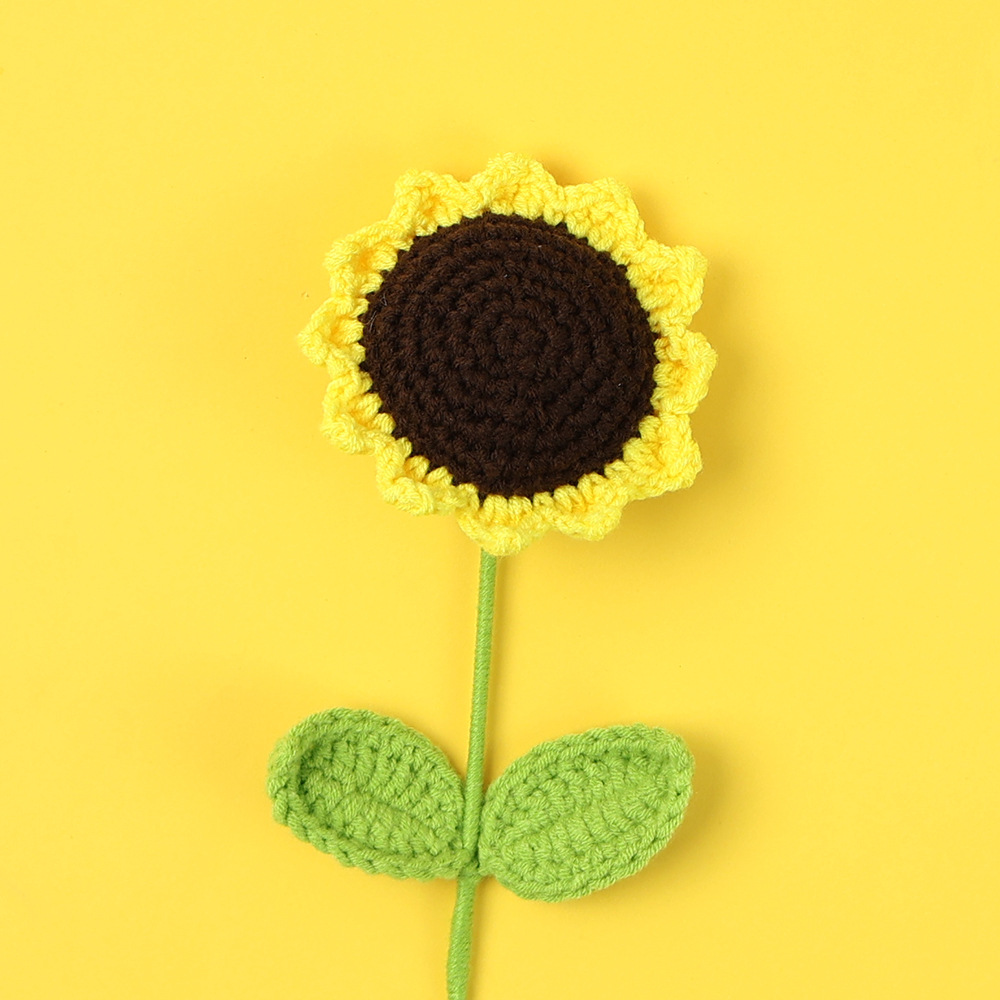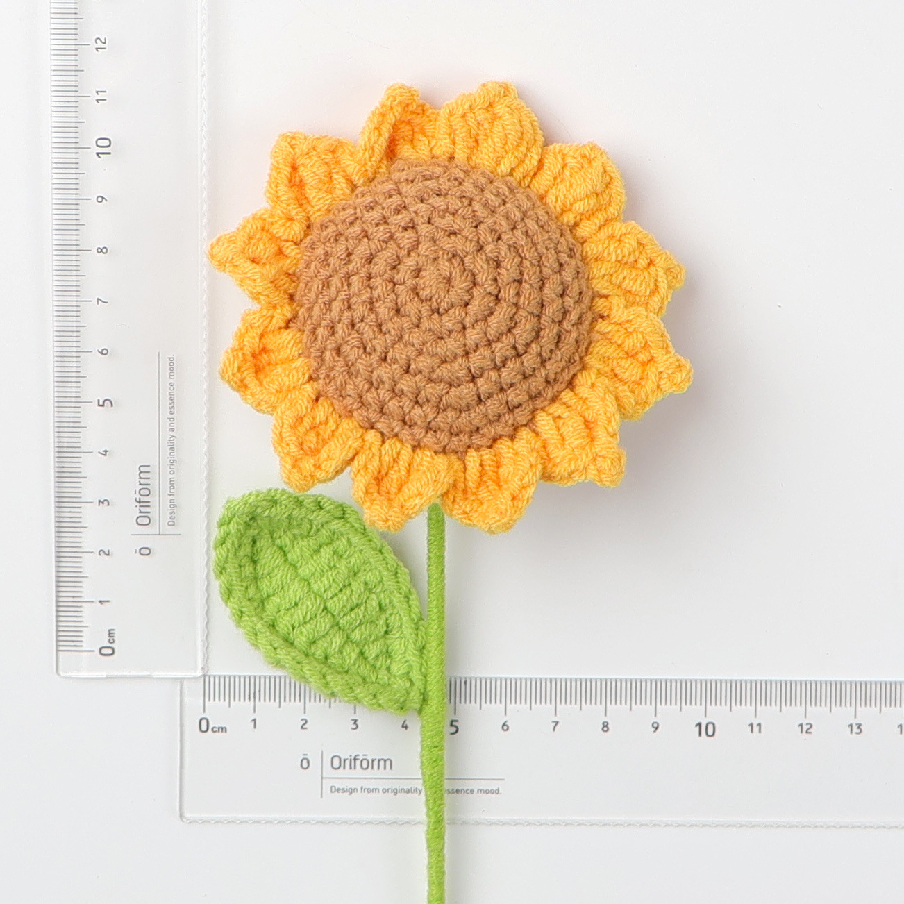 成品跨境编织向日葵仿真花手工毛线针织太阳花郁金香玫瑰毕业礼物