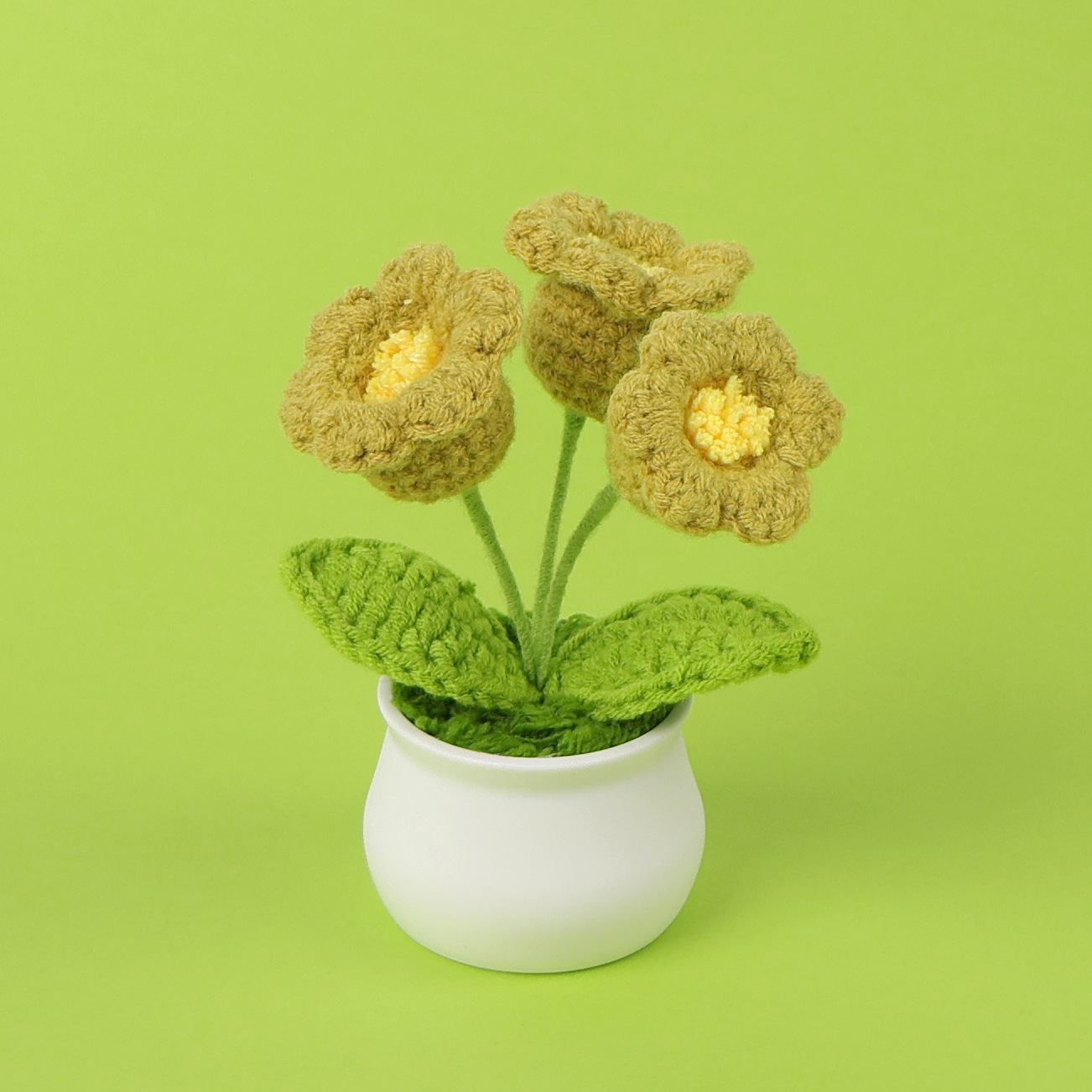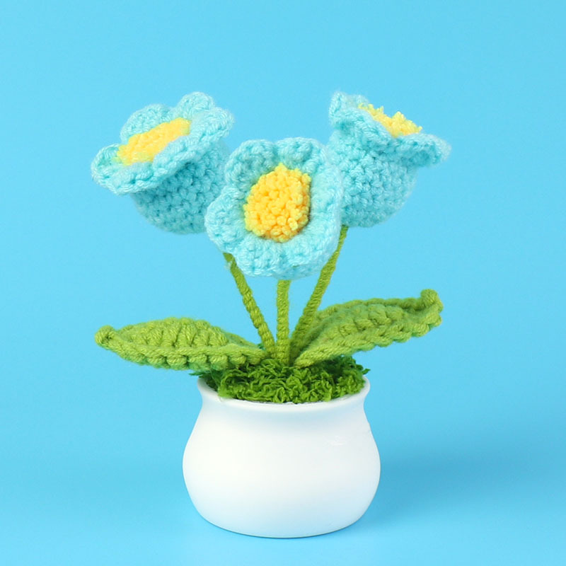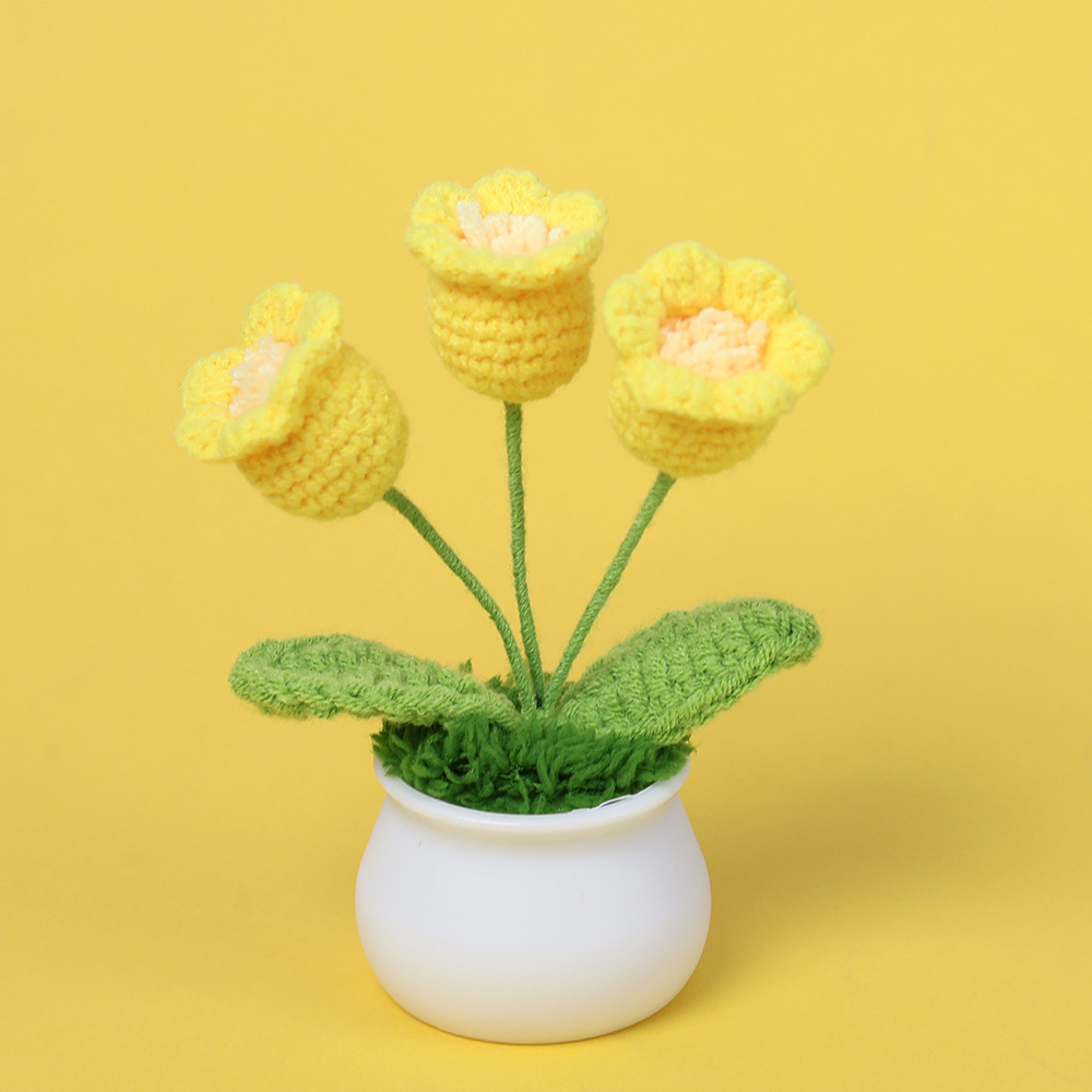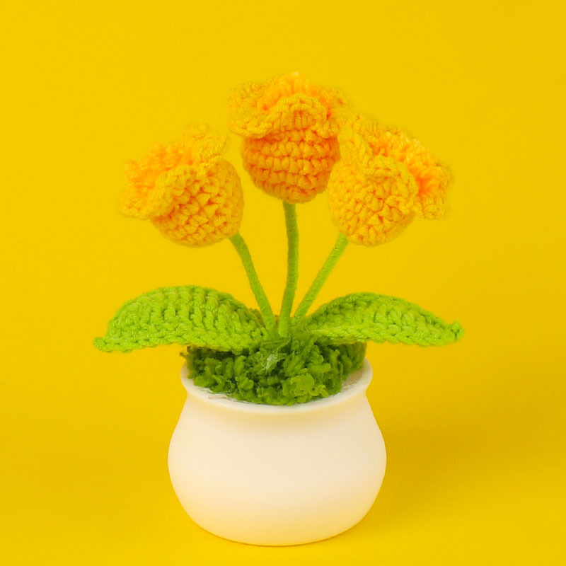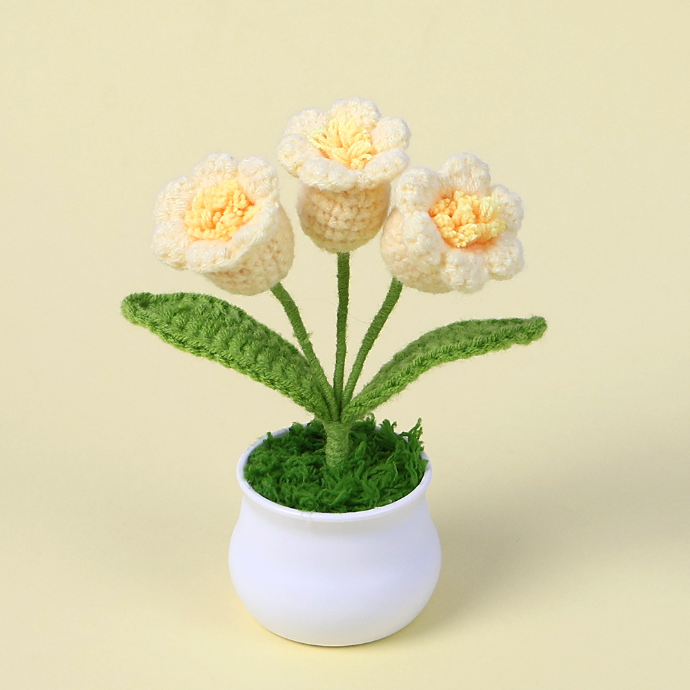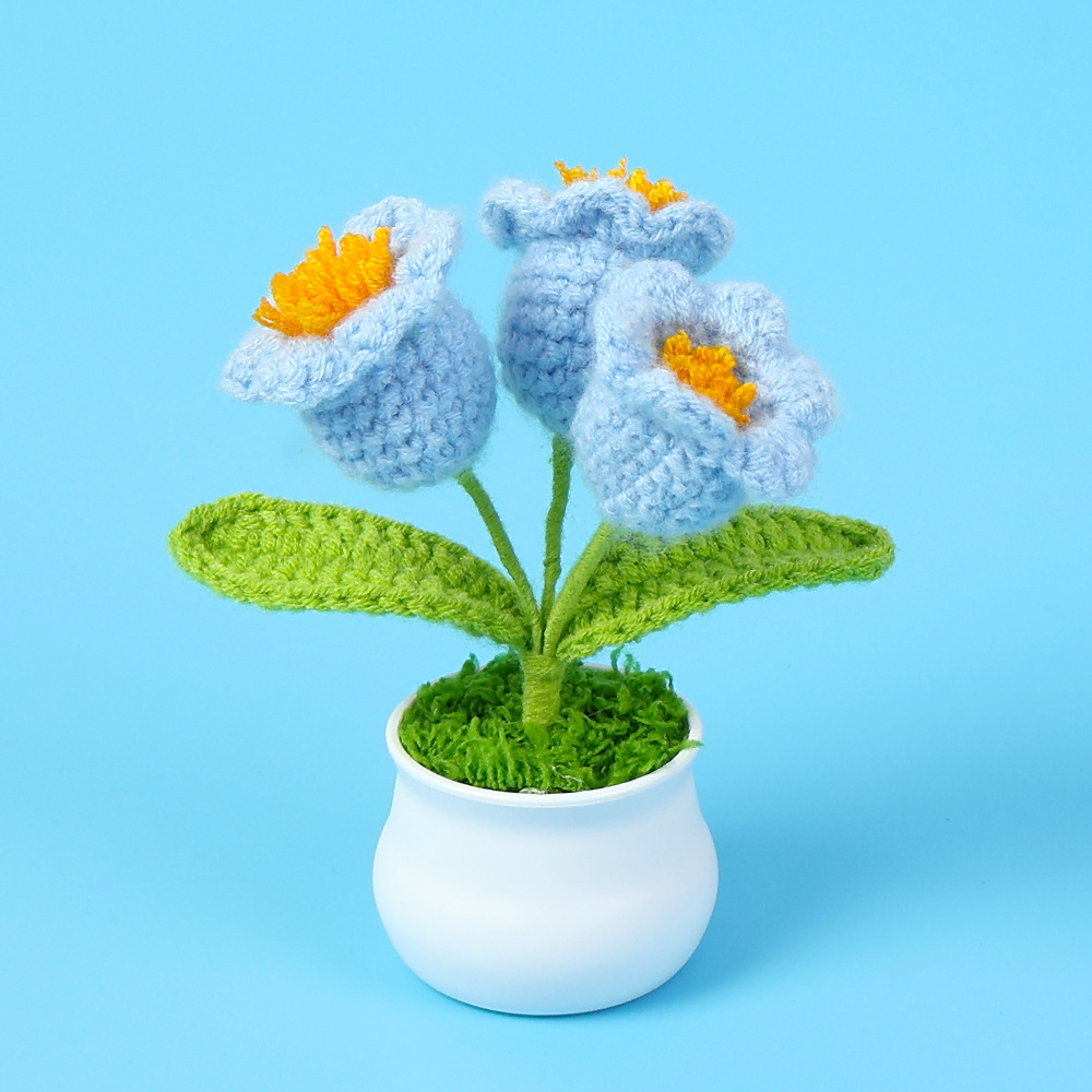 成品跨境钩织毛线铃兰花盆栽仿真花小清新文艺桌面车载摆件批发