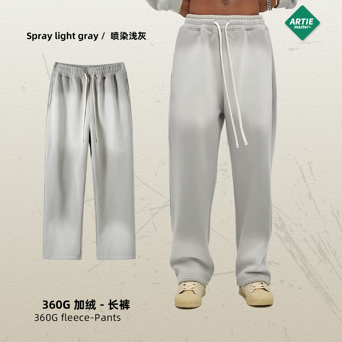 ARTIE男装丨2024秋冬新品360g喷染做旧男长裤泛白洗水做旧休闲裤