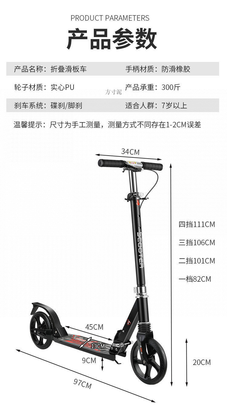 青少年成人代步滑板车儿童滑板车两轮8-9-12校园上班可折叠代步车