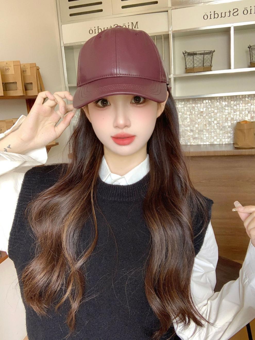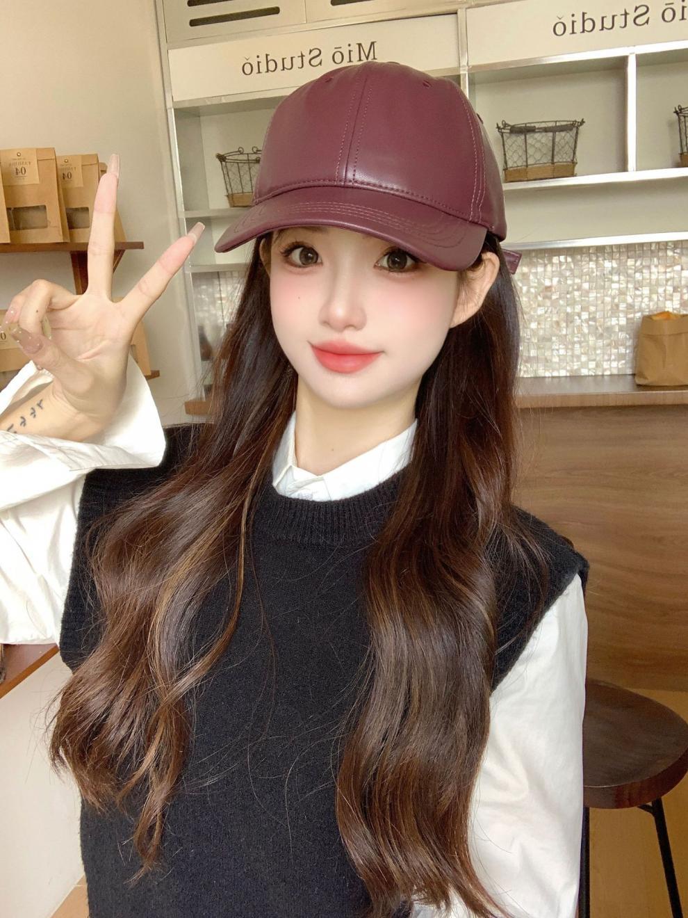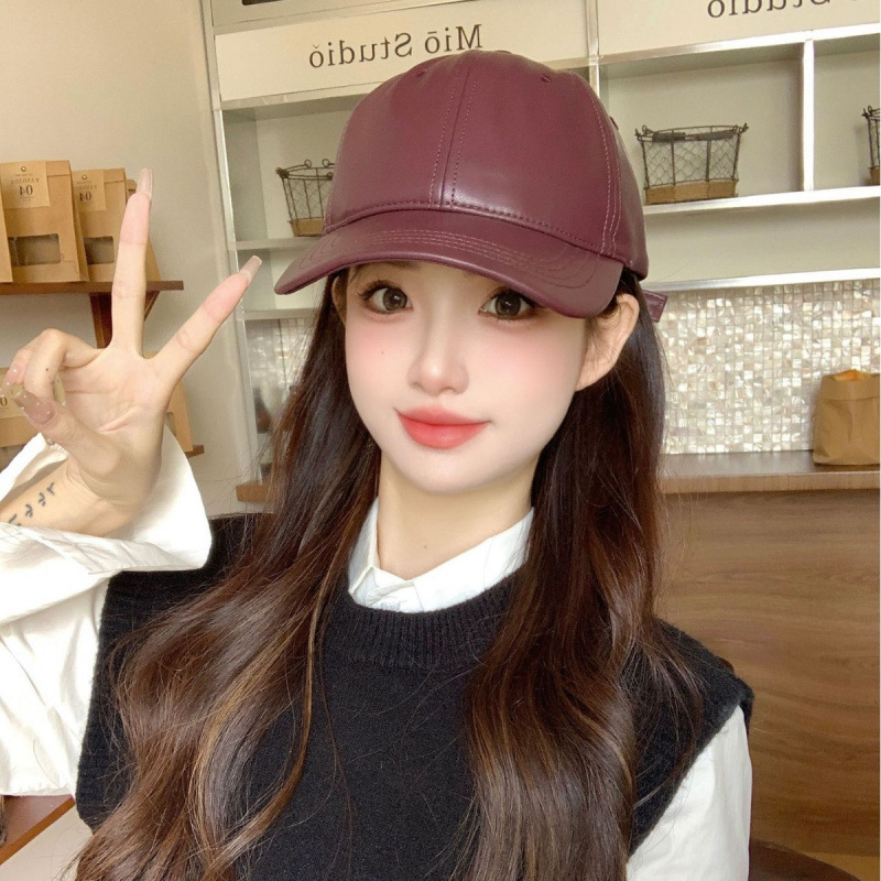 韩版新款PU皮帽子女时尚日系小清新百搭显脸小复古防晒遮阳鸭舌帽