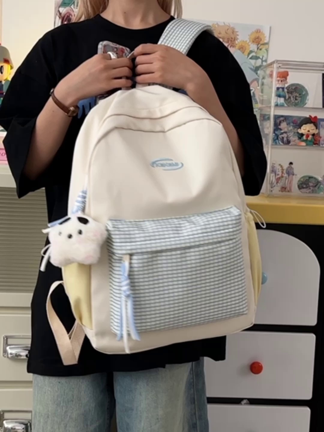 日系ins韩版潮流时尚双肩包小众学生初中生大容量书包女高级感