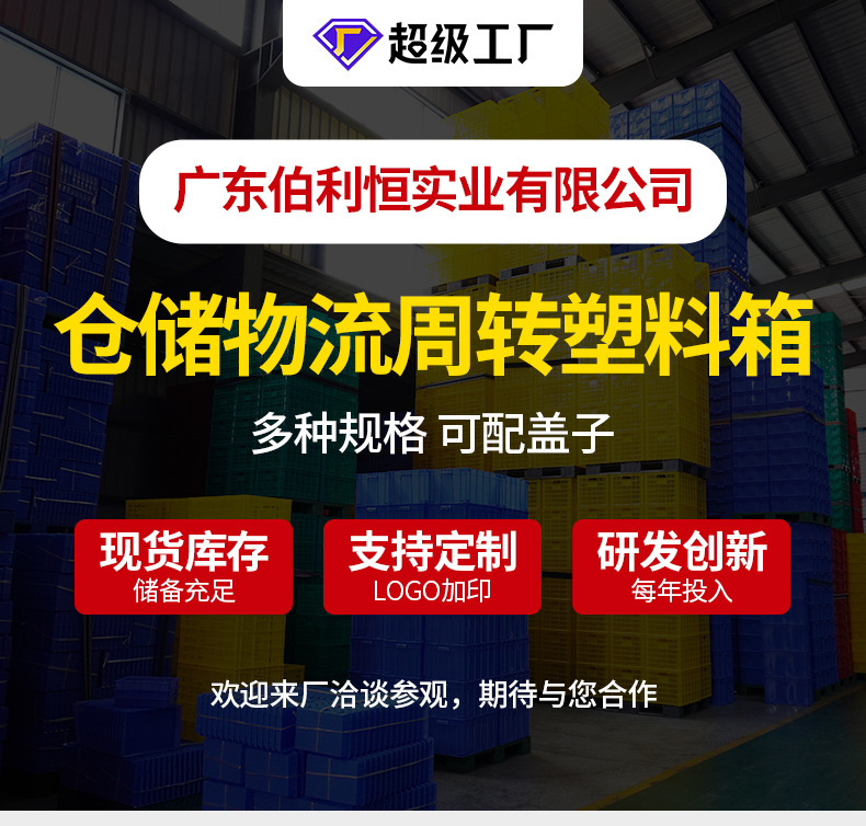 塑料周转箱带盖加厚胶框大号工业蓝色塑料箱塑胶周转箱工厂物流箱