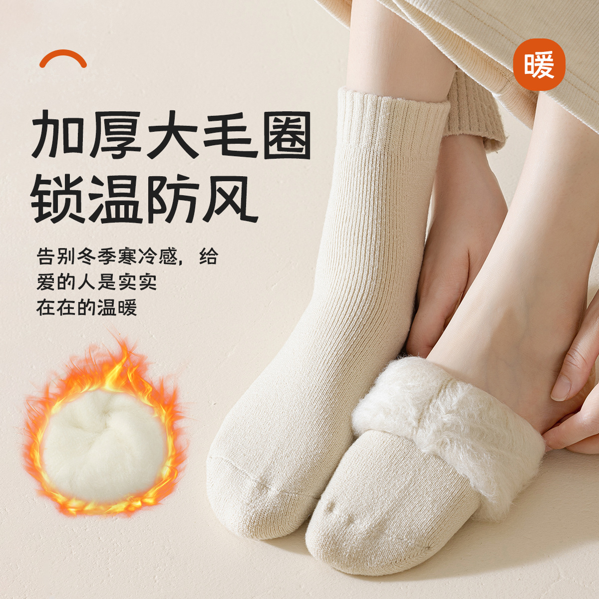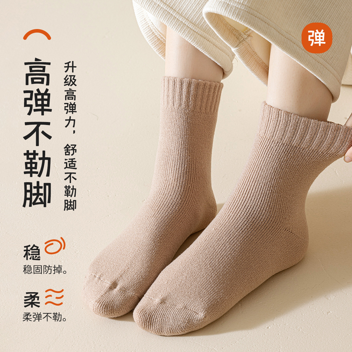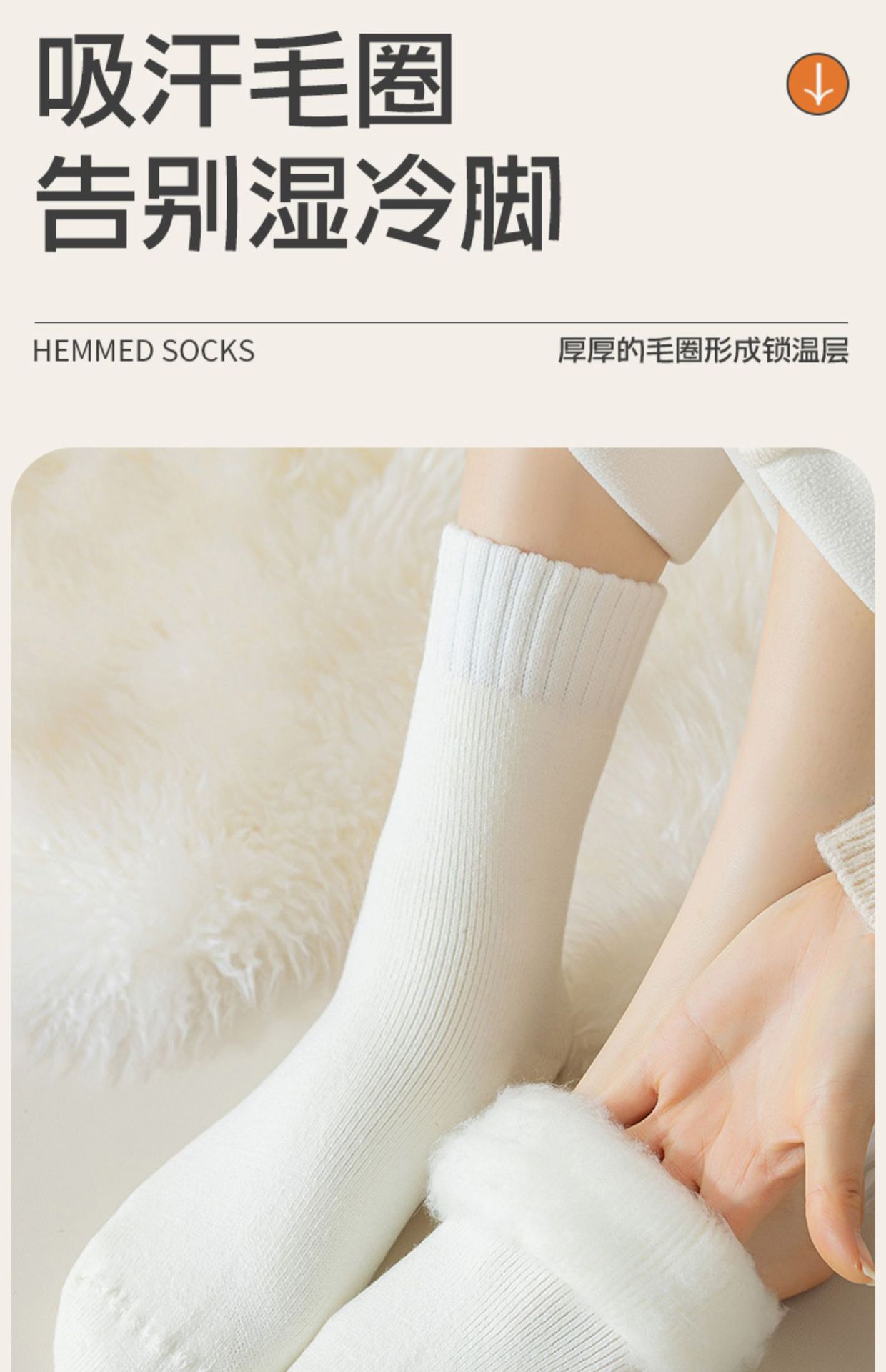 袜子秋冬女中筒加绒加厚羊绒袜诸暨袜子毛圈袜批发冬天女袜长筒袜