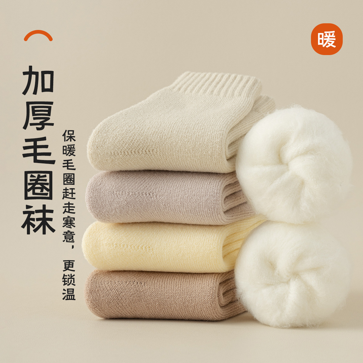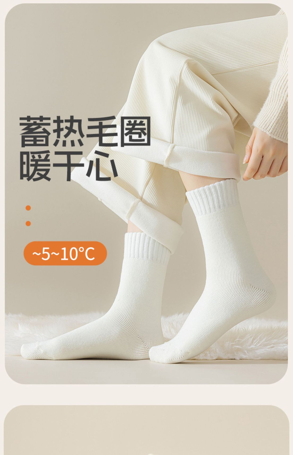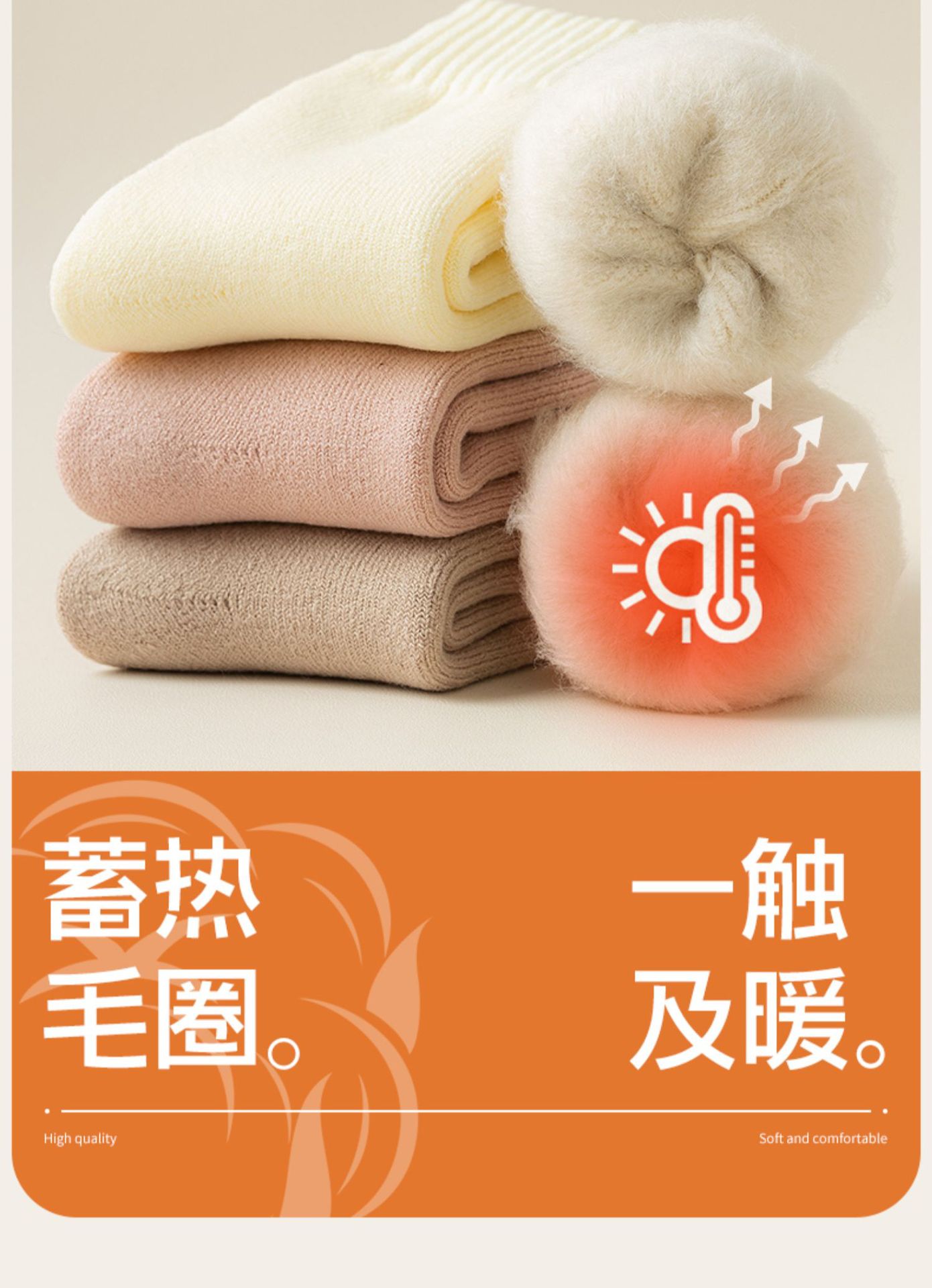 袜子秋冬女中筒加绒加厚羊绒袜诸暨袜子毛圈袜批发冬天女袜长筒袜