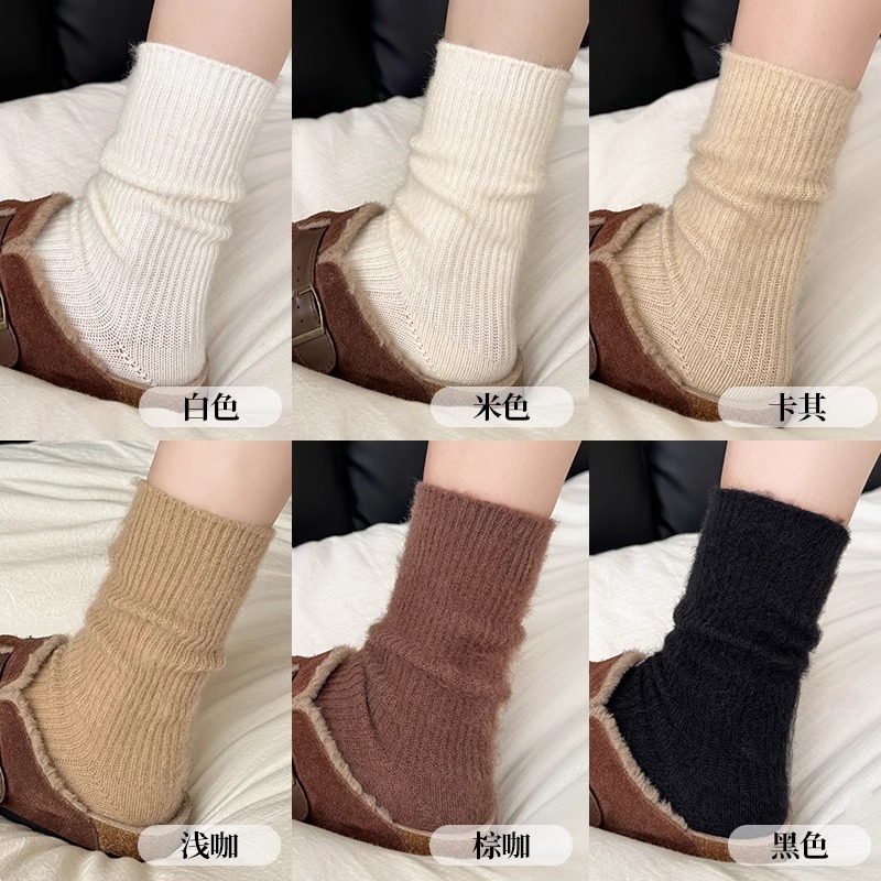 羊毛袜子女秋冬季美拉德中筒袜加厚保暖羊绒长袜冬天勃肯鞋堆堆袜
