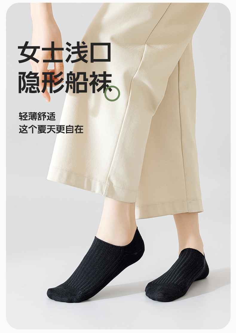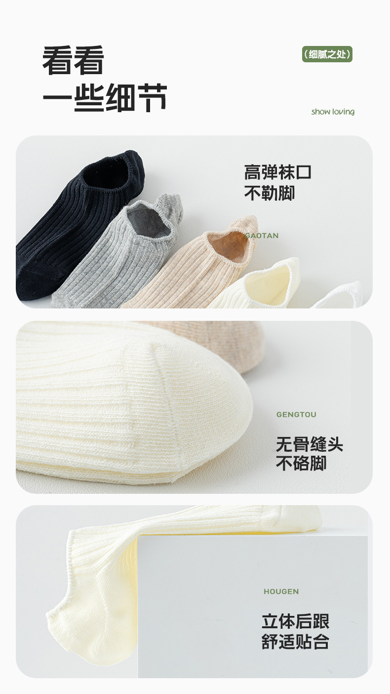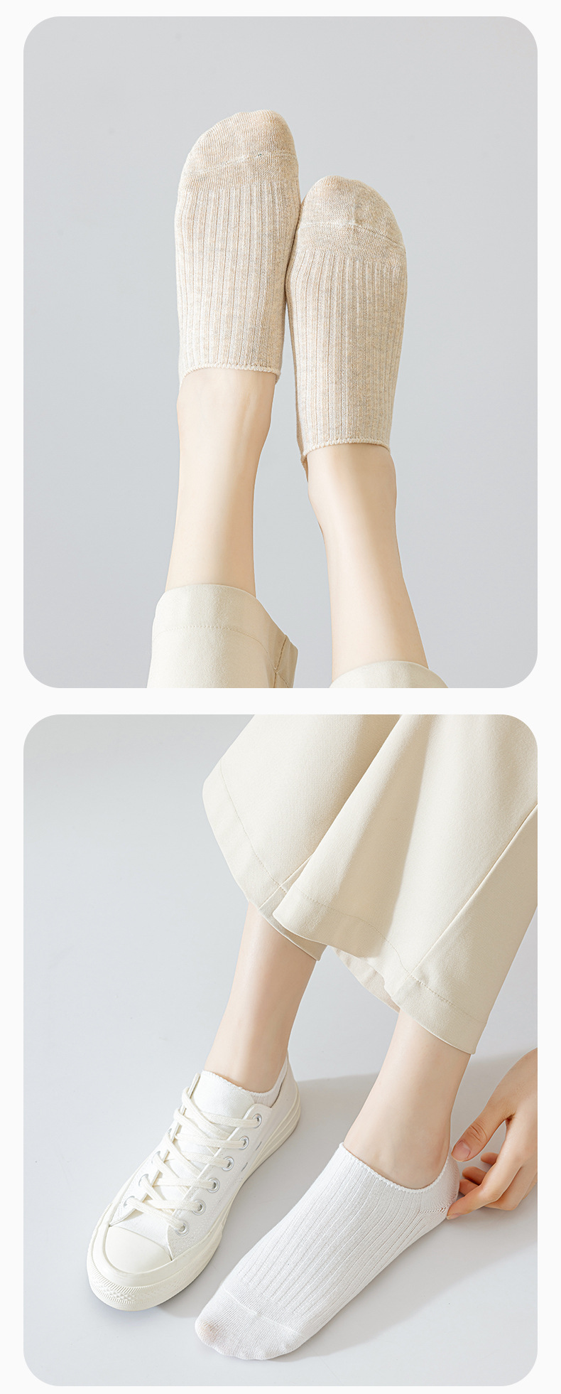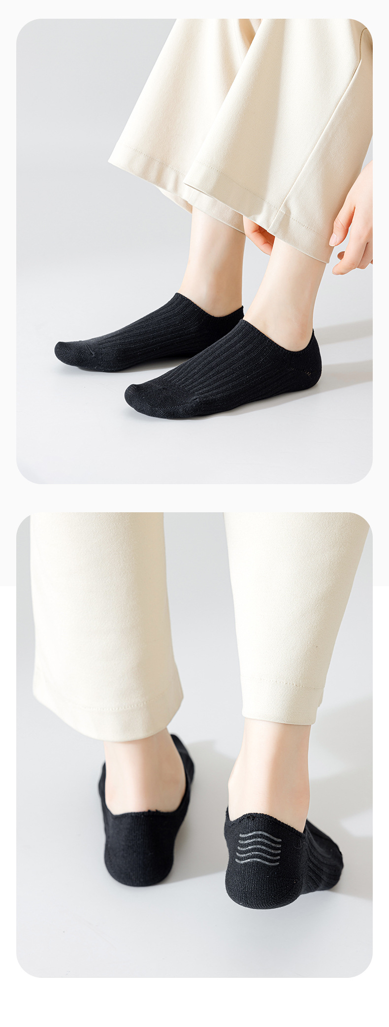 双针纯色船袜女夏季薄款潮袜子女批发全棉浅口双后跟硅胶防滑棉袜