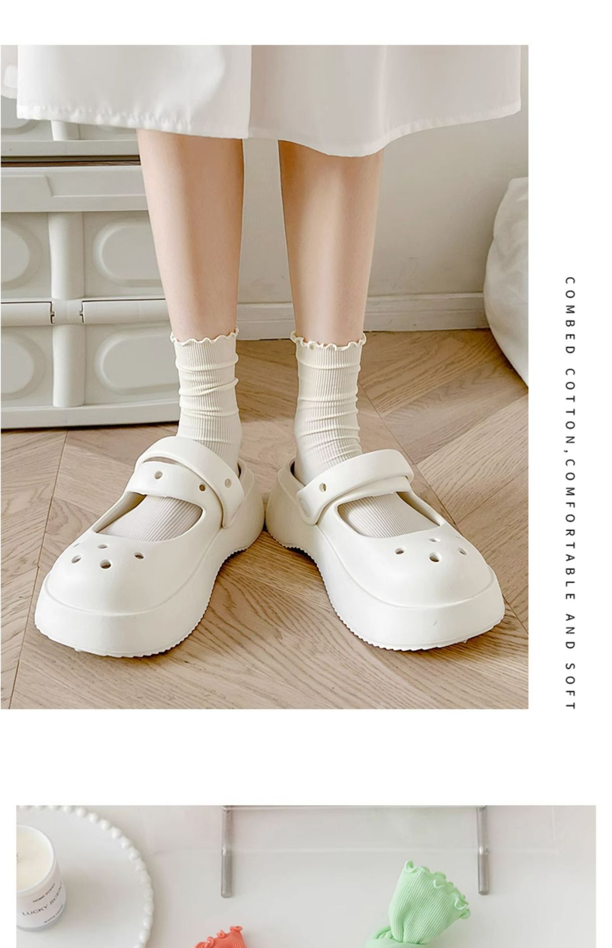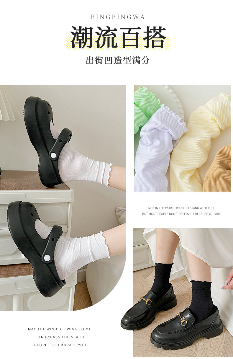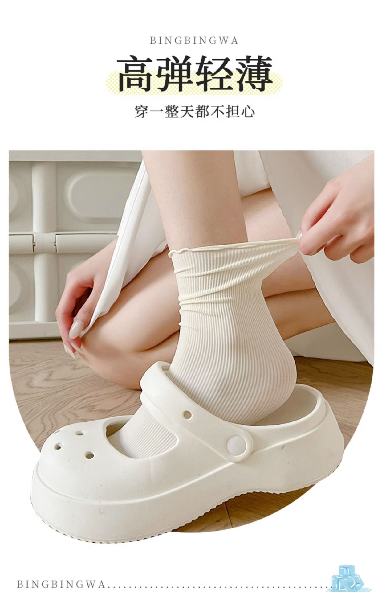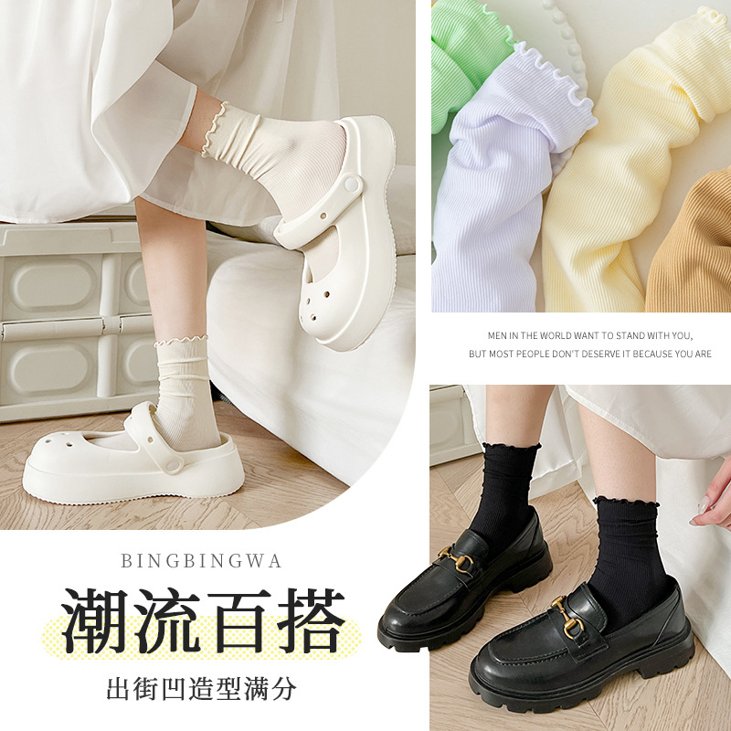 洞洞鞋袜子女夏季薄款白色花边冰冰袜夏天堆堆袜女木耳边袜子批发