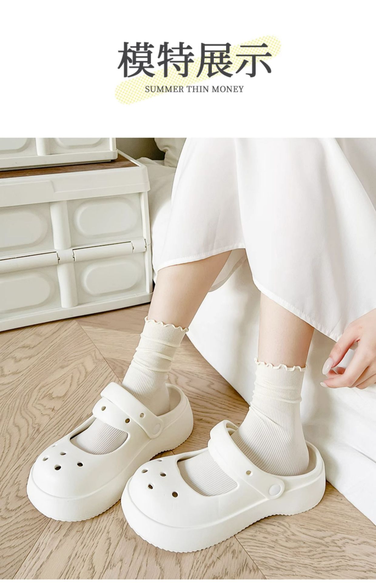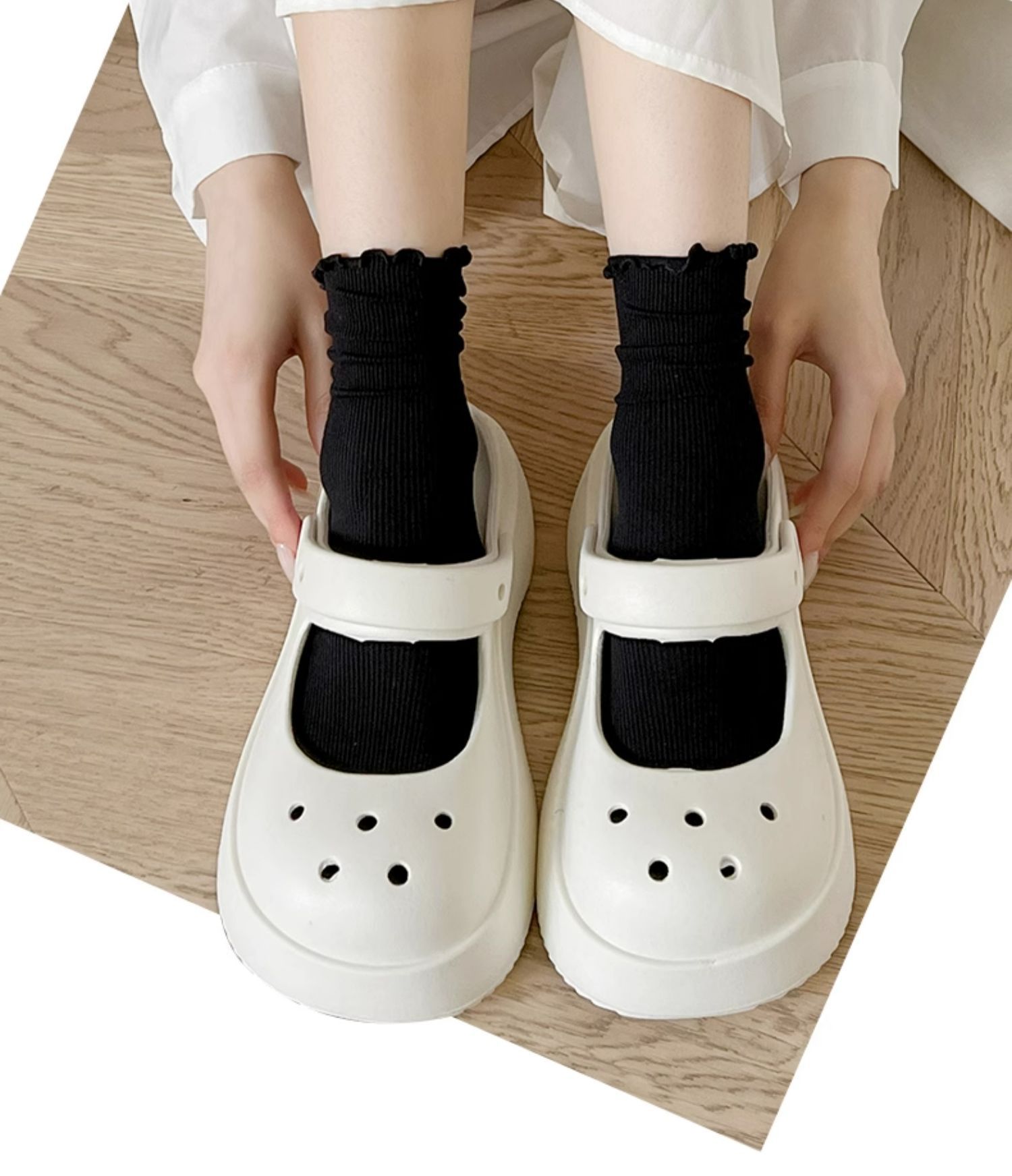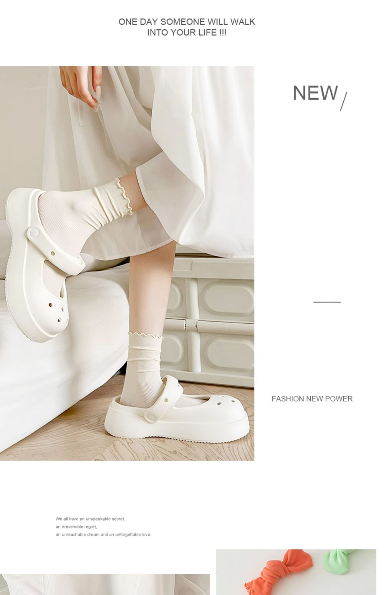 洞洞鞋袜子女夏季薄款白色花边冰冰袜夏天堆堆袜女木耳边袜子批发