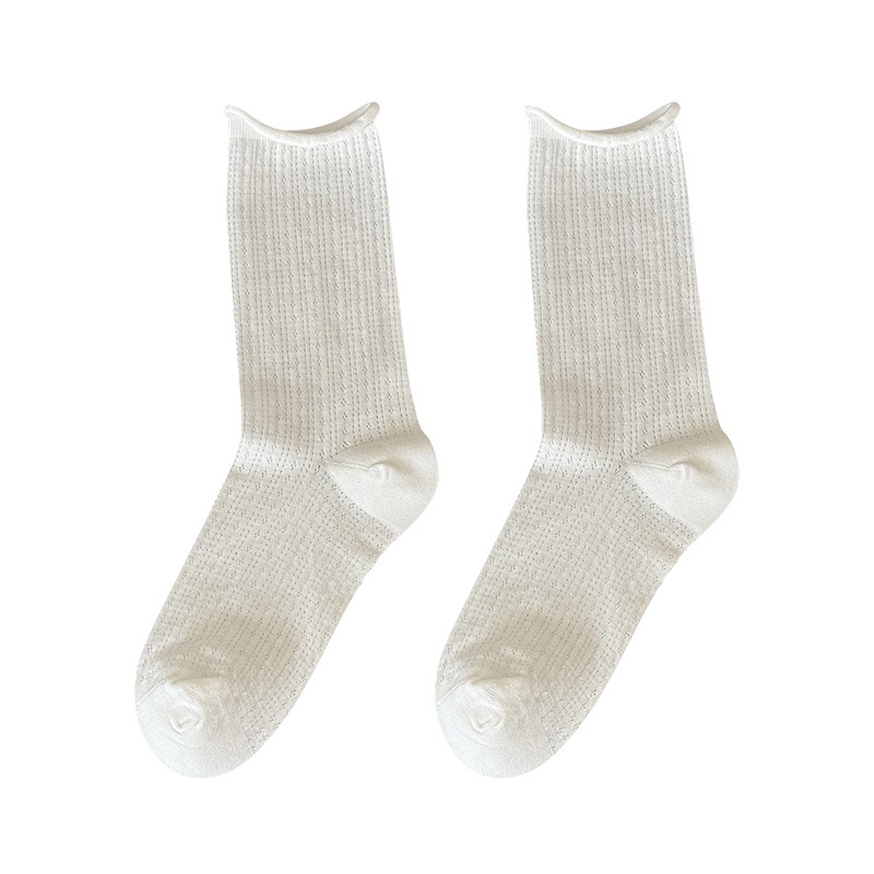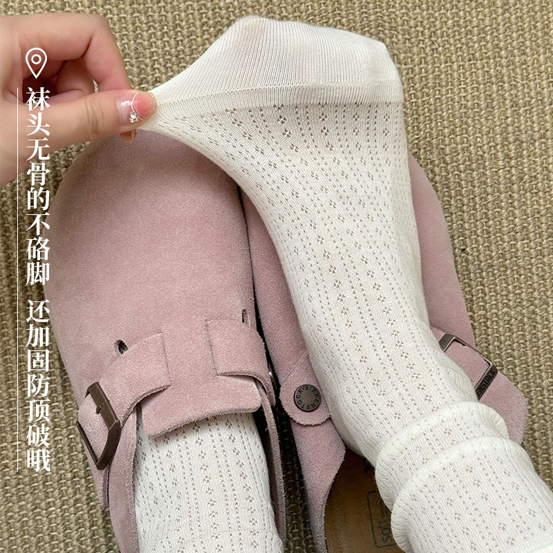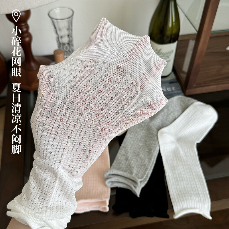 灰色袜子女夏季薄款卷边中筒袜纯棉网眼长袜日系芭蕾风堆堆袜夏天