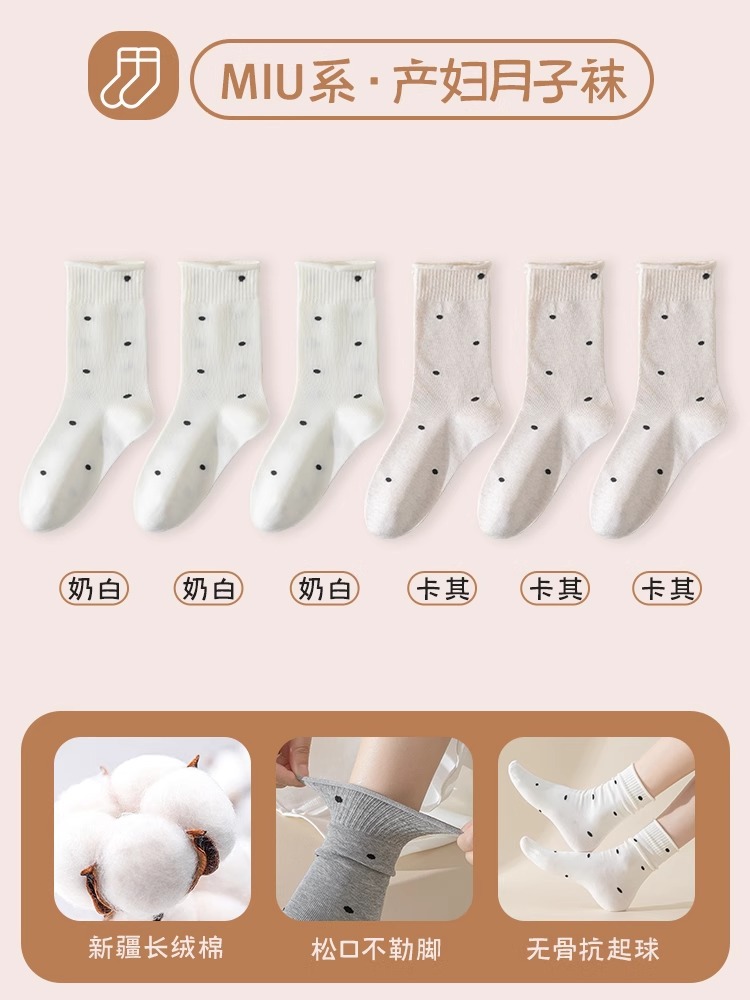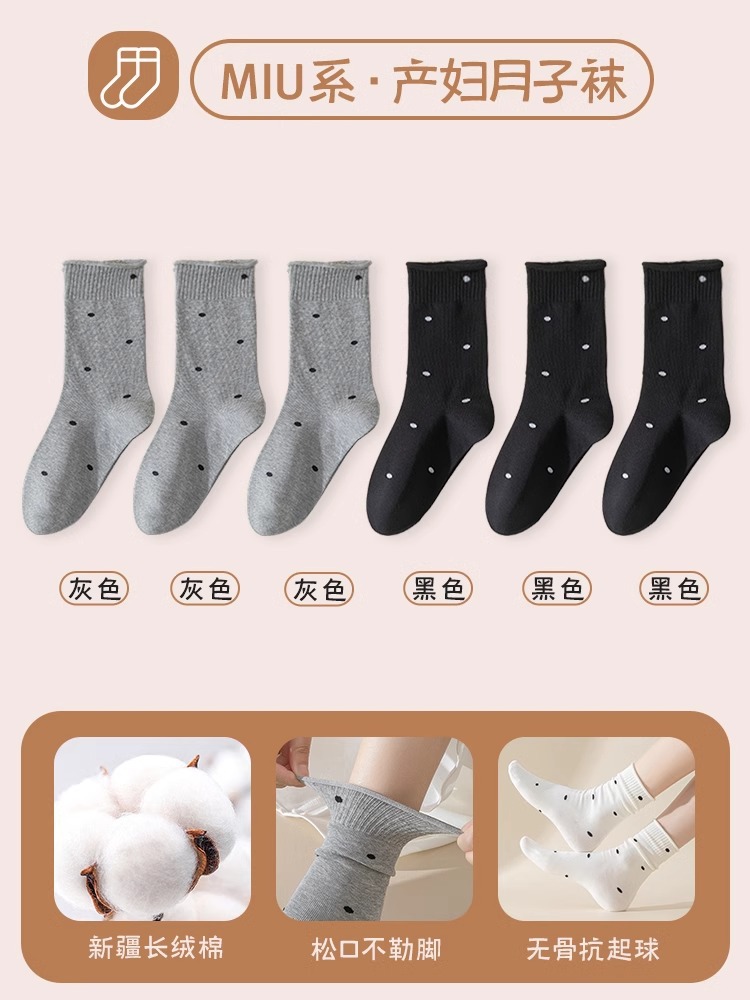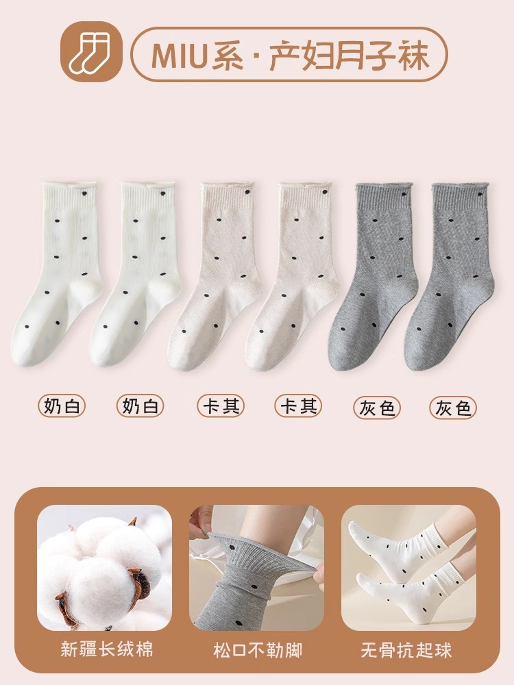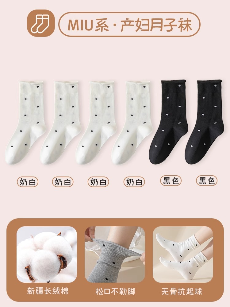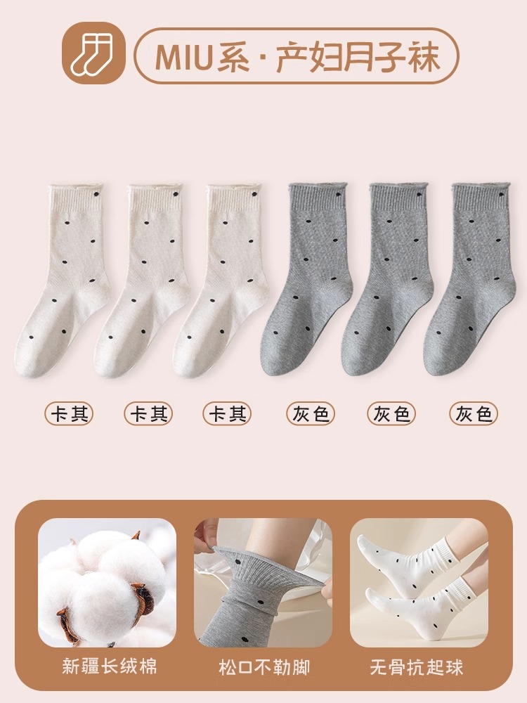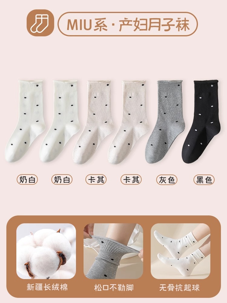 产妇月子袜秋冬产后孕妇不勒脚堆堆袜女春秋无骨纯棉松口波点袜子
