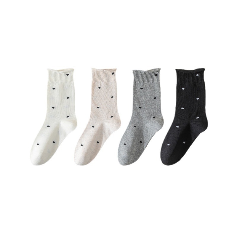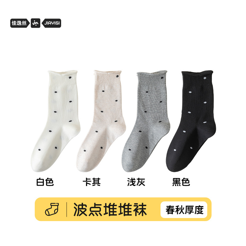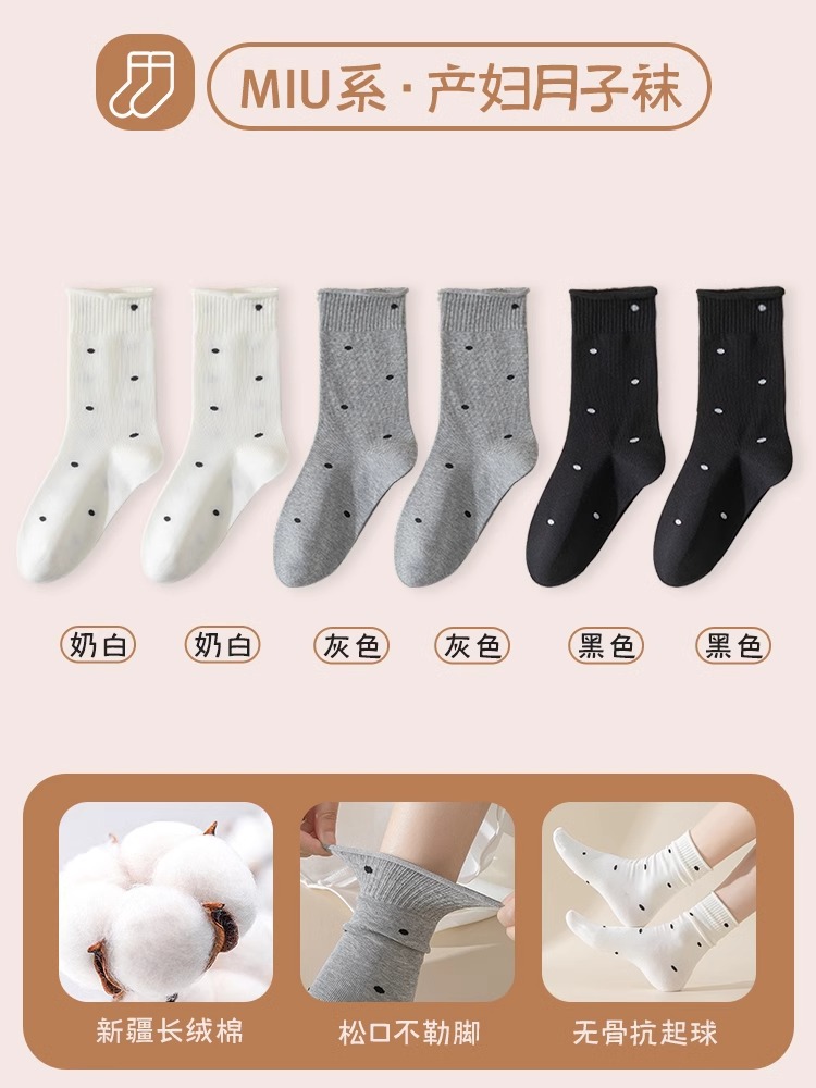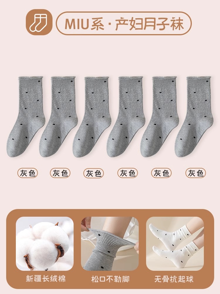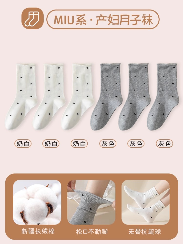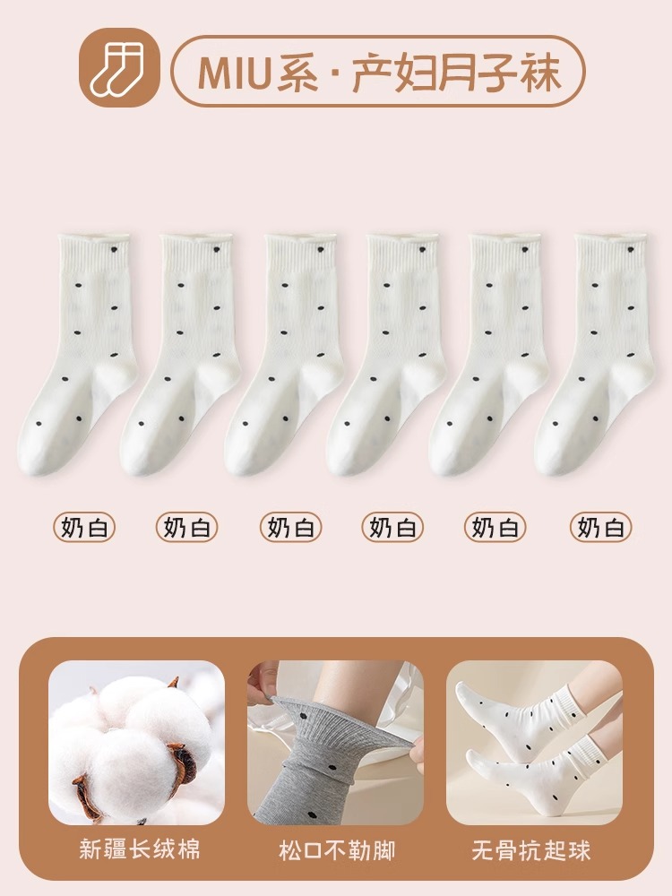 产妇月子袜秋冬产后孕妇不勒脚堆堆袜女春秋无骨纯棉松口波点袜子