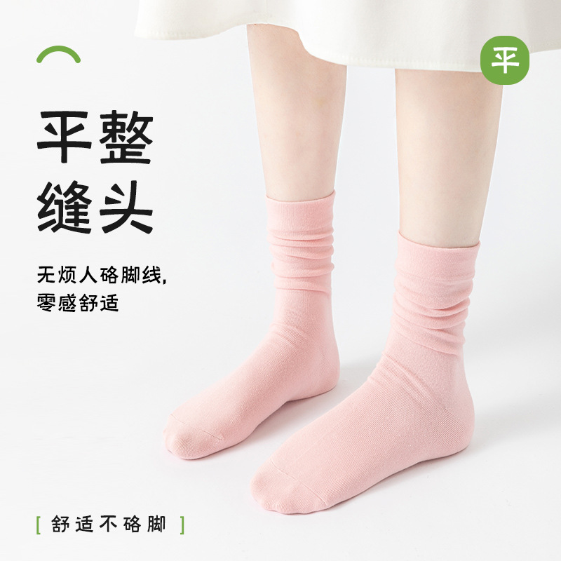 袜子女春秋全棉长筒无骨袜无痕月子袜女袜堆堆袜纯棉袜子春秋批发