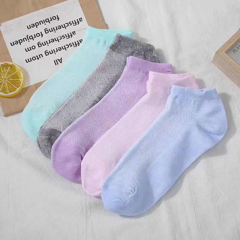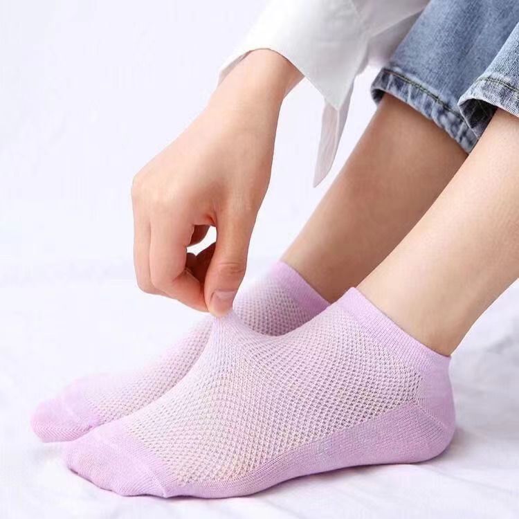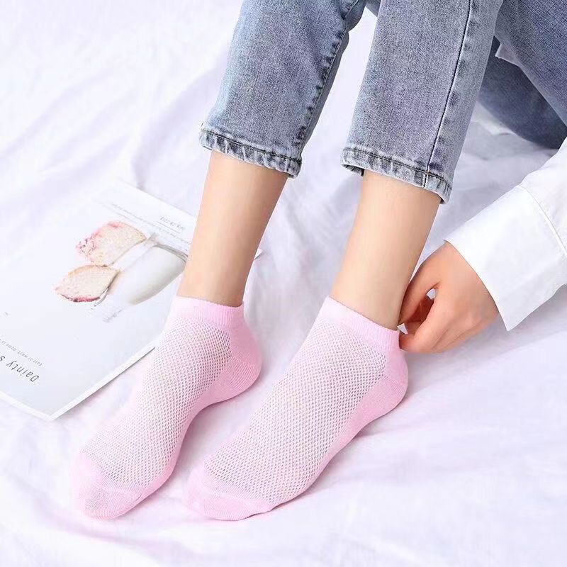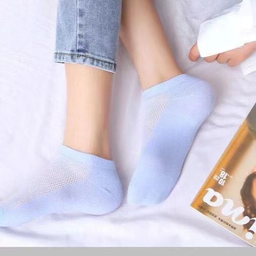 女士船袜纯色短筒袜子网眼透气女袜夏季短款吸汗防臭棉袜跨境代发