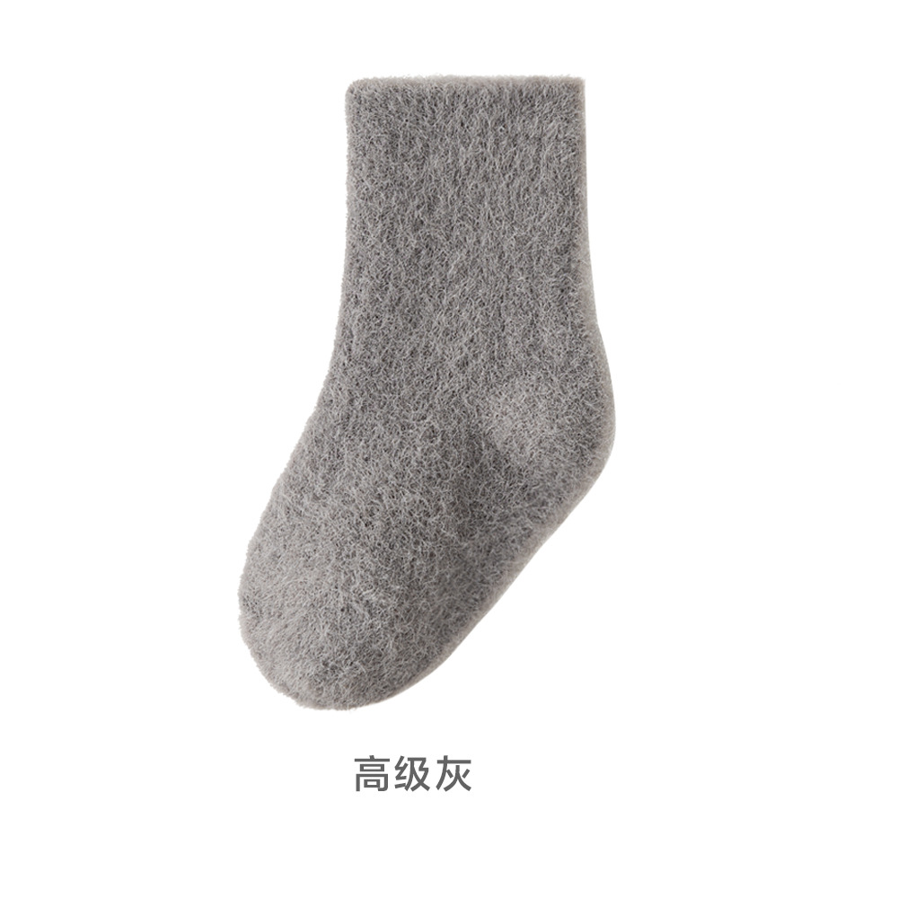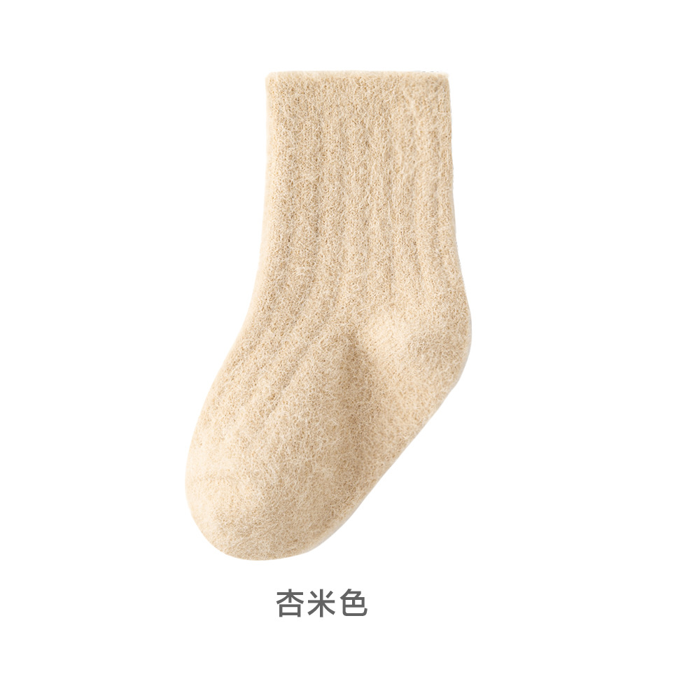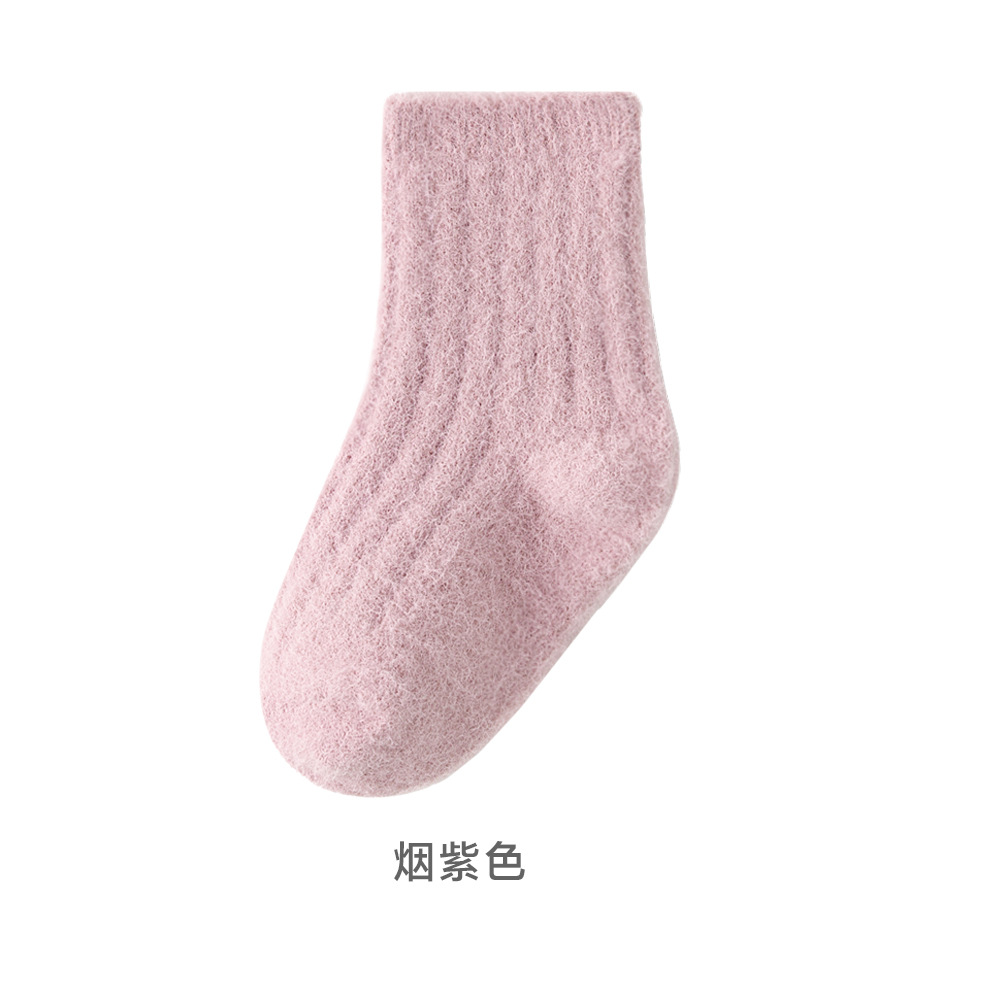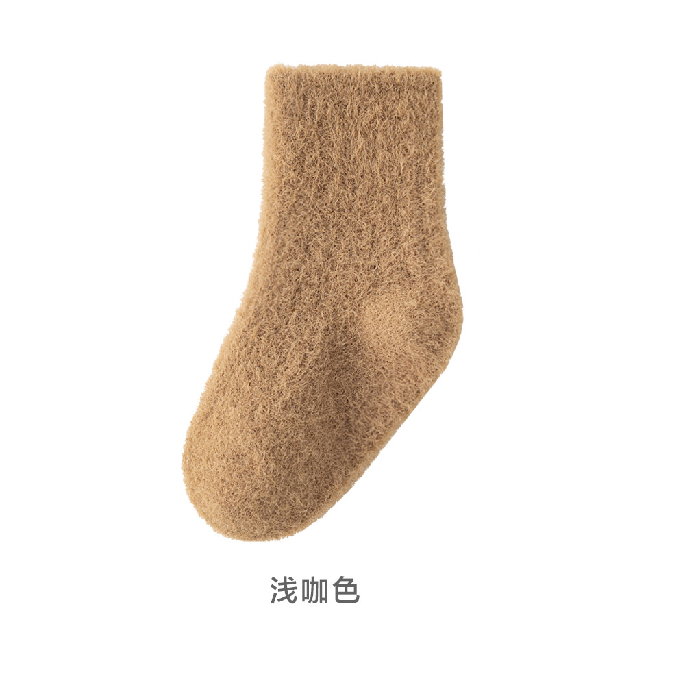 2024貂绒中筒袜冬季新品婴儿袜子加绒加厚保暖宝宝袜纯色男女儿童