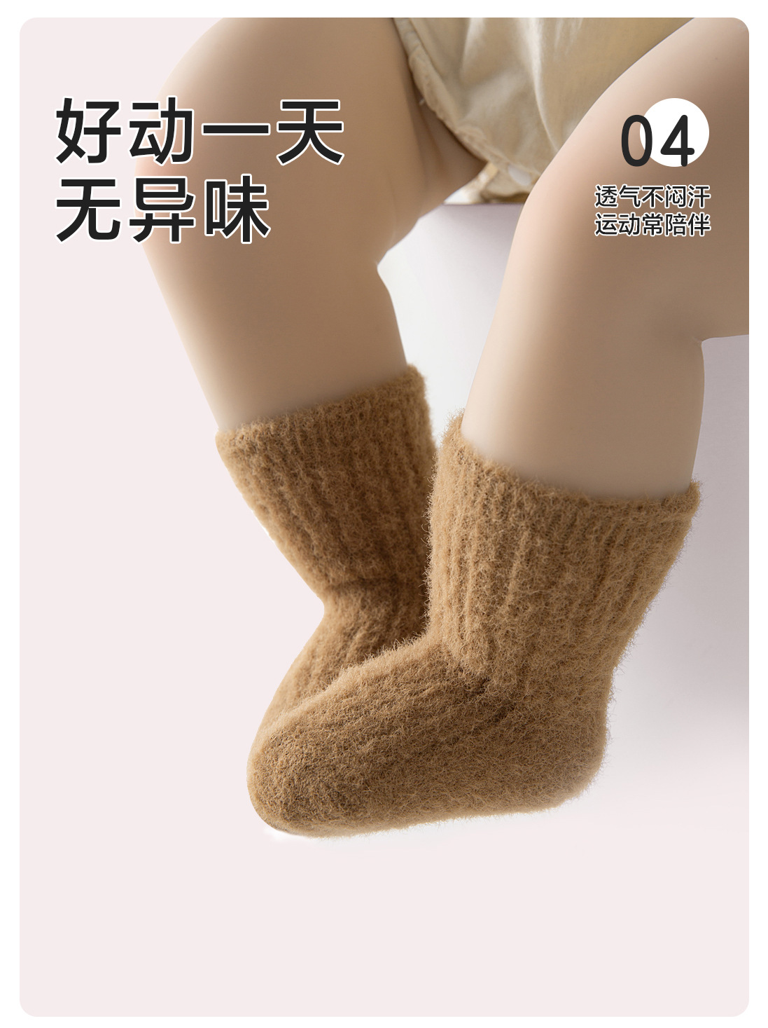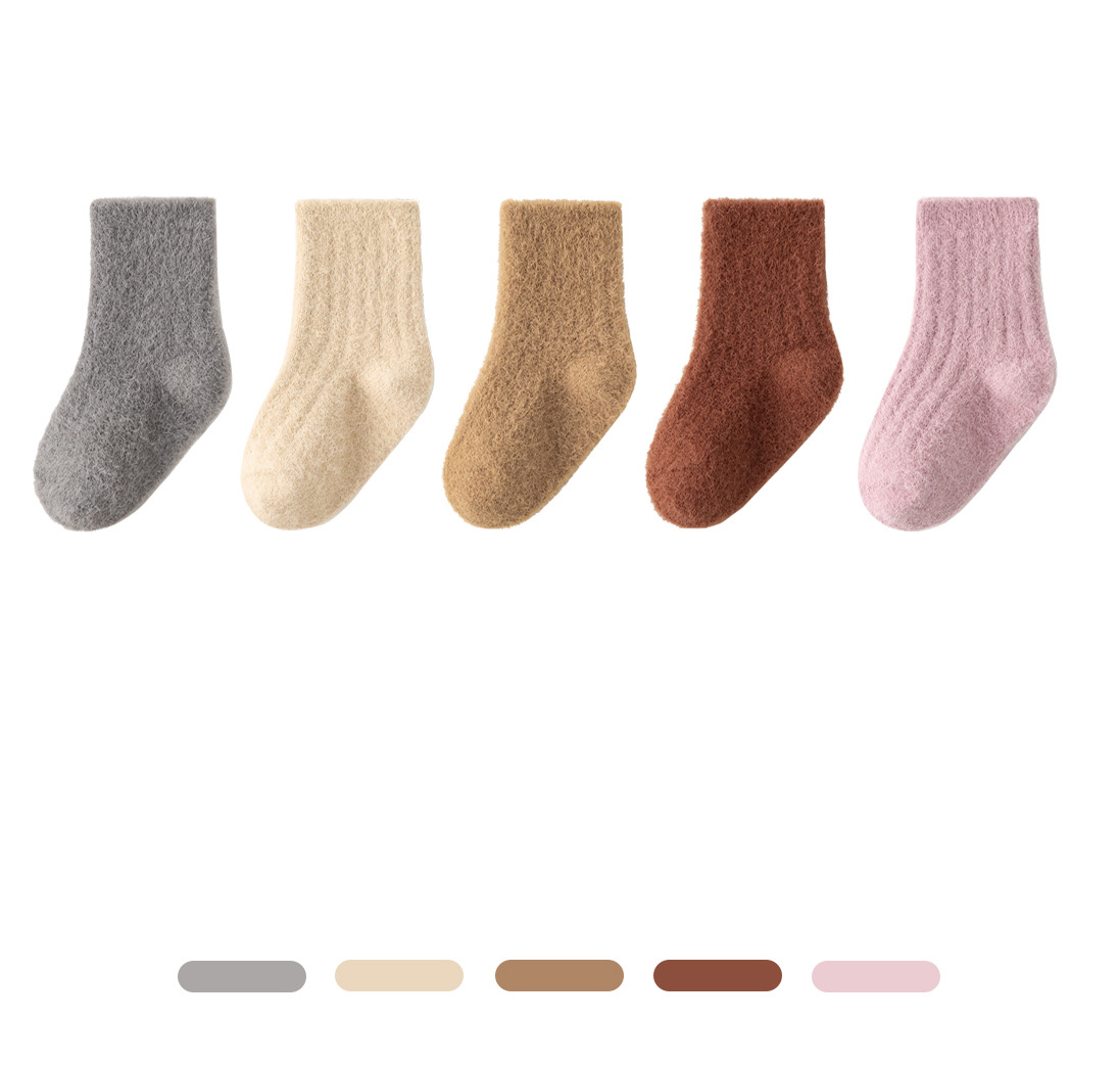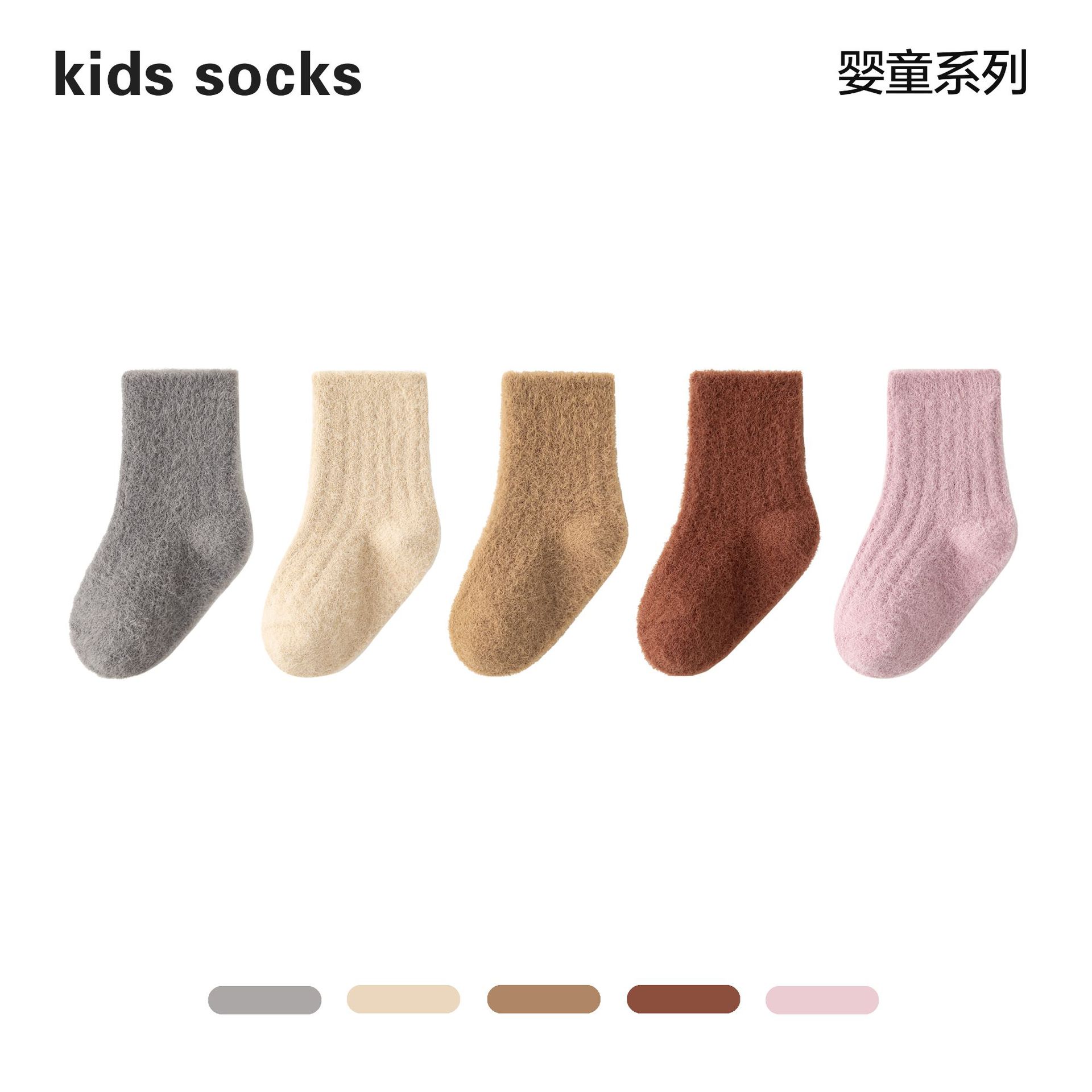 2024貂绒中筒袜冬季新品婴儿袜子加绒加厚保暖宝宝袜纯色男女儿童