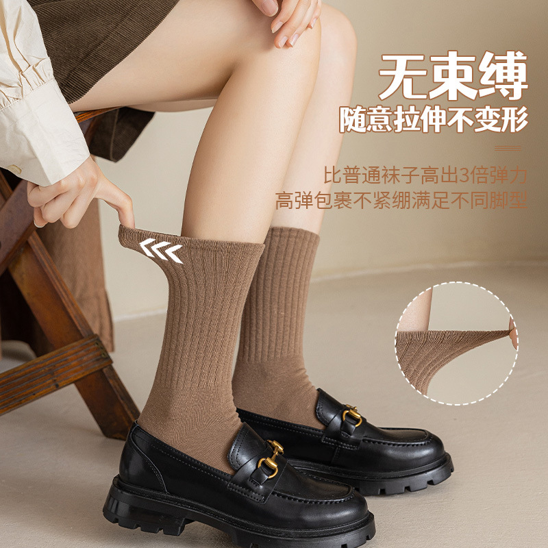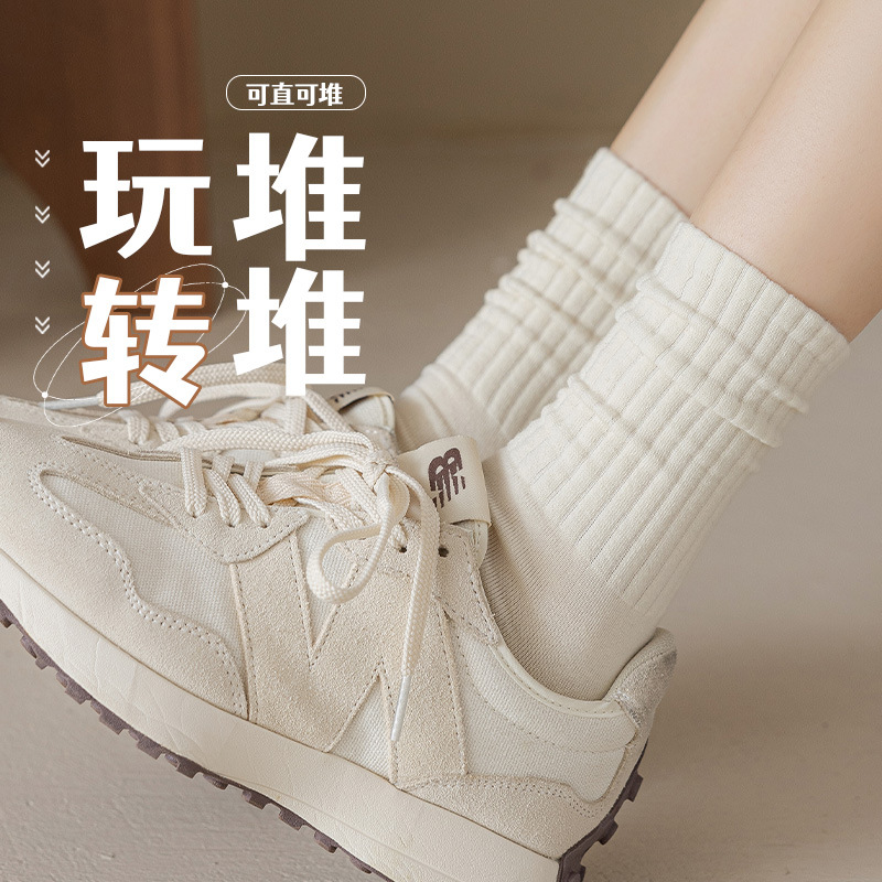 袜子女中筒袜2023新款秋冬棉袜日系学生ins潮长筒袜纯色堆堆袜