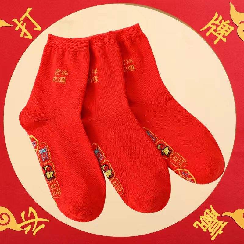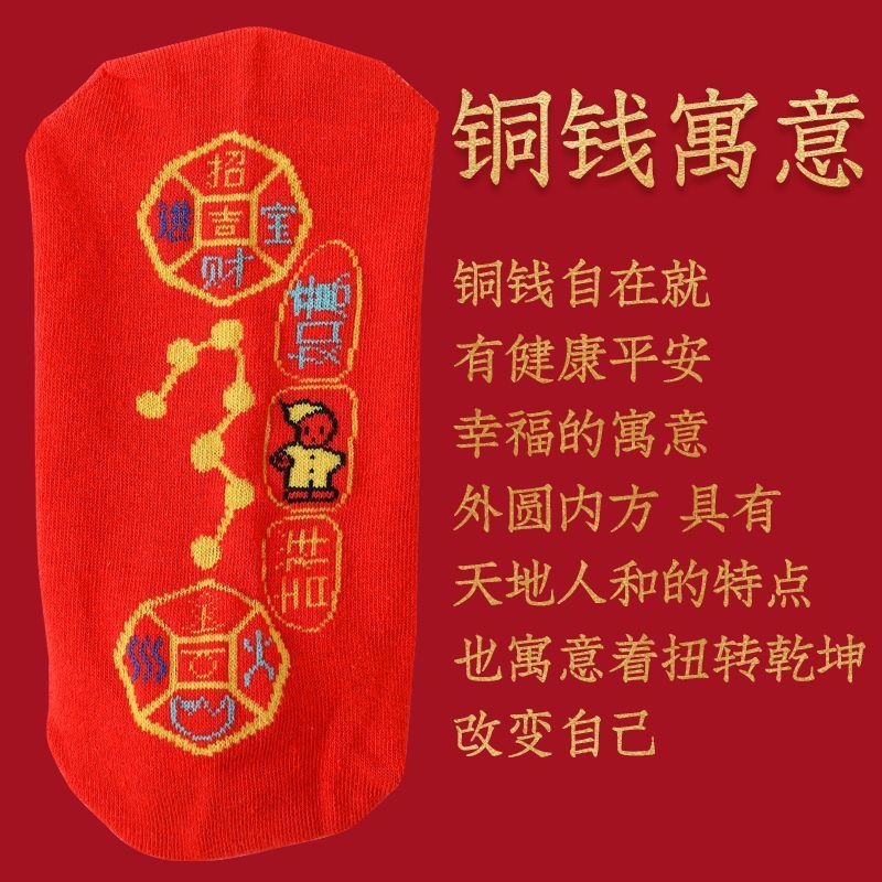七星连珠红袜子脚踏铜钱七星袜红色新年福旺运袜龙年本命年结婚袜