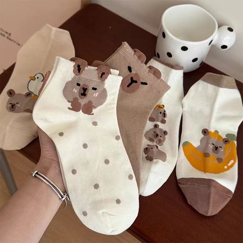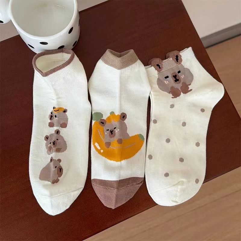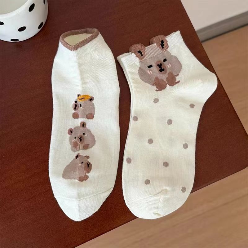 外贸跨境袜可爱卡皮巴拉袜子女短袜潮棉袜春夏薄款卡通低帮袜短筒