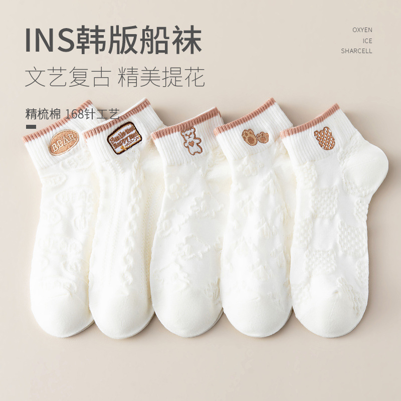 袜子女春秋款日系可爱卡通韩版短袜女春季薄款透气复古船袜ins潮