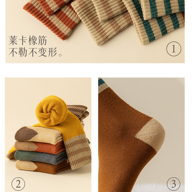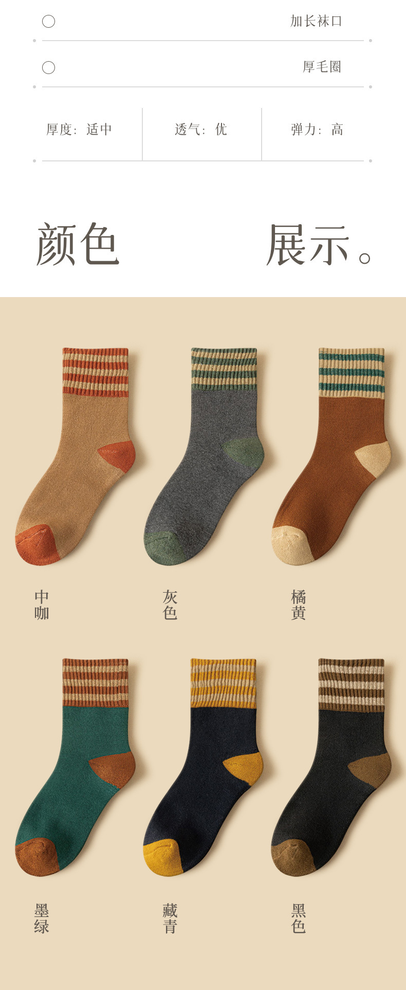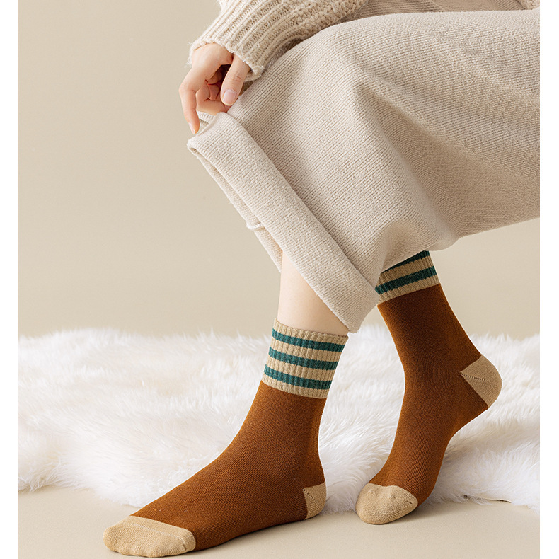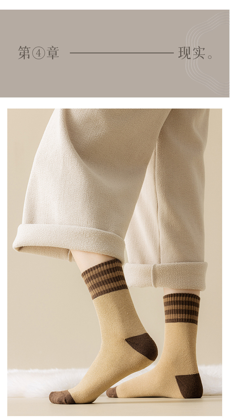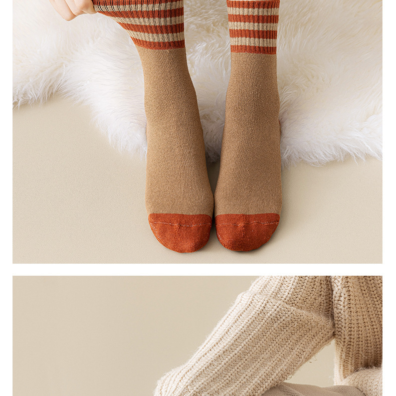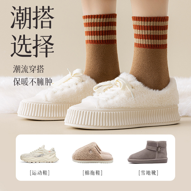 棉袜子女冬季加绒加厚毛巾袜条纹美拉德保暖冬天长袜秋冬款中筒袜