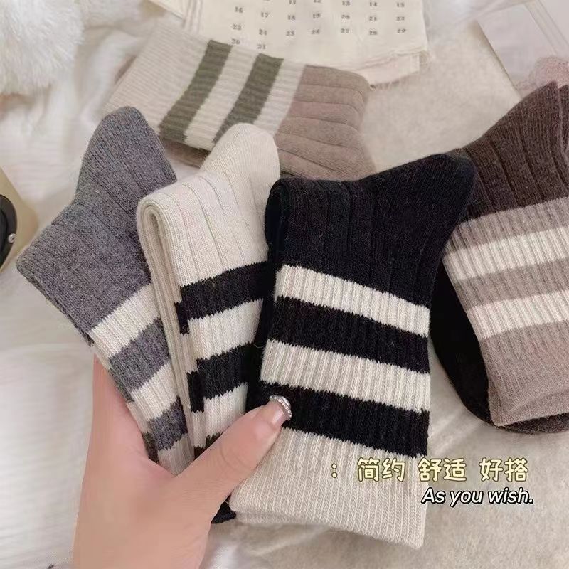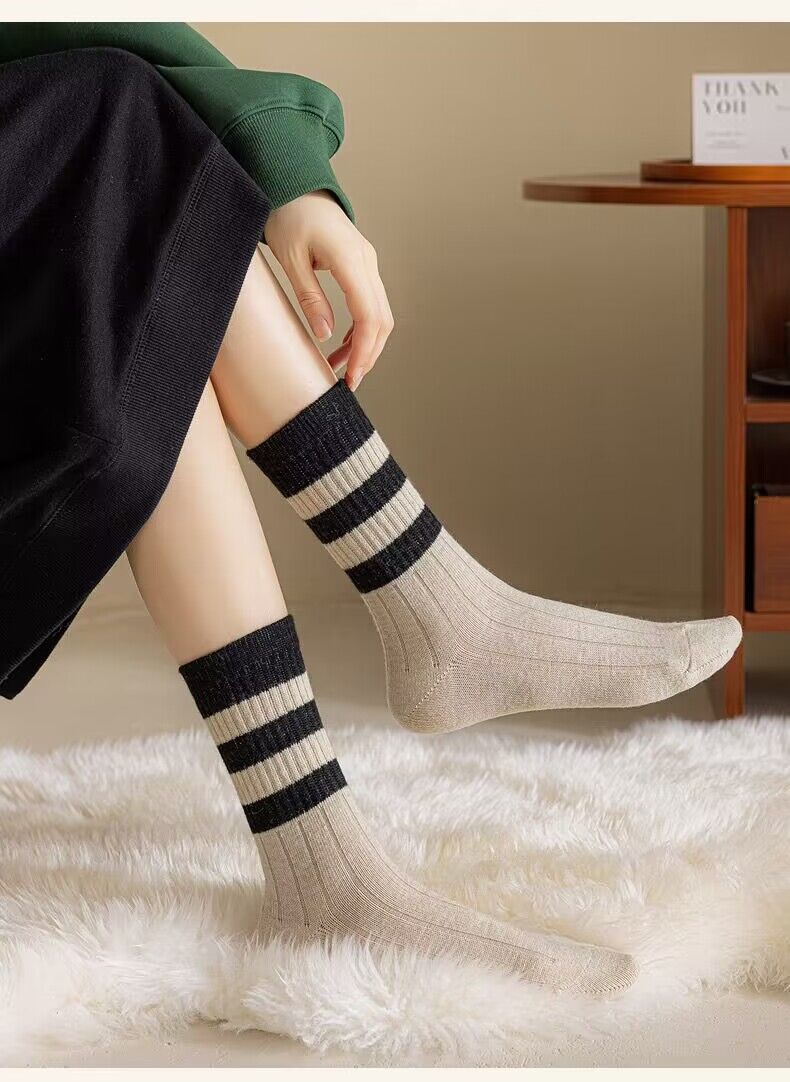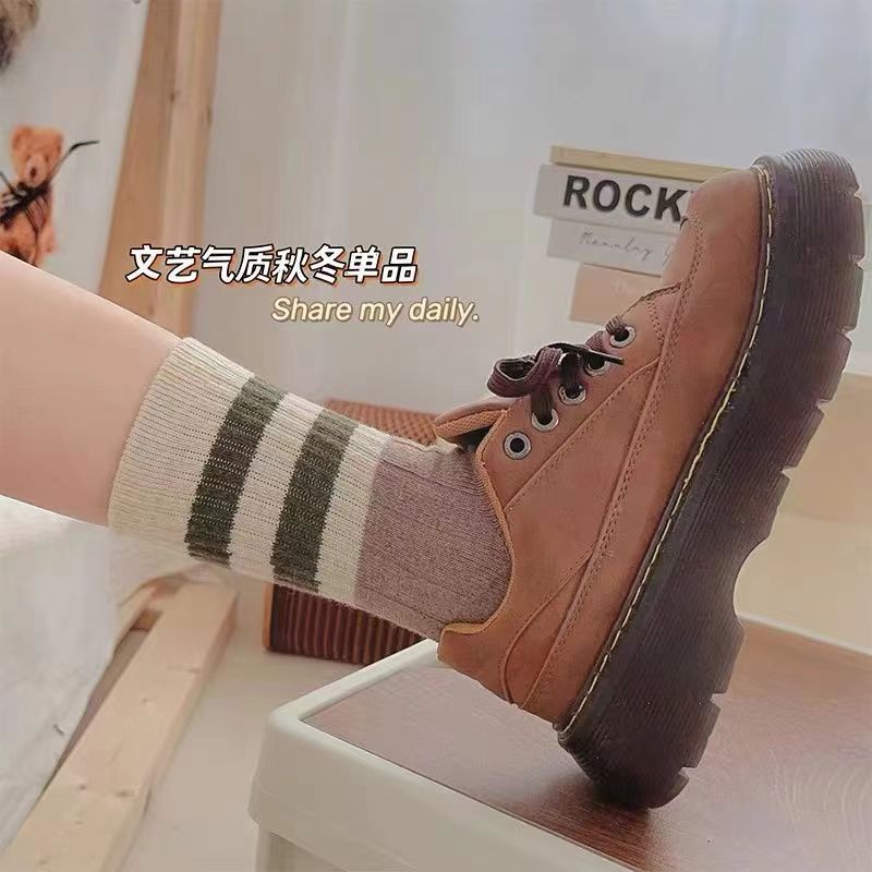 复古袜子女秋冬中筒袜春季长袜诸暨棉袜堆堆袜冬季森系复古运动袜