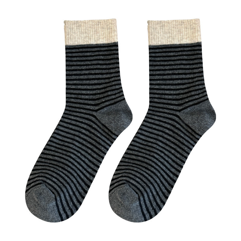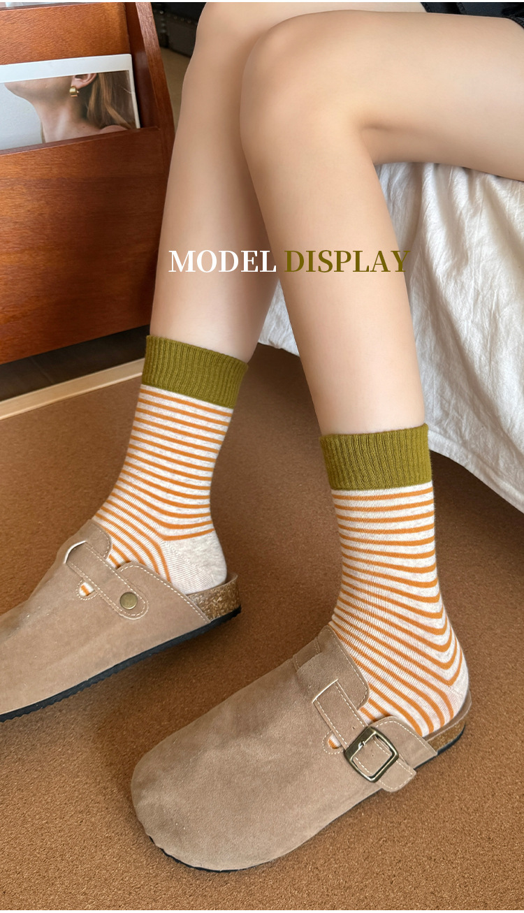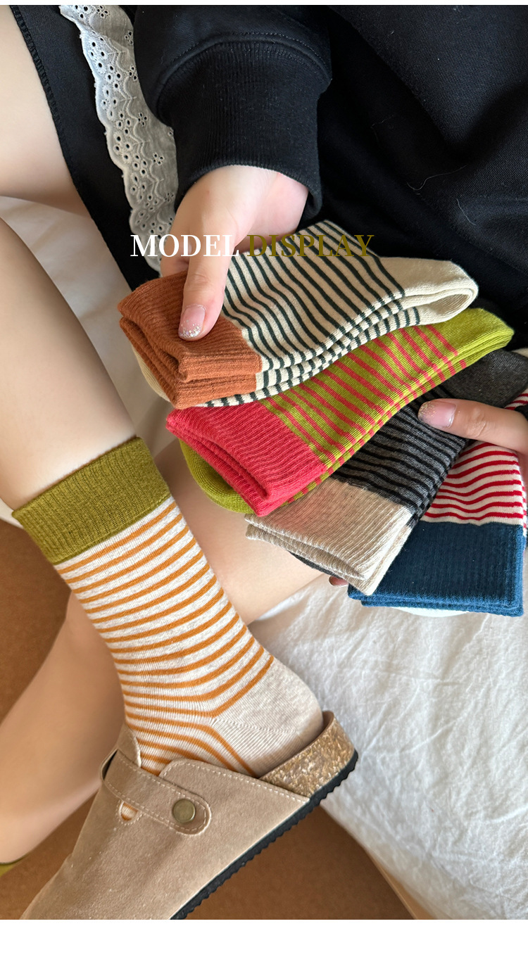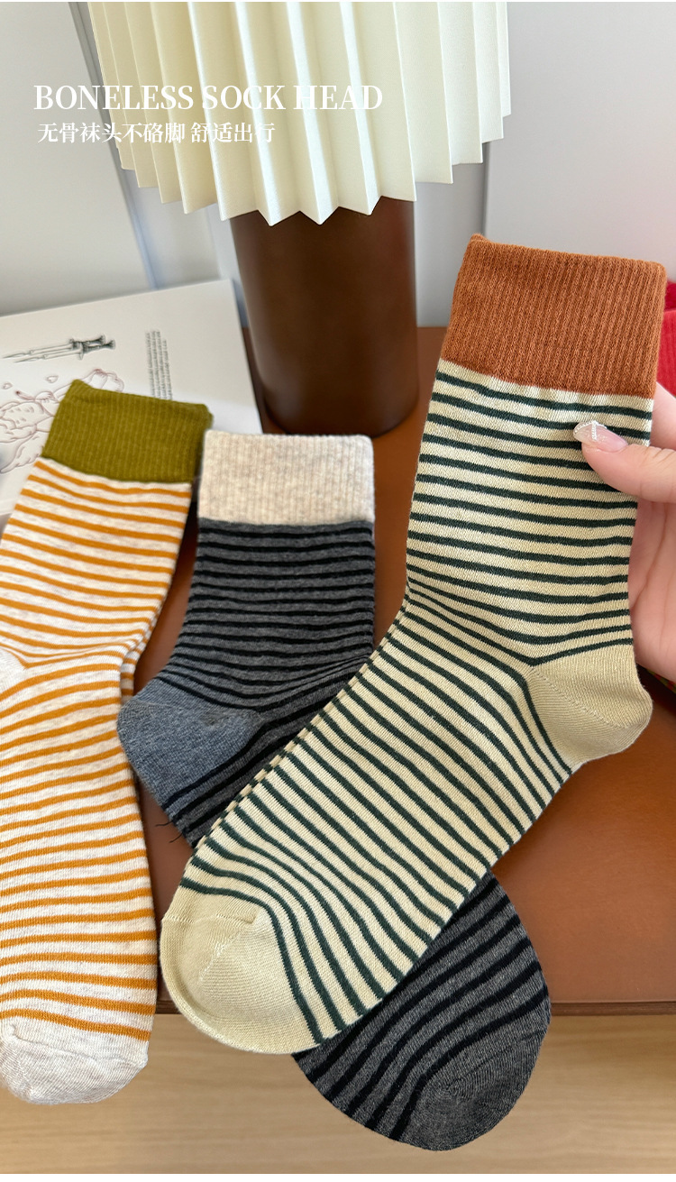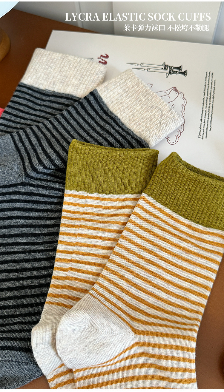 韩版撞色条纹袜子女秋款中筒袜ins潮网红港维斯长筒袜女冬季棉袜