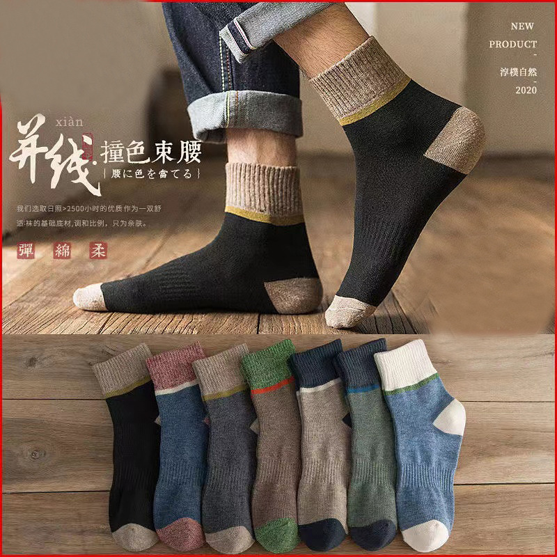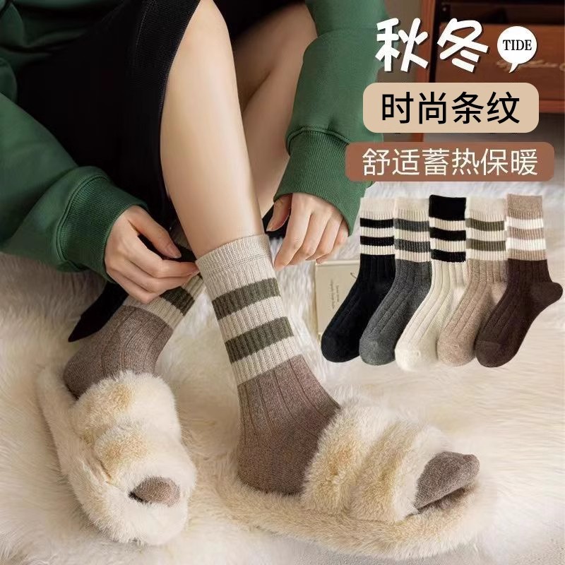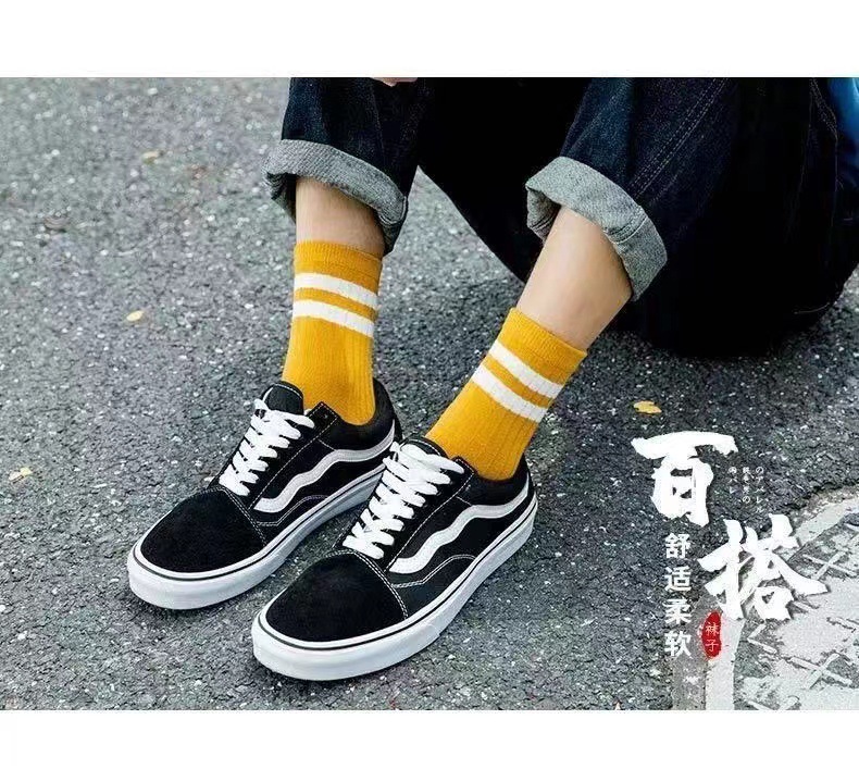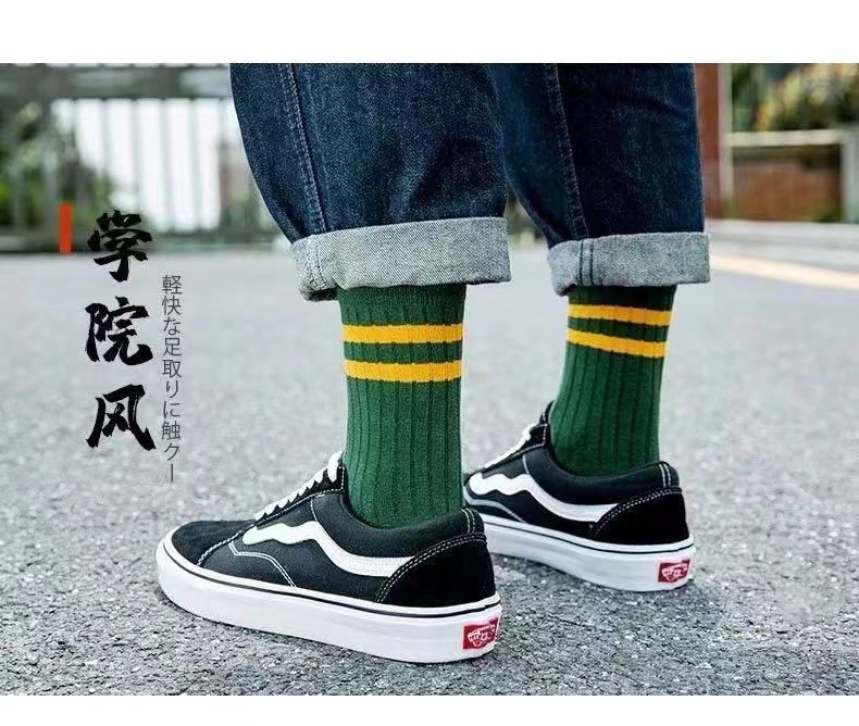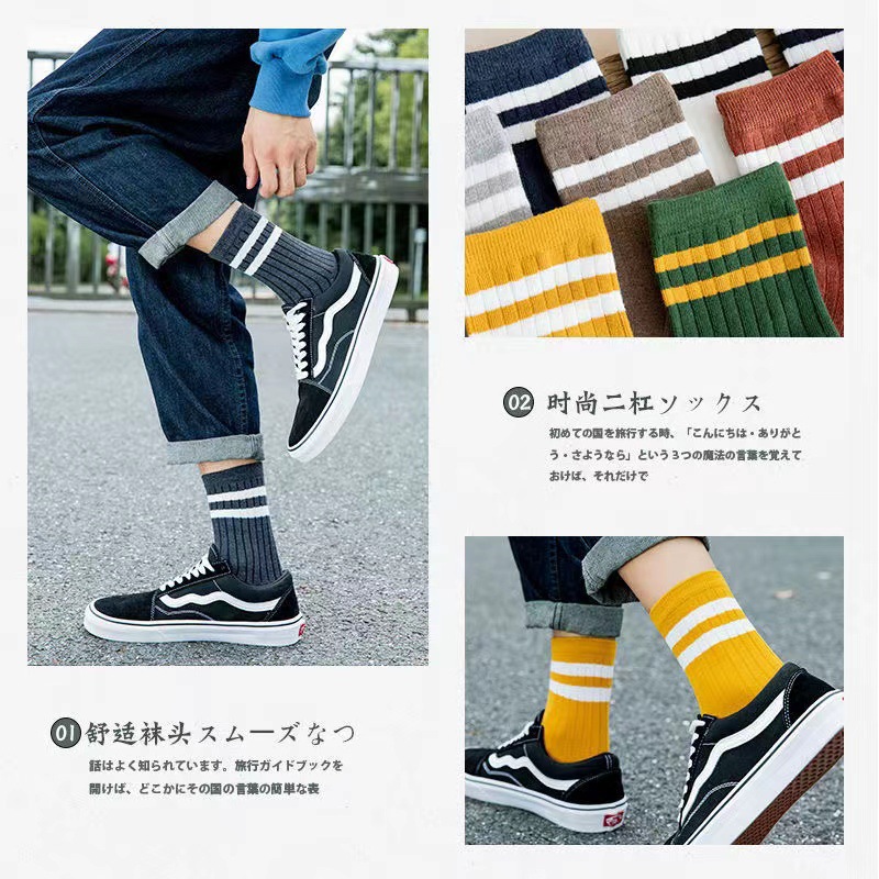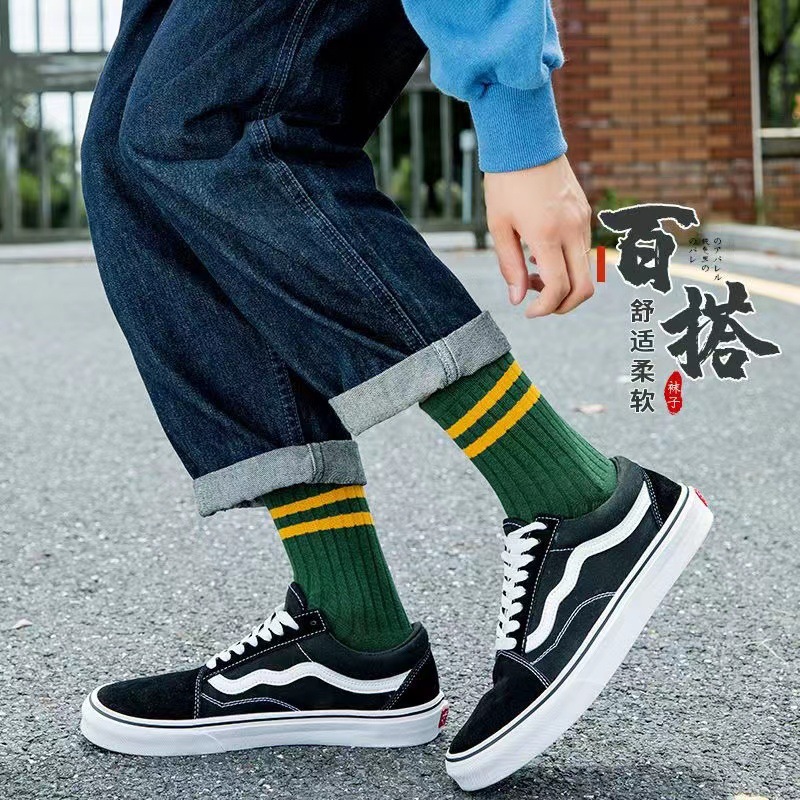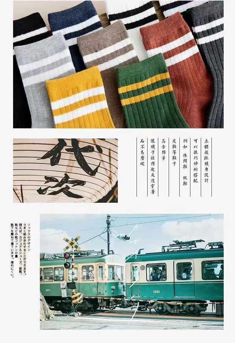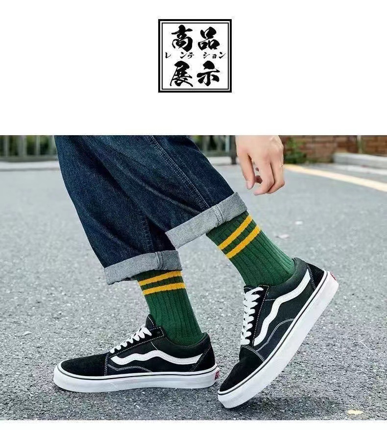 袜子男士中筒秋冬款长筒吸汗防臭日系运动条纹男袜韩版ins潮袜
