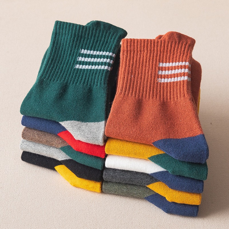 量大价优袜子男士中筒袜棉袜透气运动提耳十色长筒袜高帮秋冬厂家