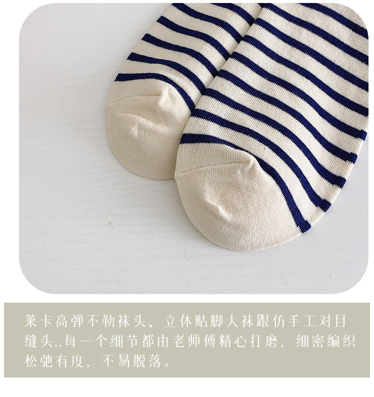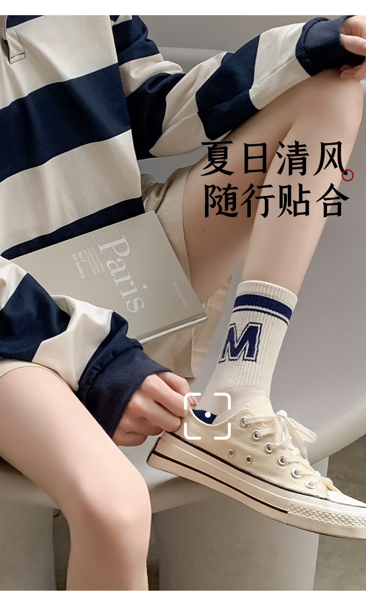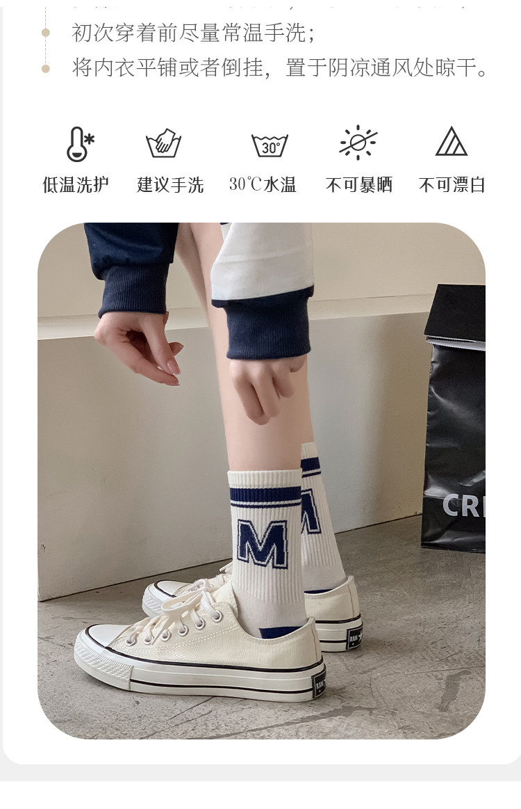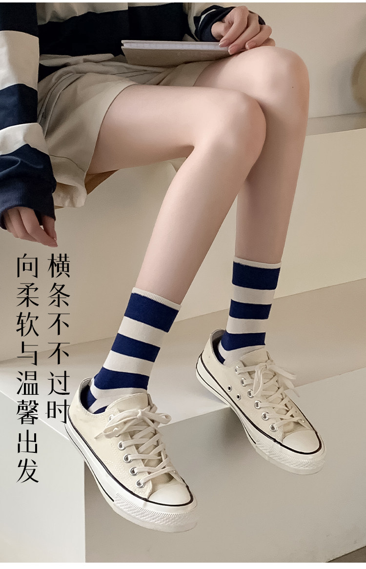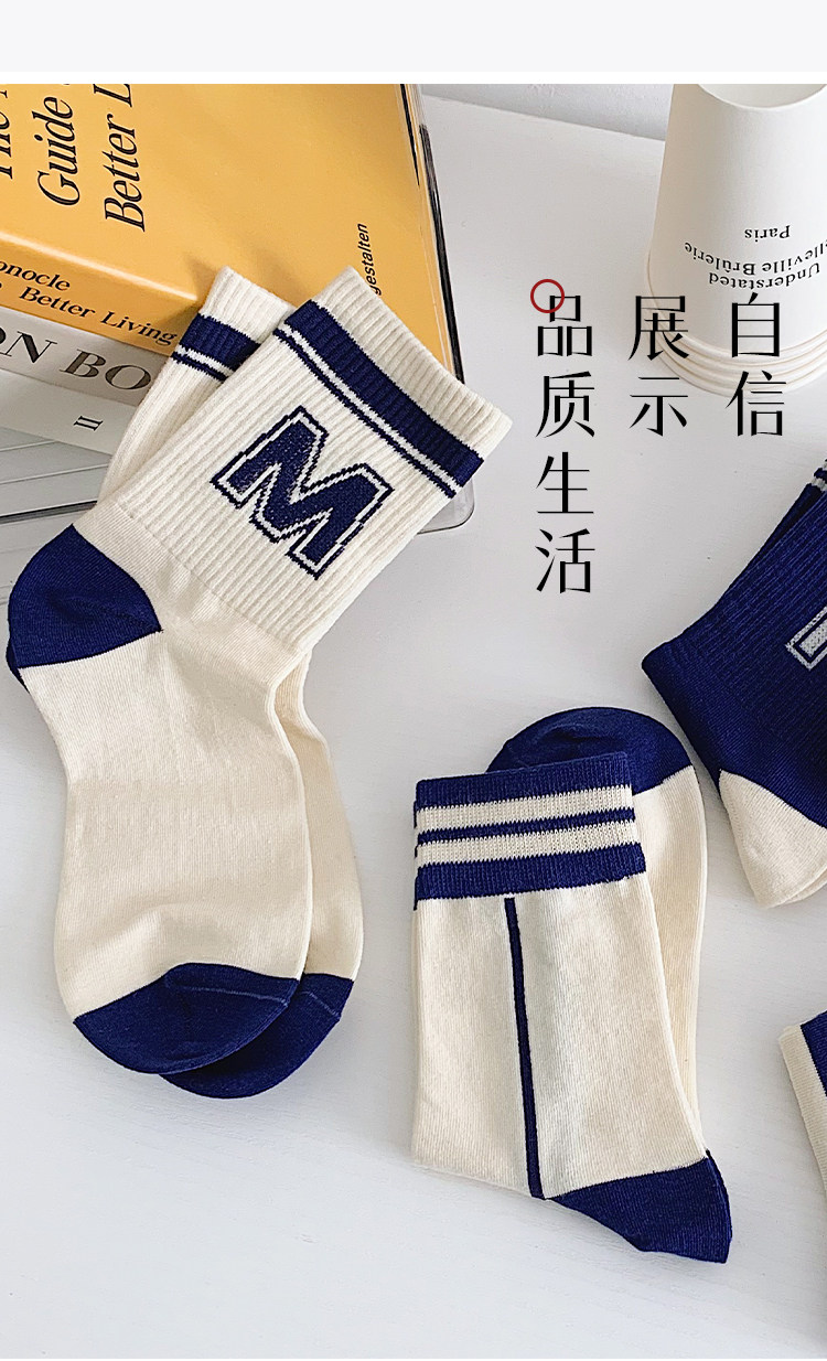 大P袜子女潮M字中筒袜百搭条纹P克莱茵蓝色运动春秋冬季棉袜