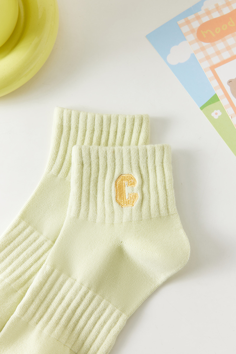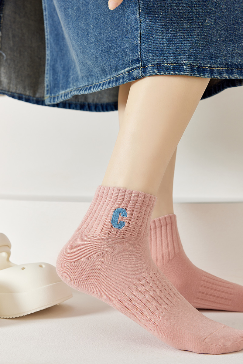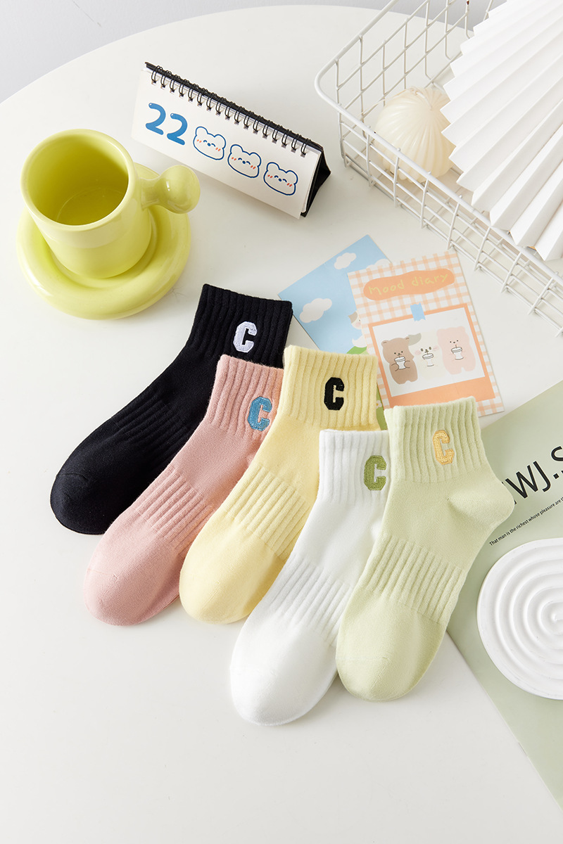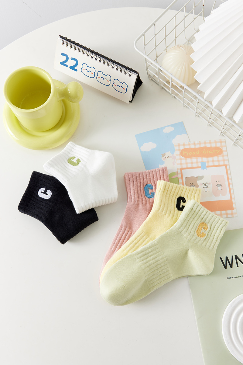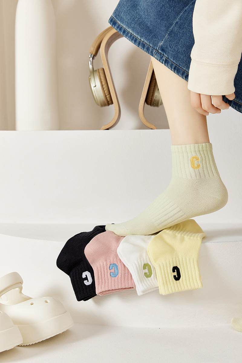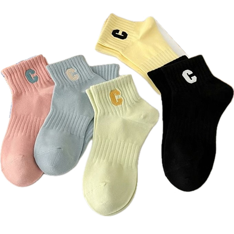 C字母袜子女短筒春夏季薄款短袜浅口简约字母纯色运动袜短款潮袜