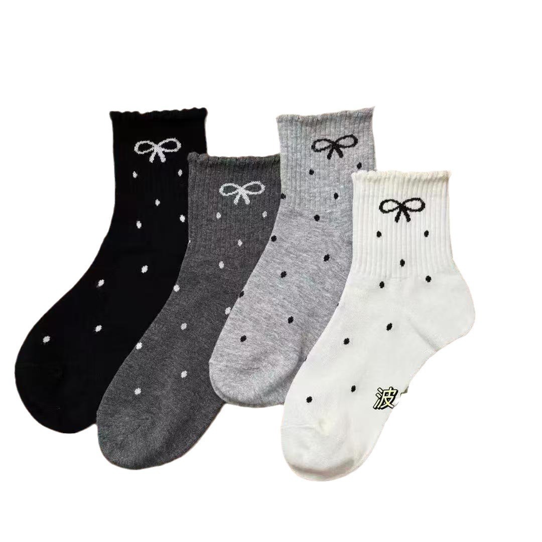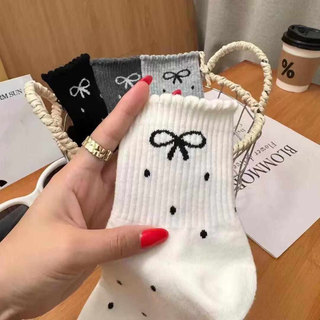 袜子女波点蝴蝶结韩国网红JK芭蕾风少女木耳边甜美中筒袜百搭新款
