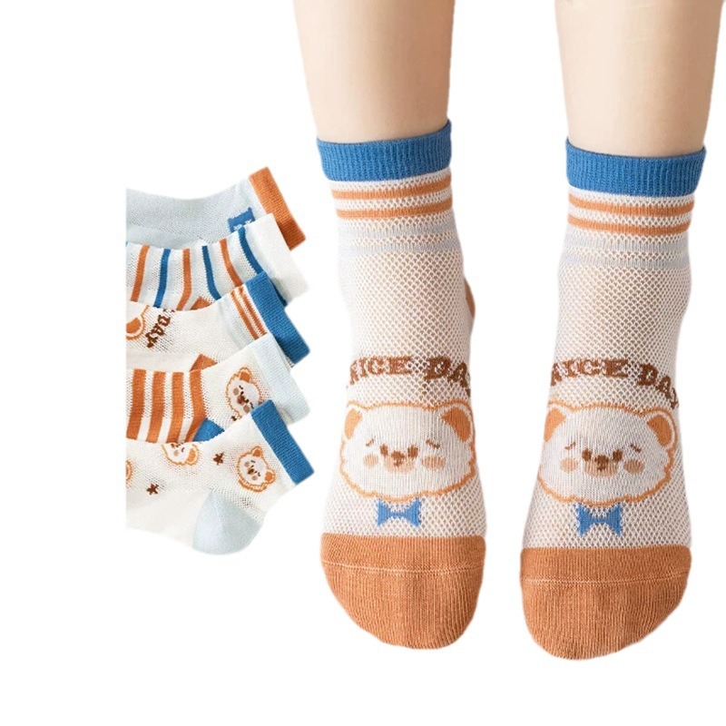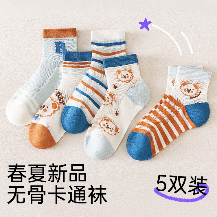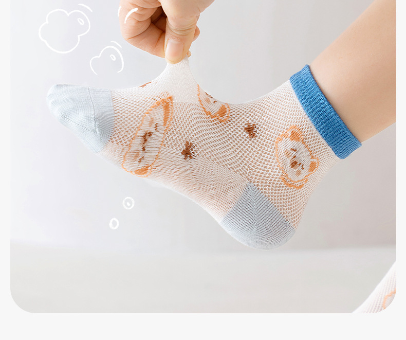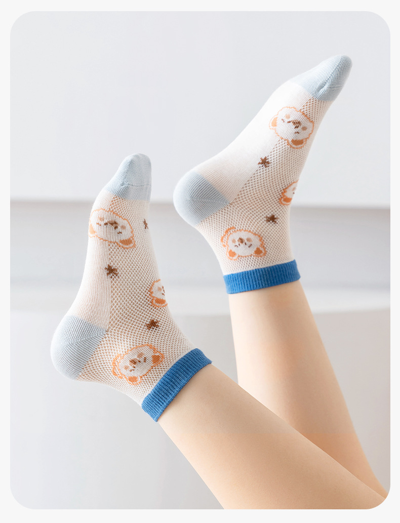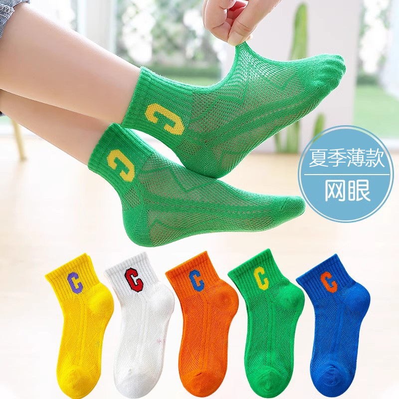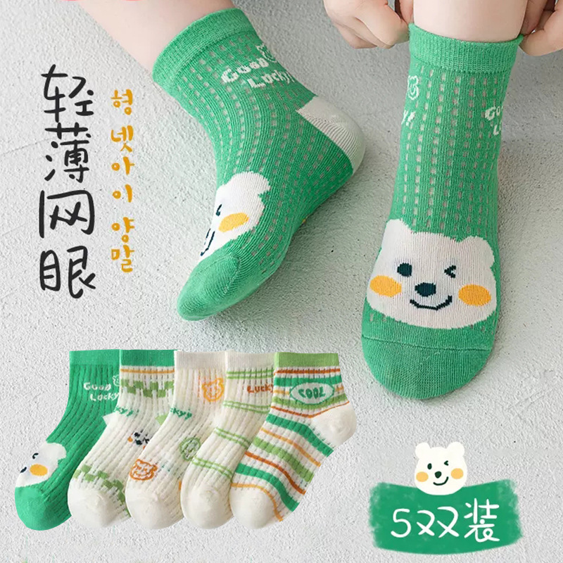 中大童夏季薄款中筒袜儿童卡通网眼袜夏款童袜透气短袜可爱袜子